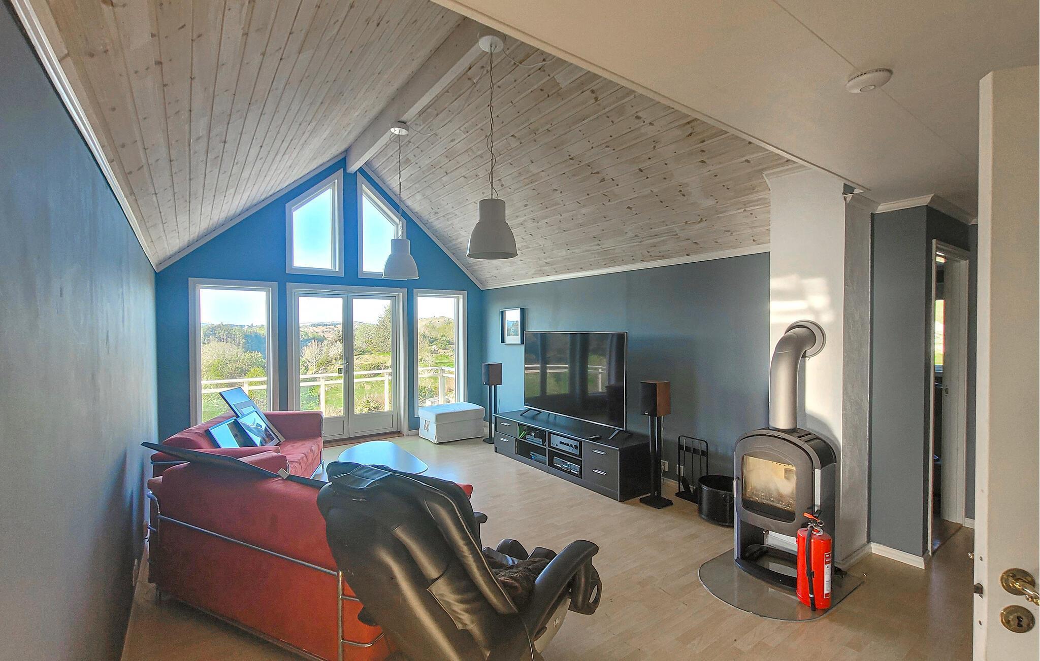 Nyd ferien i et rummeligt feriehus med udsigt over fjorden og det bølgende landskab.