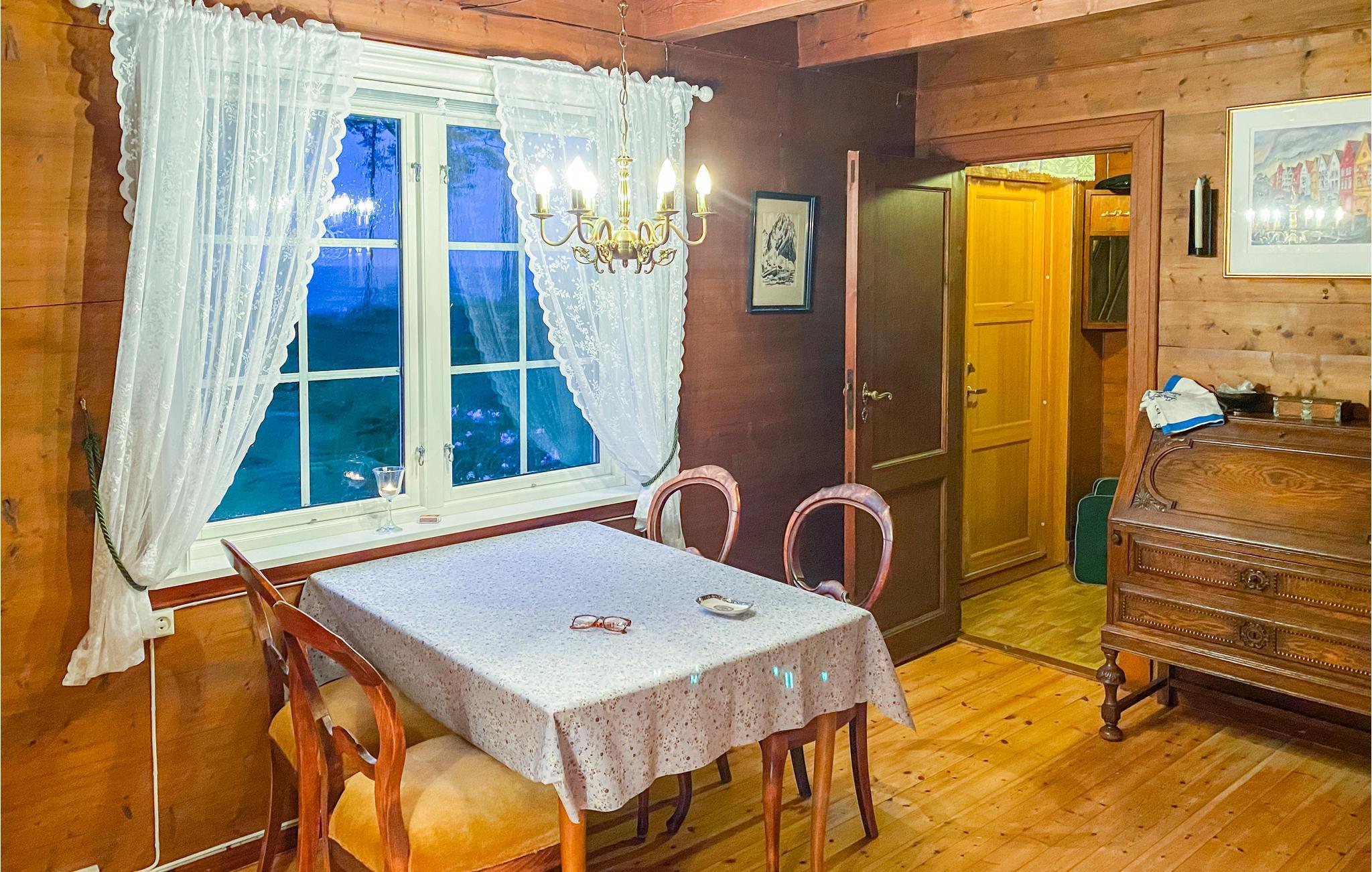 Dette dejlige hus ligger på halvøen Selsneset ved Bjørnafjorden. Indenfor kan I glæde jer til den hyggelige indretning og nogle flotte, veludstyrede lokaler. Huset har en autentisk atmosfære, der indbyder til mange hyggelige stunder med at læse en god bog eller til brætspil.