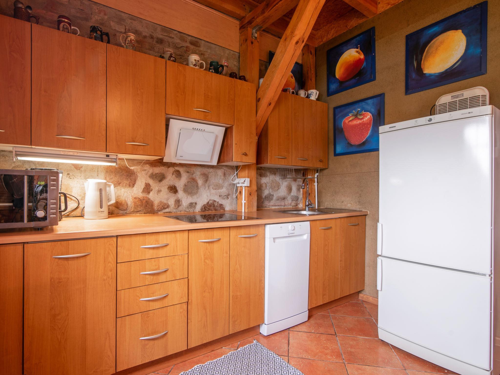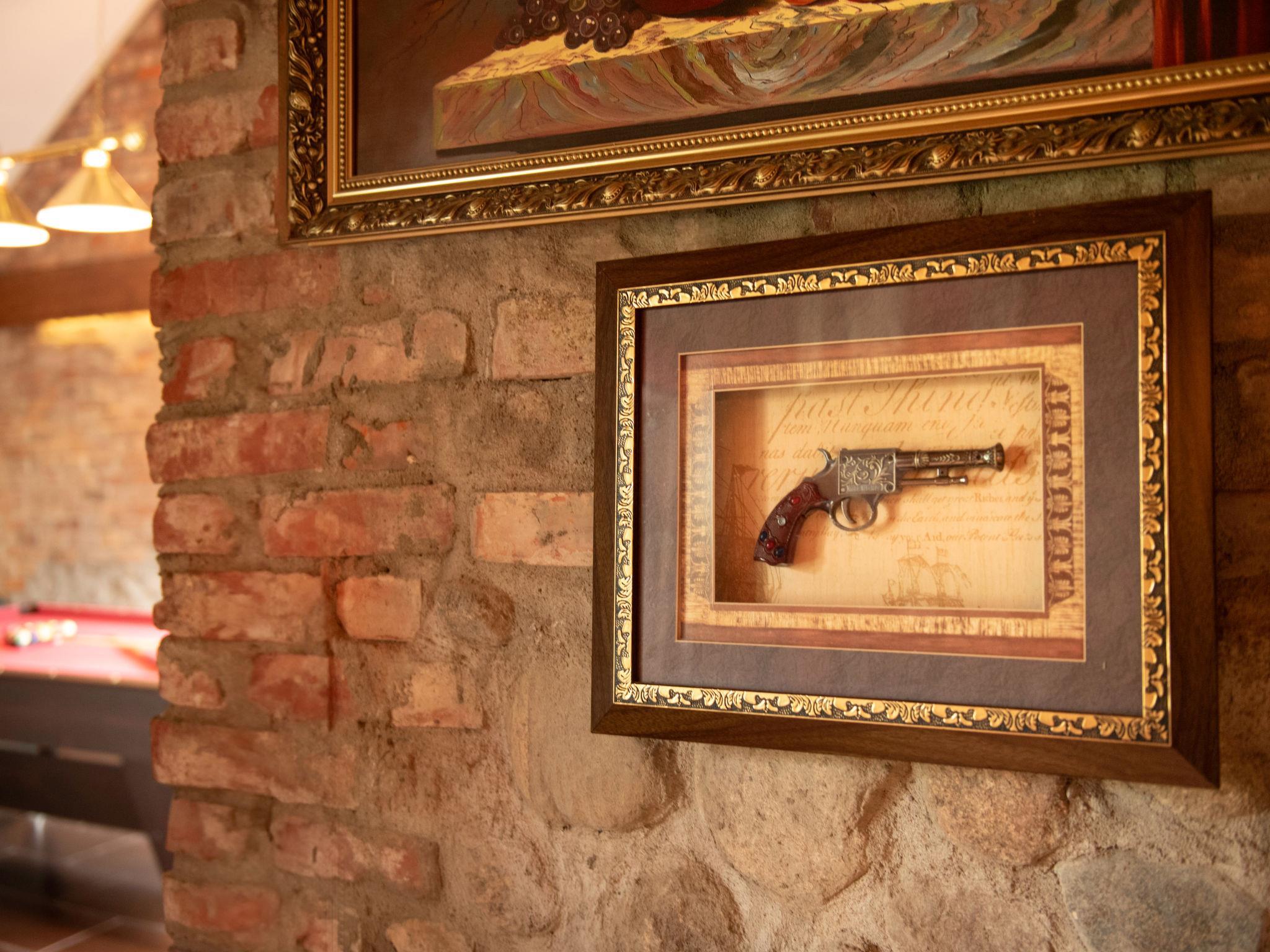 6-room house 250 m2 on 2 levels. Open large living room 80 m2 with Scandinavian wood stove, satellite TV, radio and hi-fi system. Exit to the garden, to the terrace. 1 room 10 m2 with 1 double bed (160 cm, length 200 cm) (1 pers.). Billiard room 25 m2. Open kitchen (oven, dishwasher, 4 ceramic glass hob hotplates, microwave, freezer). Shower/WC. Upper floor: 1 room 20 m2, with sloping ceilings with 1 double bed (160 cm, length 200 cm). 1 room 20 m2, with sloping ceilings with 2 beds (90 cm, length 200 cm). 1 room 16 m2, with sloping ceilings with 2 beds (90 cm, length 200 cm). Bath/WC. Electric heating, wood heating (extra). Terrace 10 m2. Terrace furniture, barbecue, deck chairs (2), box-room. Facilities: logs (free). Internet (WiFi, free). Parking. Please note: maximum 2 pets/ dogs allowed. Smoke alarm. On request: car for 5 pax (50euro/day + fuel). Motorboat (extra paid 200 EUR/day). Smart tennis court. At disposal room with specialized equipment FITNESS supporting weight loss and body sculpting and a room with an automatic washing machine and dryer.