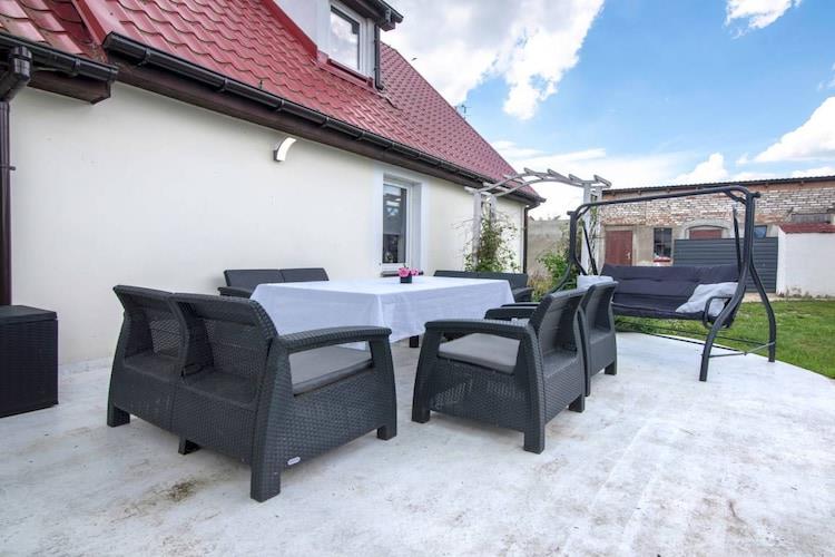 Et stort, komfortabelt feriehus. Huset har to etager, en elegant stue med pejs, satellit-tv og stereoanlæg samt adgang til haven og terrassen med havemøbler og grill. Interiøret omfatter et åbent køkken med moderne apparater: ovn, opvaskemaskine, mikrobølgeovn og fryser. Gæsterne har adgang til fire komfortable soveværelser og et legerum med billard og karaoke. Hele huset er gasopvarmet, og yderligere faciliteter inkluderer infrarød sauna, vaskemaskine, tørretumbler og cykler. Til afslapning er der en sæsonåben, udvidelig swimmingpool og en 3.000 m² stor have. Der er parkering på stedet, og der er et købmandsforretning, restaurant og busstoppested i nærheden. For eventyrlystne er der billard, bordfodbold, karaoke og fiskeri (med tilladelse). Gratis Wi-Fi er også inkluderet i prisen, og huset er kæledyrsvenligt (op til tre hunde). Dette er et ideelt sted for familier og grupper, der søger en afslappende ferie i grønne omgivelser med nem adgang til attraktionerne i Miedzyzdroje og de omkringliggende søer.