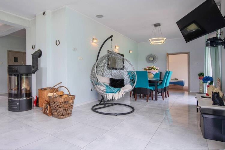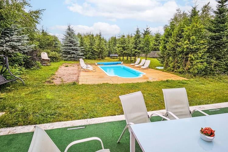 Vi tilbyder et moderne og komfortabelt enfamiliehus beliggende på en rummelig, indhegnet grund på 6.000 m². Det er det perfekte sted for dem, der værdsætter privatliv, afslapning og aktiv fritid. Ejendommen har en 25 m² swimmingpool med en dybde på 160 til 160 cm, der er sæsonbestemt tilgængelig fra 1. maj til 30. september. For sportsentusiaster er der en volleyballbane, bordtennisbord og en volleyballbane til rådighed. Der er også en trampolin, grill og parkeringsplads. Der er en ladestation til elbiler på stedet. For fiskeentusiaster er der mulighed for fiskeri (tilladelse kræves). Landbrugsprodukter kan også købes på gården, så I kan nyde friske, lokale specialiteter. For vores yngste gæster er der et legehus i haven, der tilbyder sikker og engagerende leg. Underholdningsentusiaster vil finde et 25 m² stort elektronisk spille- og arkadespilrum udstyret med dart, en spillehal og bordfodbold.