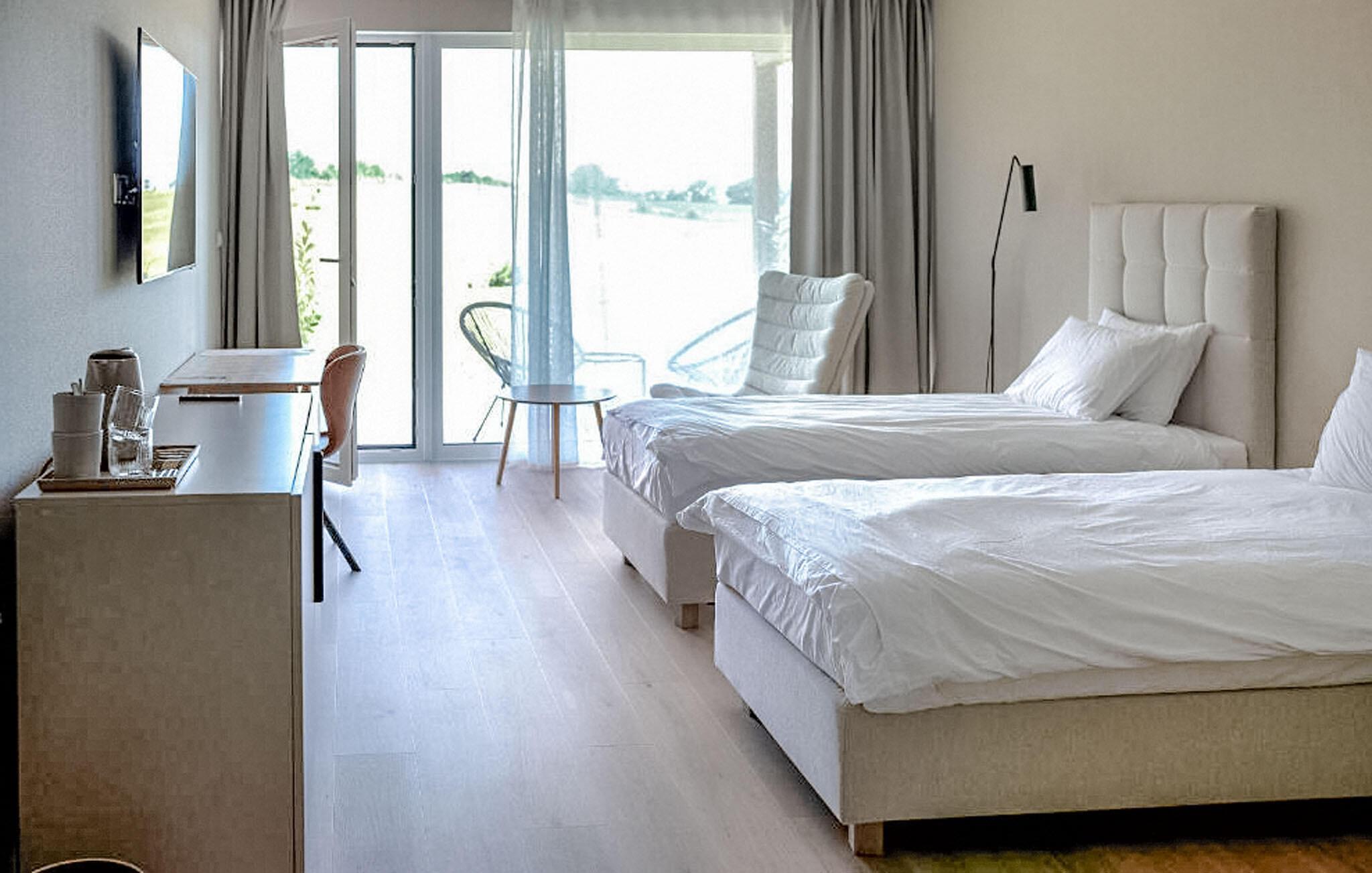 Nyd kaffen på terrassen, mens I lader blikket vandre over det grønne landskab. Beliggende i de fredelige omgivelser ved en golfbane og omgivet af maleriske søer, er dette det ideelle tilflugtssted for en afslappende pause fra hverdagen.