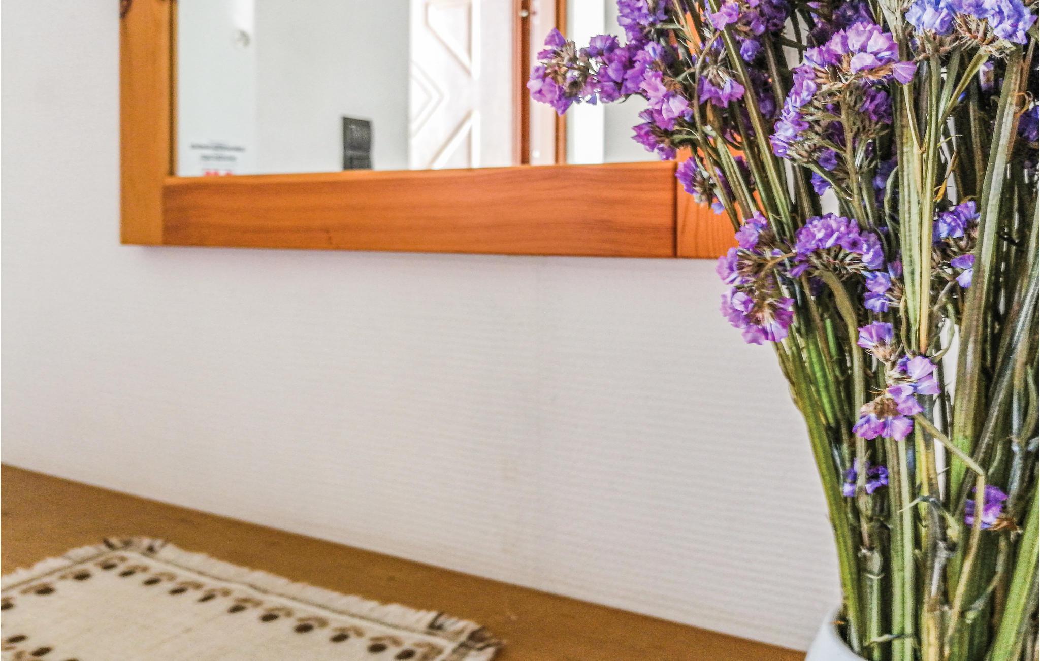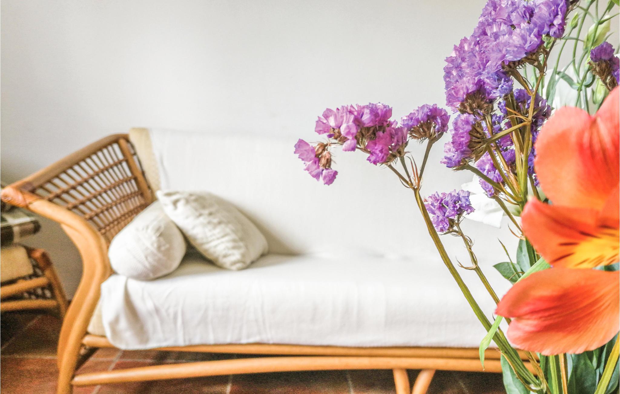 Huset er komfortabelt indrettet med pæne møbler. I stuen er der også en kamin, hvor I kan tænde op og nyde varmen der hurtigt breder sig.
