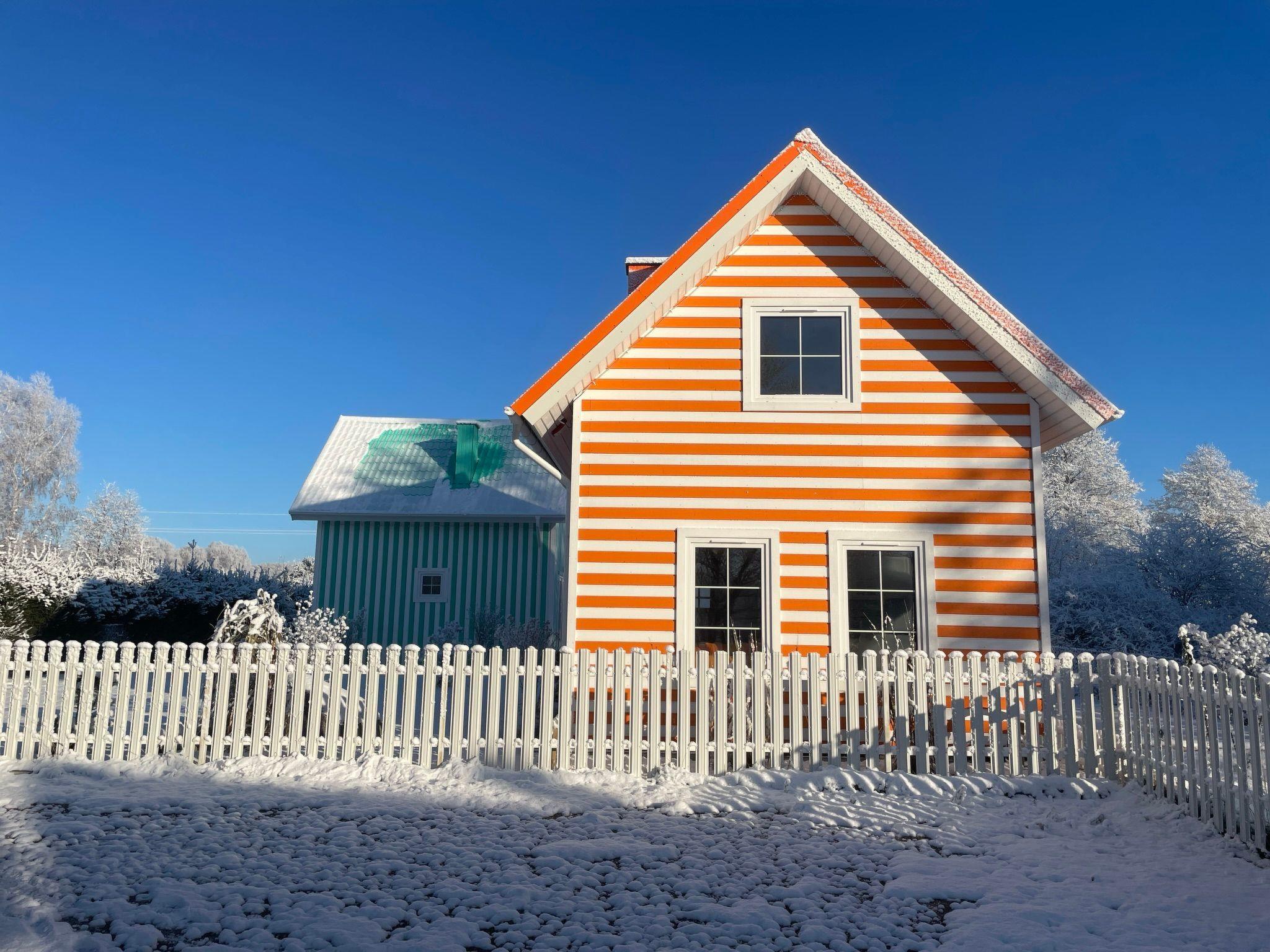 The cottages are year-round. They were built in the style of dwelling houses, with beautiful Swedish wood, well insulated and