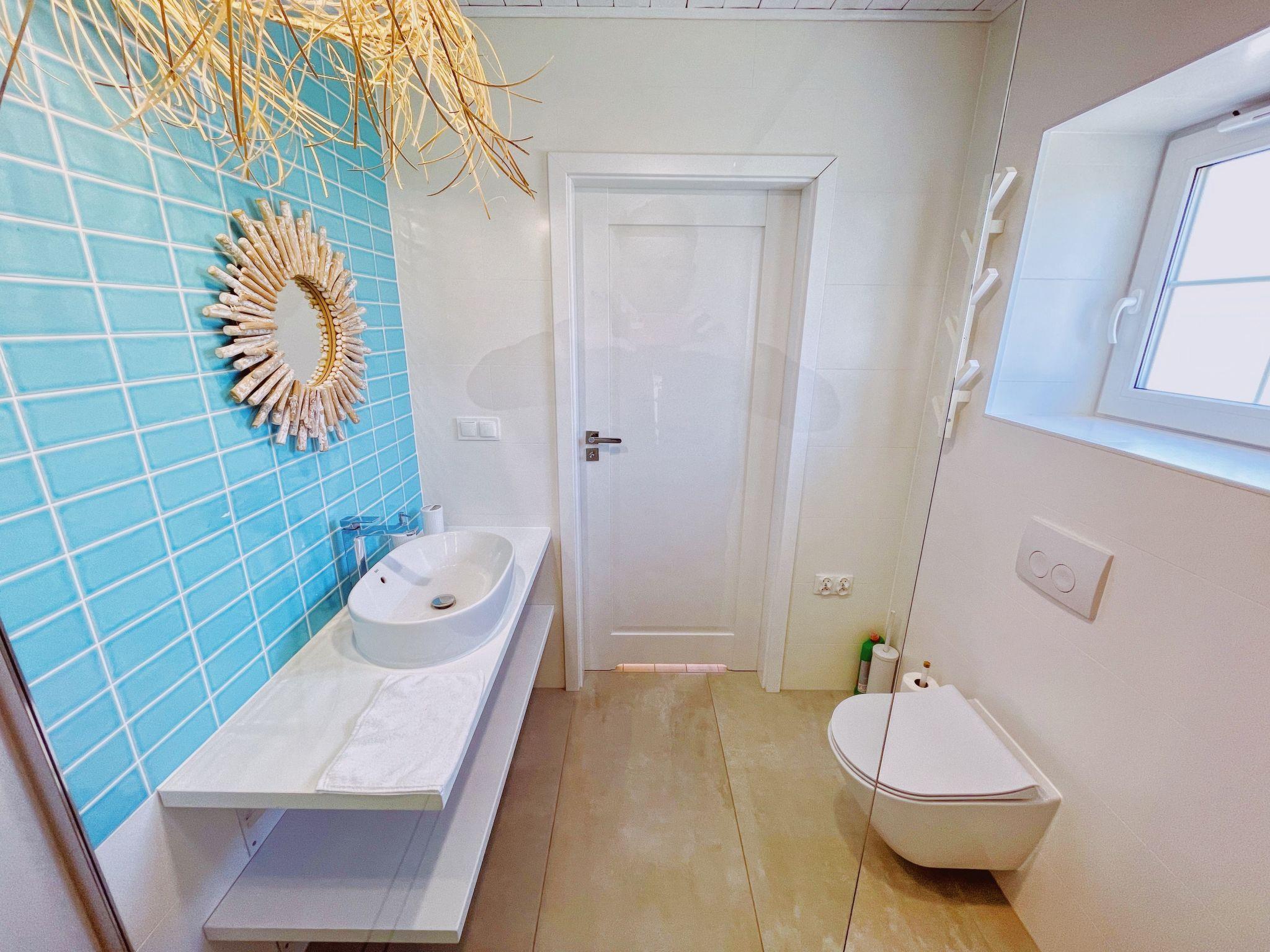 - There is also a bathroom with shower and sanitary facilities (sink, toilet). There is a hairdryer in the bathroom.