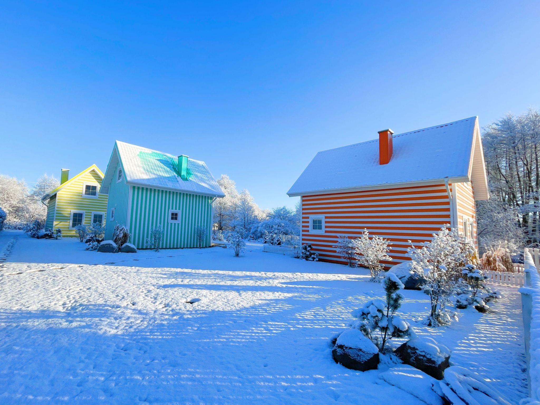 The cottages are year-round. They were built in the style of dwelling houses, with beautiful Swedish wood, well insulated and