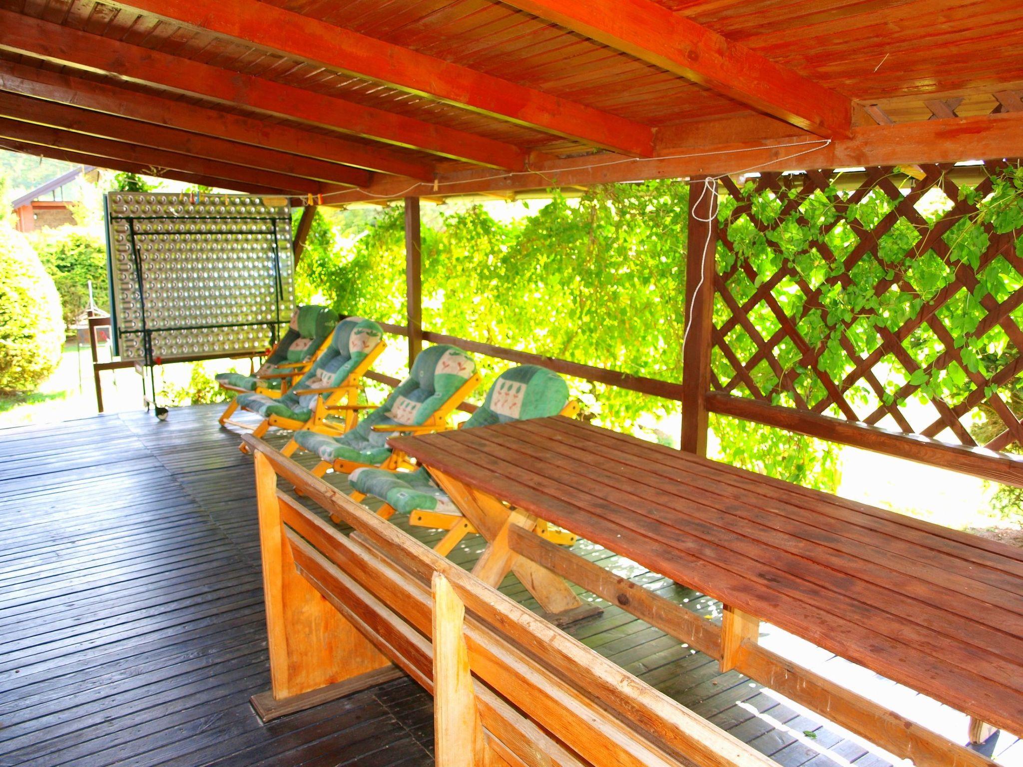 Outside, Cottage Grazyna invites you to spend time outdoors thanks to its covered terrace with two garden benches and a table. The fenced property also includes a large barbecue area, a playground with everything you need for children and the possibility to be active with a ping-pong table and basket. The safe and spacious grounds are ideal for families with children and pets.