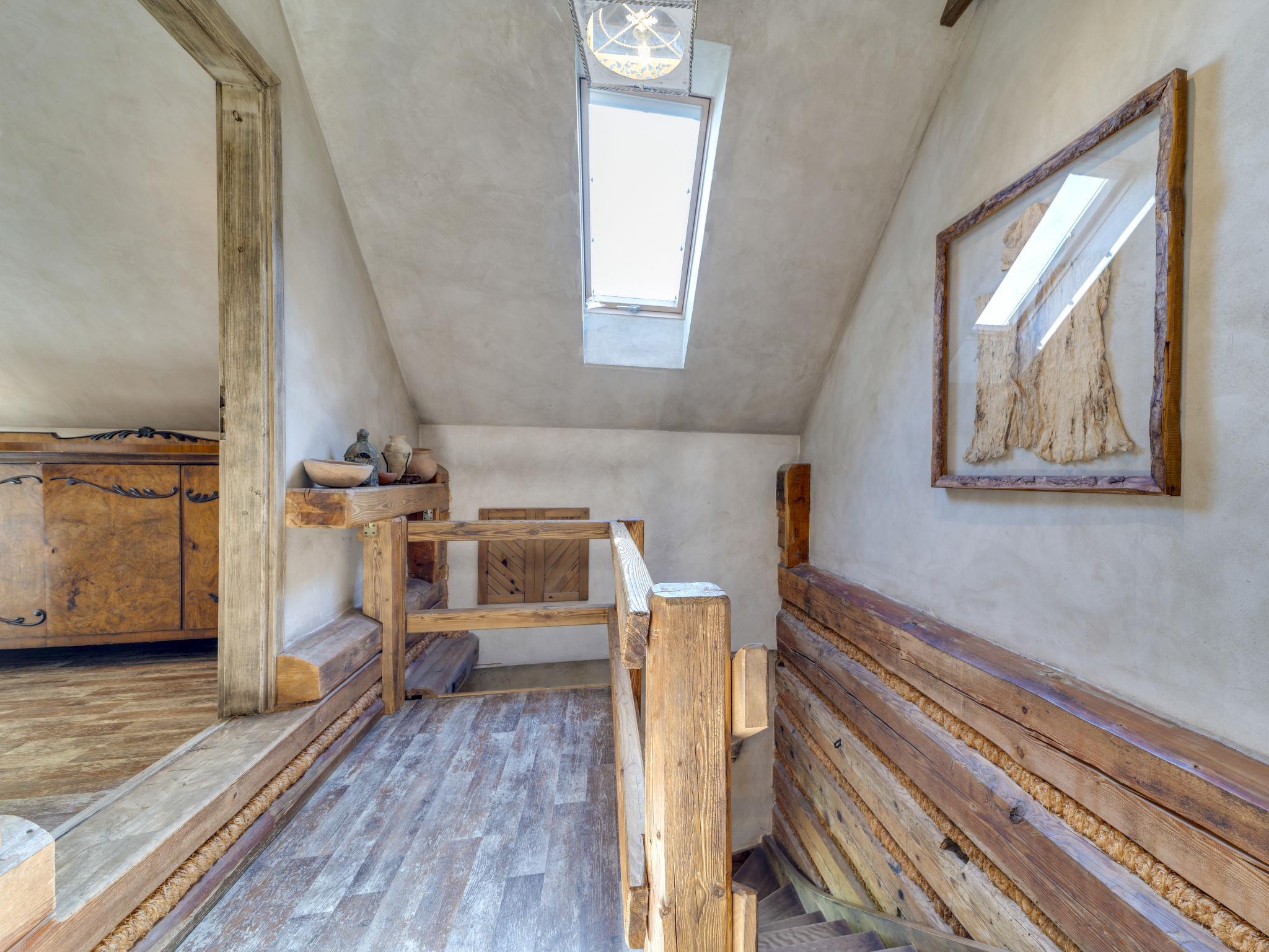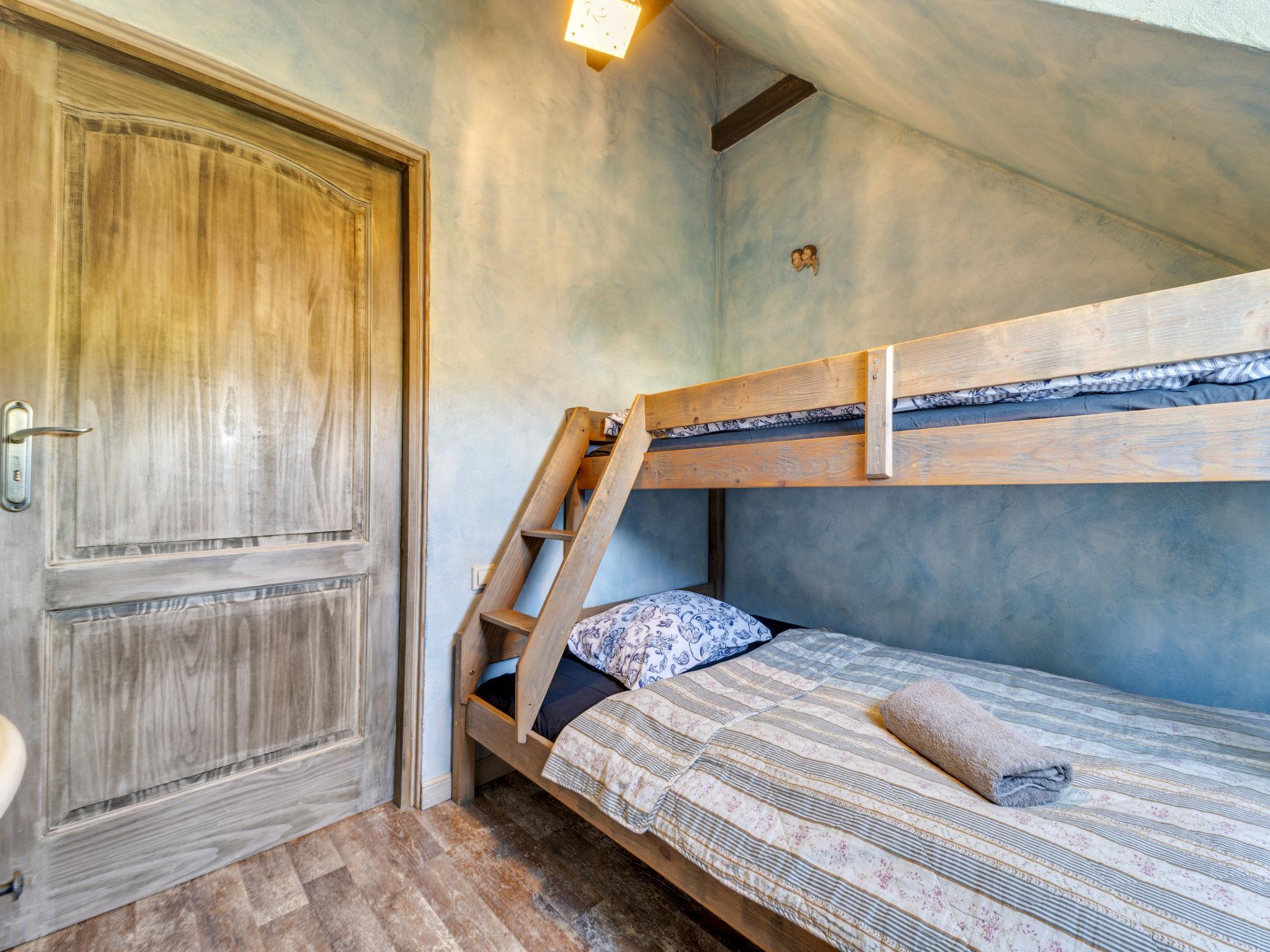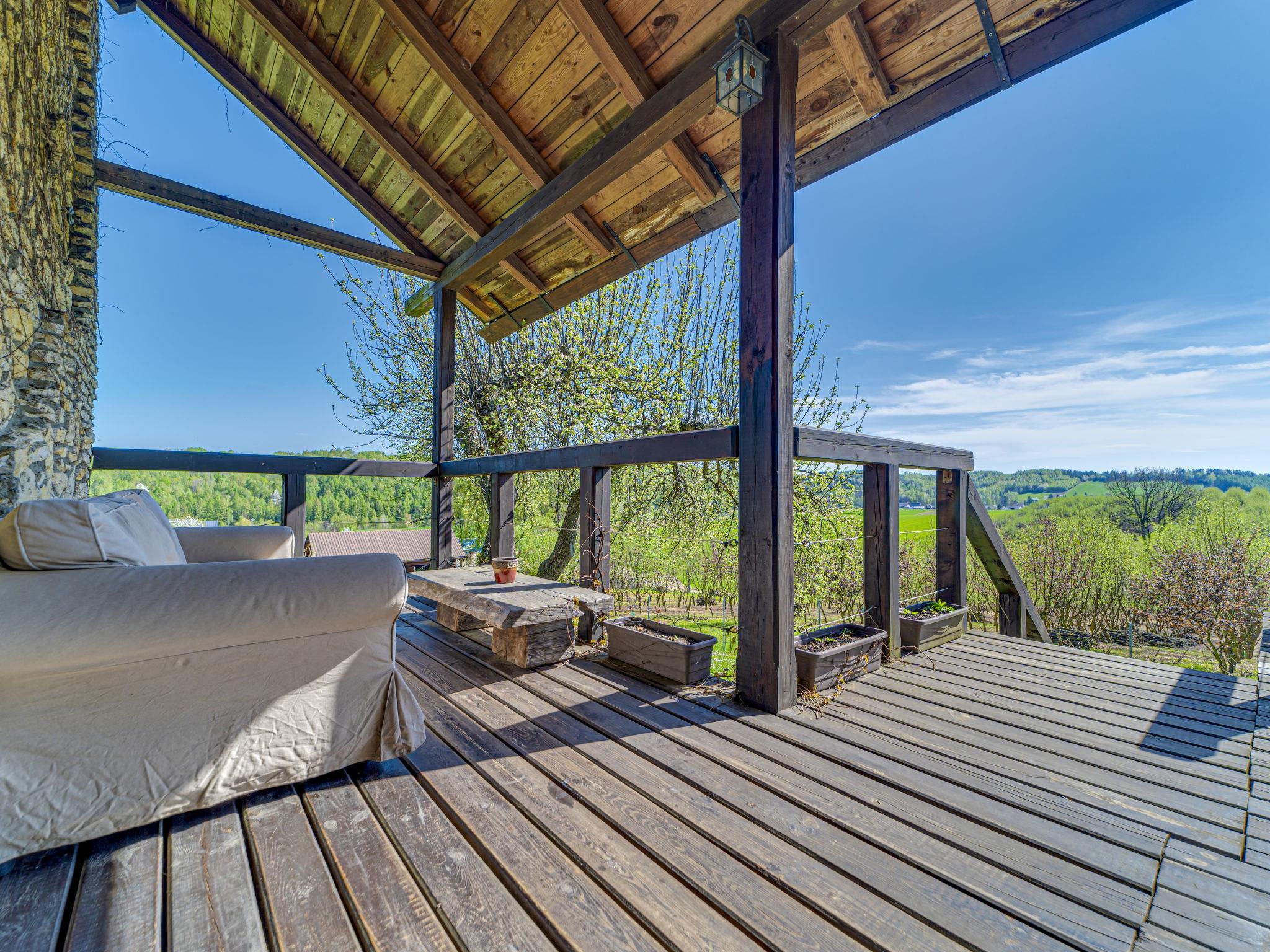 5-room house 154 m2 on 2 levels. Open large living/dining room 40 m2 with radio. Exit to the terrace. 1 room 20 m2 with 1 sofabed, 1 french bed and shower/WC. Open kitchen (oven, dishwasher, 4 ceramic glass hob hotplates, freezer, electric coffee machine). Sep. WC. Top floor: 1 room 20 m2, with sloping ceilings with 1 sofabed, 1 french bed and shower/WC. Interconnecting room 26 m2, with sloping ceilings with 1 sofabed, 1 french bed and shower/WC. 1 room 6 m2, with sloping ceilings with 1 x 2 bunk beds. 1 room 8 m2, with sloping ceilings with 1 sofabed. Electric heating (extra), boiler (280 litres). Terrace 64 m2. Terrace furniture, deck chairs (6). Beautiful view of the valley and the countryside. Facilities: children's high chair, baby cot for up to 3 year olds, hair dryer. Internet (WiFi, free). Parking at the house. Please note: non-smoking house. Maximum 2 pets/ dogs allowed.