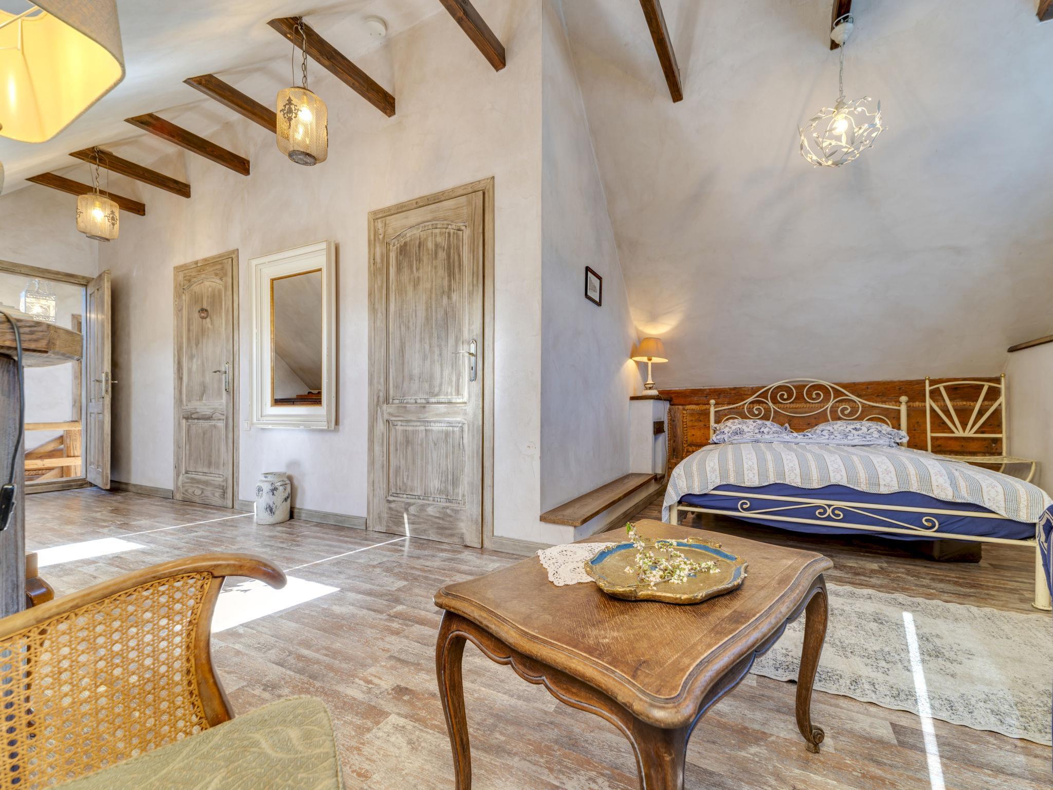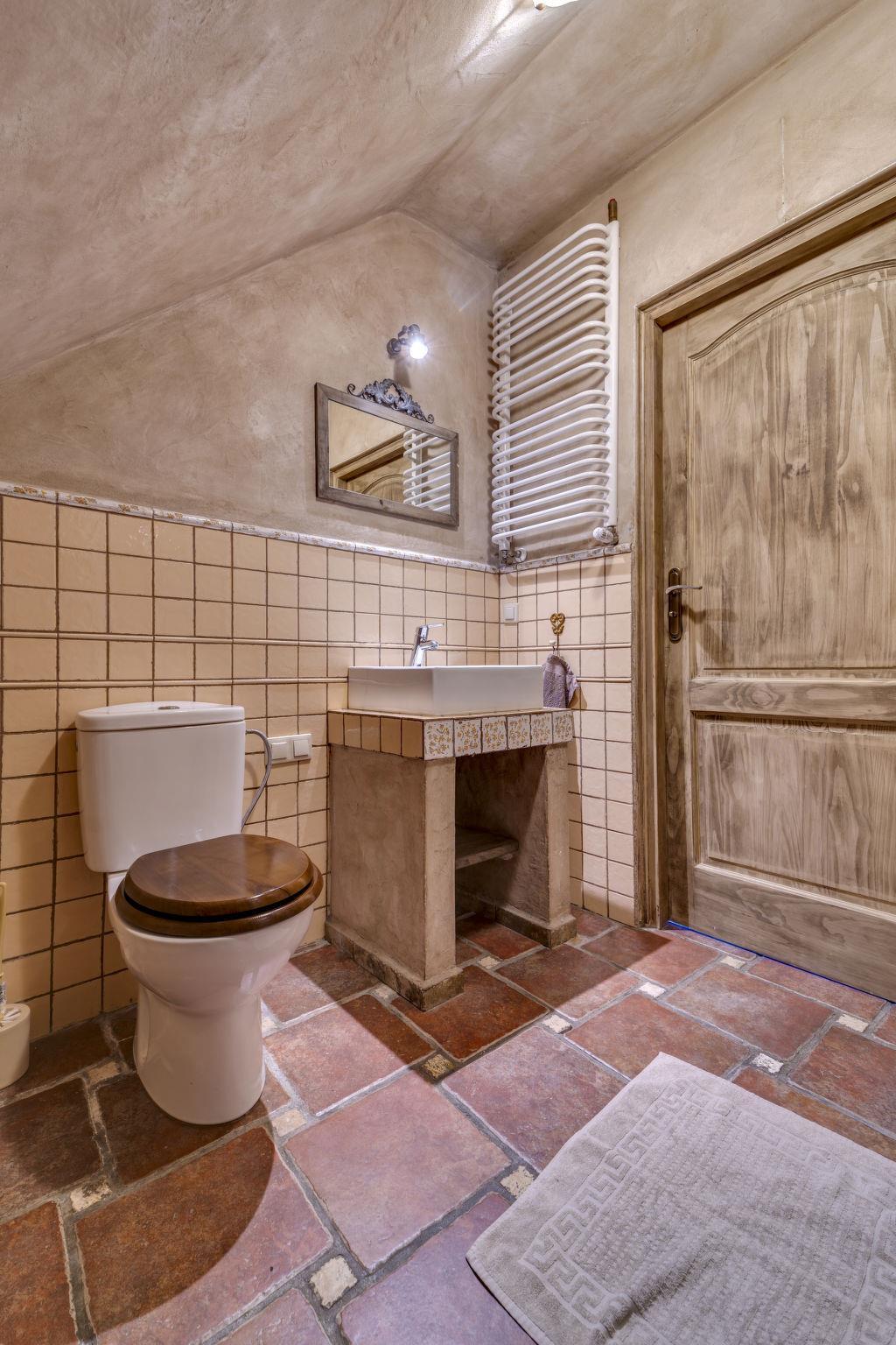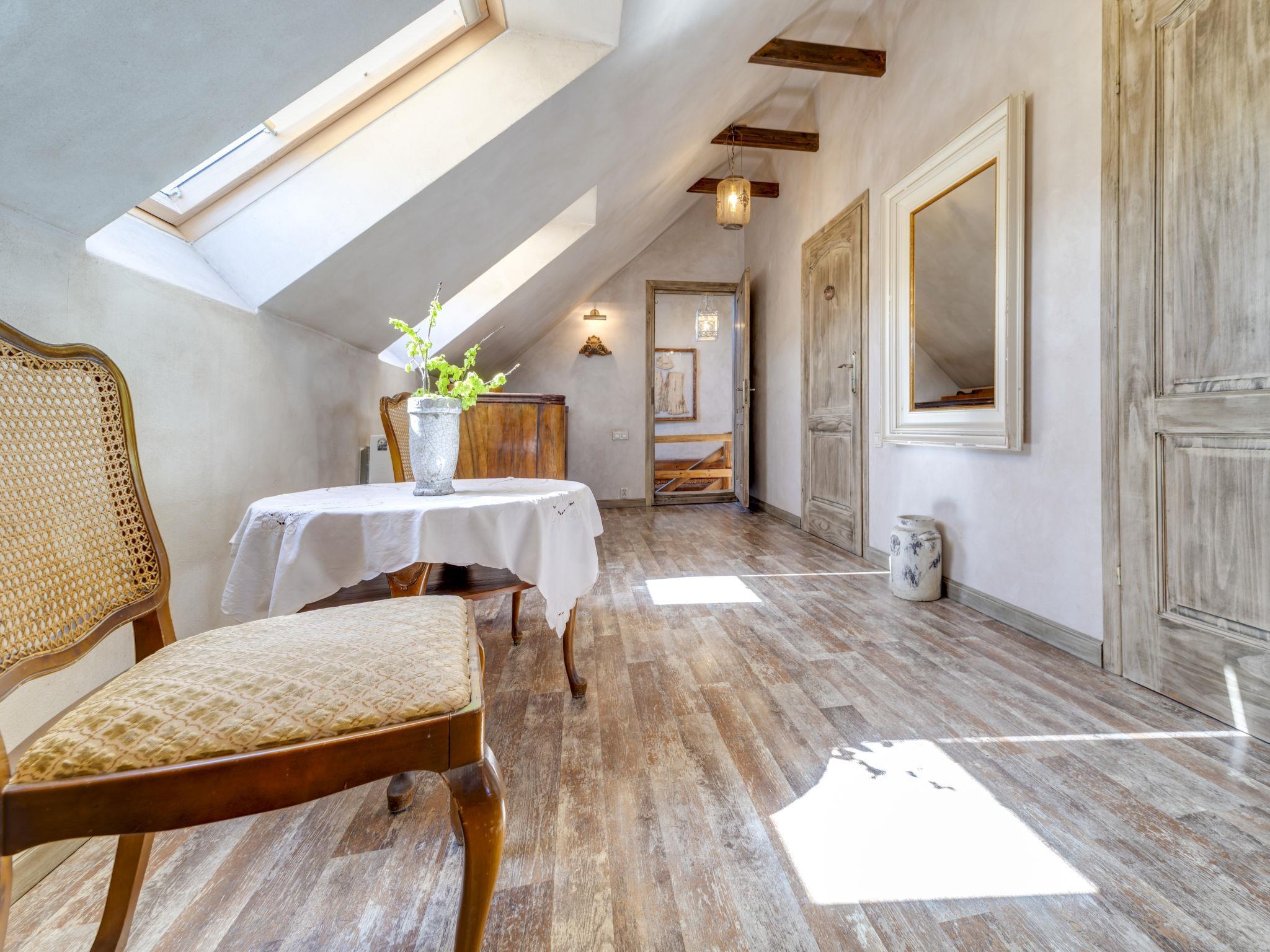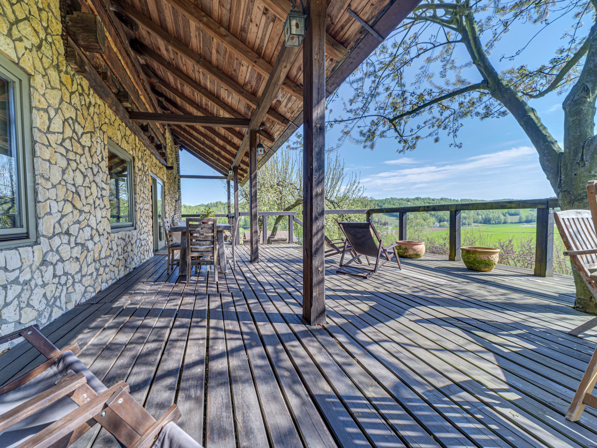 5-room house 154 m2 on 2 levels. Open large living/dining room 40 m2 with radio. Exit to the terrace. 1 room 20 m2 with 1 sofabed, 1 french bed and shower/WC. Open kitchen (oven, dishwasher, 4 ceramic glass hob hotplates, freezer, electric coffee machine). Sep. WC. Top floor: 1 room 20 m2, with sloping ceilings with 1 sofabed, 1 french bed and shower/WC. Interconnecting room 26 m2, with sloping ceilings with 1 sofabed, 1 french bed and shower/WC. 1 room 6 m2, with sloping ceilings with 1 x 2 bunk beds. 1 room 8 m2, with sloping ceilings with 1 sofabed. Electric heating (extra), boiler (280 litres). Terrace 64 m2. Terrace furniture, deck chairs (6). Beautiful view of the valley and the countryside. Facilities: children's high chair, baby cot for up to 3 year olds, hair dryer. Internet (WiFi, free). Parking at the house. Please note: non-smoking house. Maximum 2 pets/ dogs allowed.