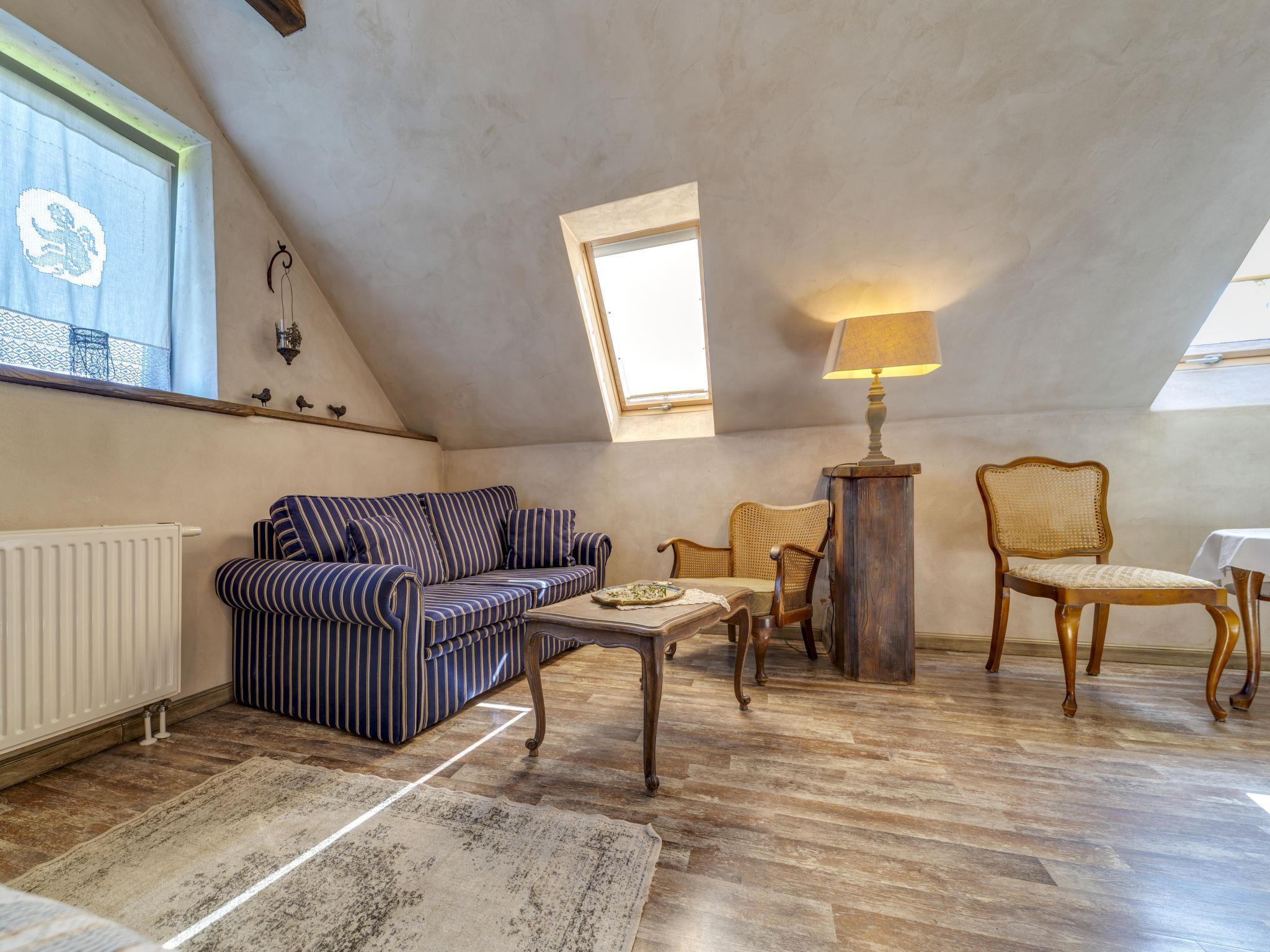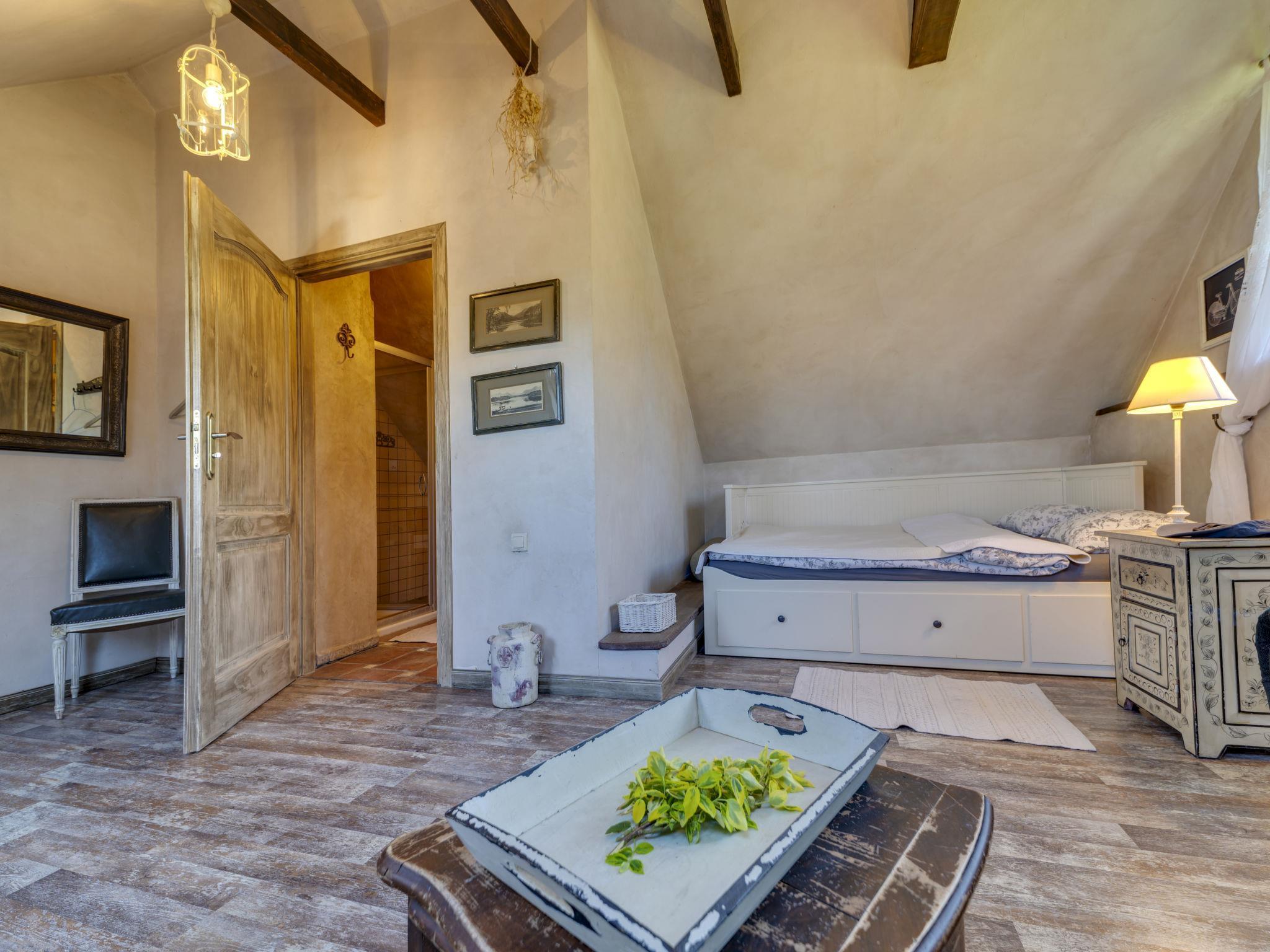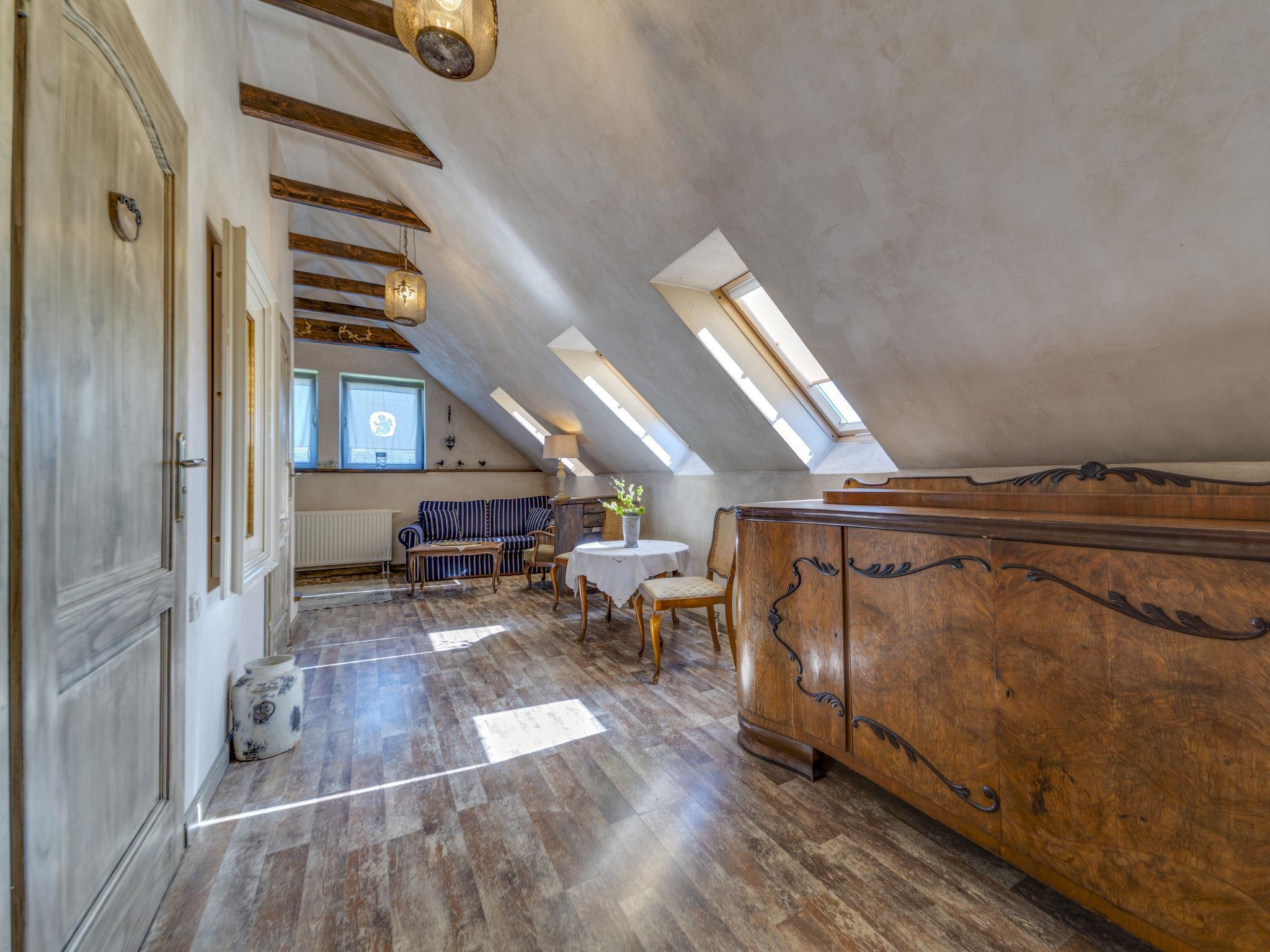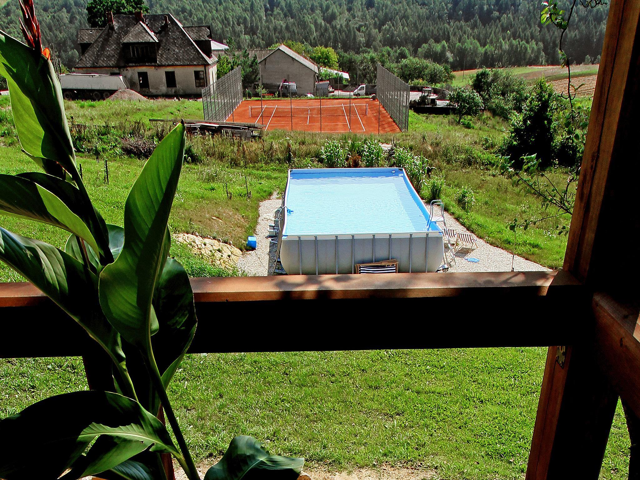 Farmhouse "Moja Mala Toskania", built in 1910, renovated in 2010, surrounded by trees, meadows and fields. On the outskirts, in a quiet, sunny position on a slope, 500 m from the skiing area, in a cul-de-sac. For shared use: property 6'000 m2, trees, meadow, orchard, swimming pool (above ground) angular (5 x 10 m, depth 130 cm, seasonal availability: 15.Jun. - 15.Sep.). Outdoor shower, boccia, volleyball, barbecue, fireplace, children's playground (swing, sandbox). Private: terrace (64 m2), garden furniture. In the house: laundry (for shared use, extra), heating to be paid on the spot. Linen change weekly. Towel change weekly. House maid on request (extra). Bread roll service (extra). Motor access to the house. Parking (for 6 cars) at the house. Shop 6 km, grocery 2.5 km, supermarket 6 km, restaurant 6 km, bus stop 1.5 km, indoor swimming pool 15 km. Tennis 6 km, riding stable 5 km, walking paths from the house, ski lift, ski school 500 m. Please note: car recommended. Local sale of farm products. Property ref. PL4244.100.2 is situated on the same property. Volleyball court, cricket field, boccia, badminton, kites (rentable locally). Eggs, milk and vegetables can be bought locally or picked up from the fruit garden (free). Bread delivery service (bakery in the town, extra). Canoeing, 20km. Climbing, 5km, cycling- and hiking paths, 500m, swimming in lake Pilica, 6km, Siamoszyce 18 km.