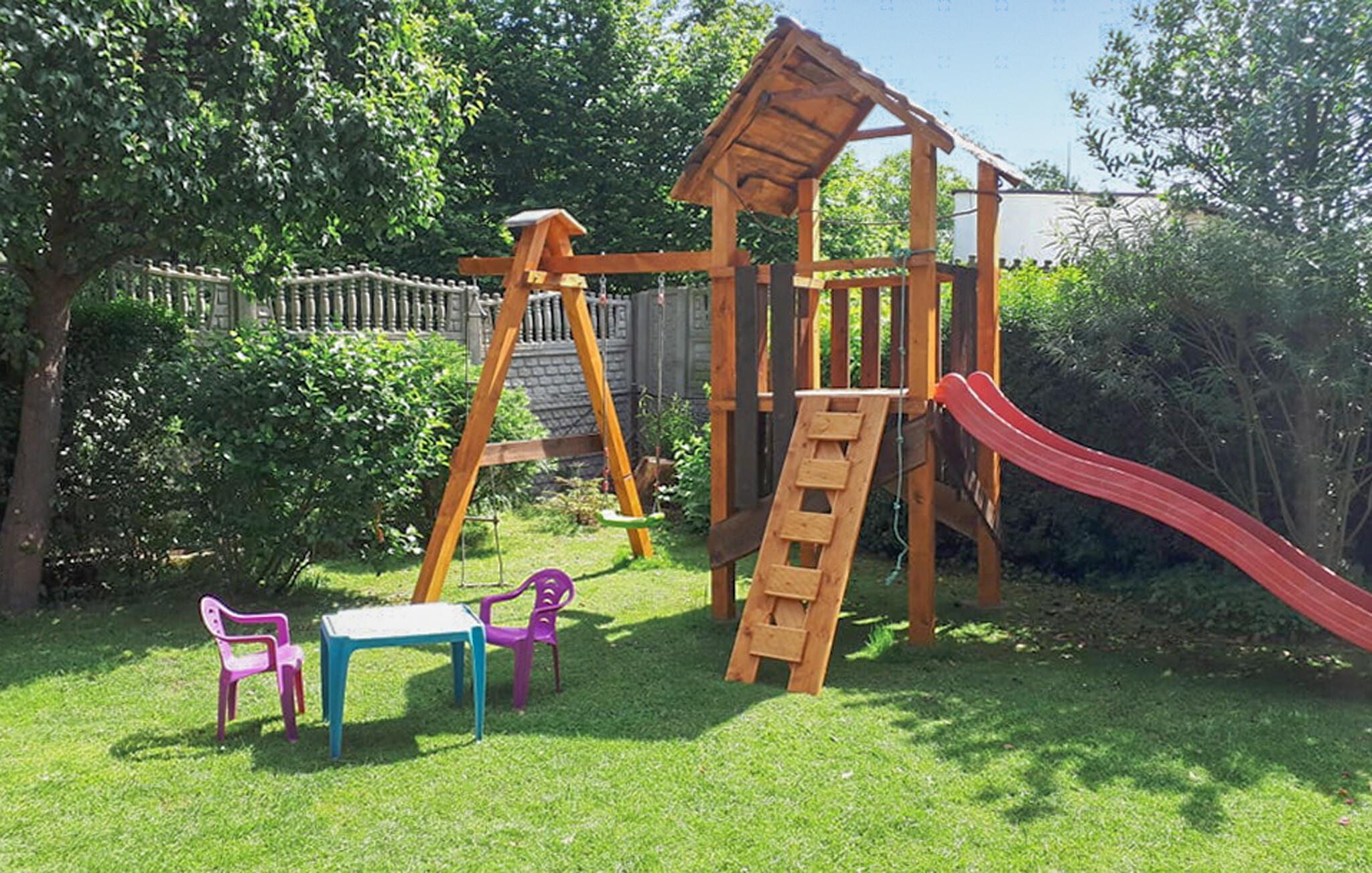 Dette familievenlige feriehus er en god base for en varieret ferie ved Østersøen. Husets interiør er indrettet i en varm træstil, hvilket giver det en indbydende karakter. Stuen med komfortable siddepladser, et fjernsyn og smagfulde detaljer tilbyder et hyggeligt sted at slappe af. Planter og omhyggeligt udvalgte dekorative elementer tilføjer et hjemligt præg. Køkkenet er funktionelt udstyret og giver jer mulighed for at tilberede jeres egne måltider. Et lille spisebord giver plads til at hygge jer eller nyde en kop kaffe om morgenen. Nyd det solrige vejr på terrassen eller i haven. I kan spise på det overdækkede siddeområde eller slappe af i ro og mag. I den velholdte have tilbyder legepladsen med gynger og rutsjebane underholdning for de yngre gæster. Et hyggeligt hjørne med et træbord og stole inviterer jer også til at tilbringe afslappende timer udenfor. Oplev jeres feriedestination, Darlowo, en charmerende badeby på den polske østersøkyst. Slentr gennem den gamle bydel med dens historiske bygninger eller besøg de pommerske hertugers slot. Tag en tur til den brede sandstrand eller nyd en bådtur på Wieprza-floden. I det omkringliggende område finder I også restauranter, caféer og cykelstier, der inviterer jer til at udforske det smukke kystlandskab.