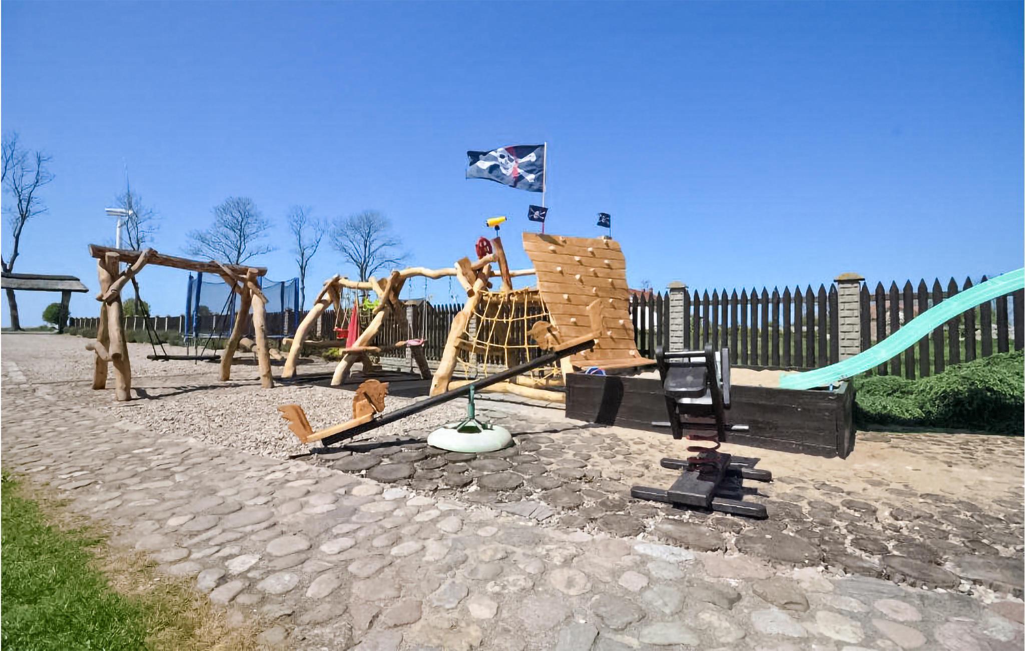 Tag familien under armen og glæd jer til denne dejlige lejlighed, der ligger i rolige, landlige omgivelser lige uden for Darlowo. Indretningen er ganske indbydende og byder på en enkel komfort, så boligen er det perfekte valg for jer, der foretrækker fred, ro og dejlig natur over byens stress og jag. Fra stuen er der udgang til altanen, hvor I kan finde jer godt til rette med god mad efter dagens udflugter. På grunden finder I mange legeredskaber, som jeres børn kan boltre jer med, mens I nyder roen og omgivelserne med et godt glas vin i aftensolen.