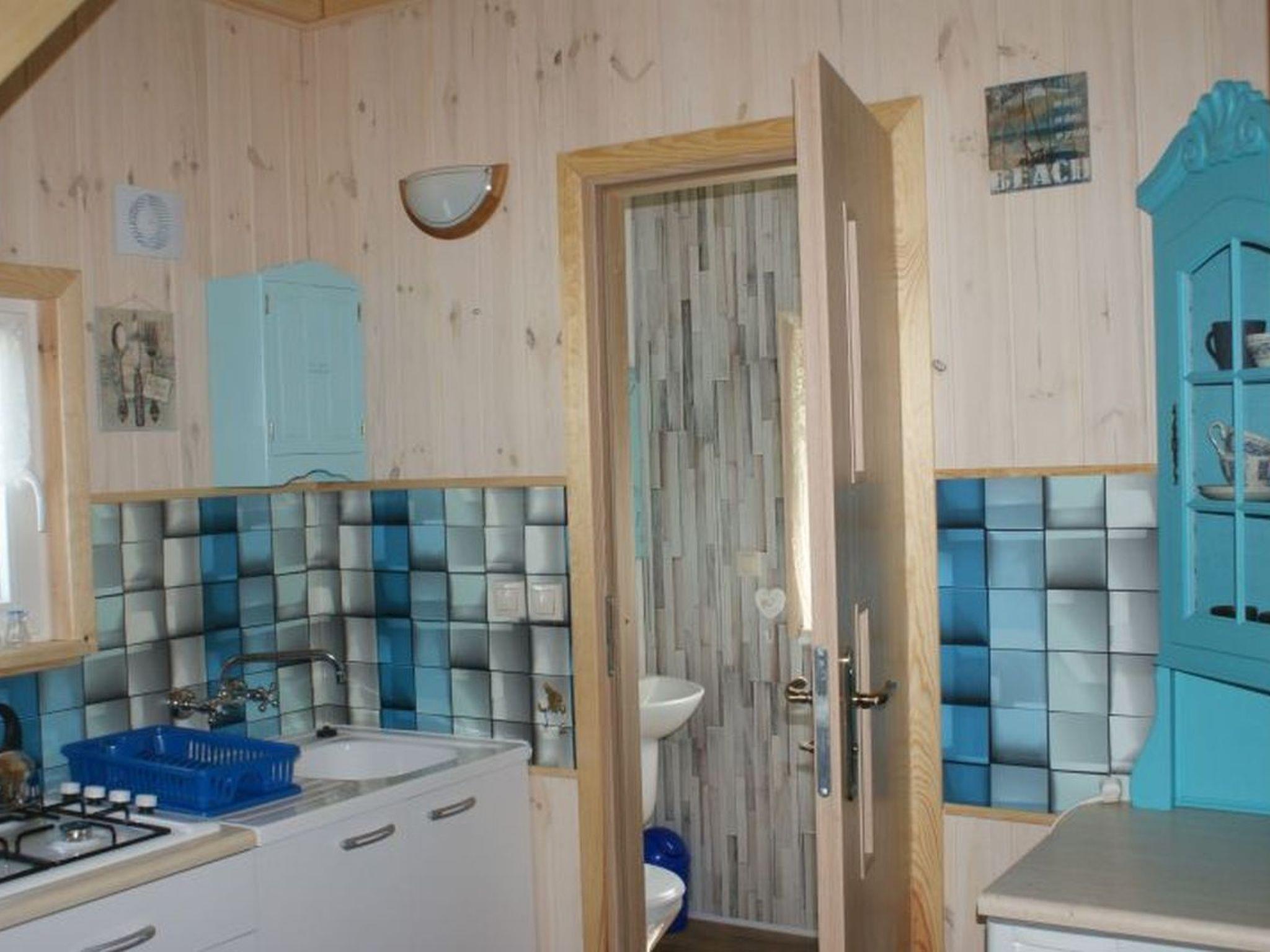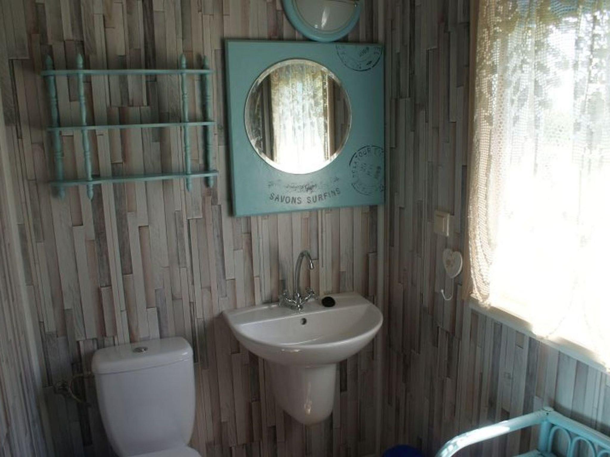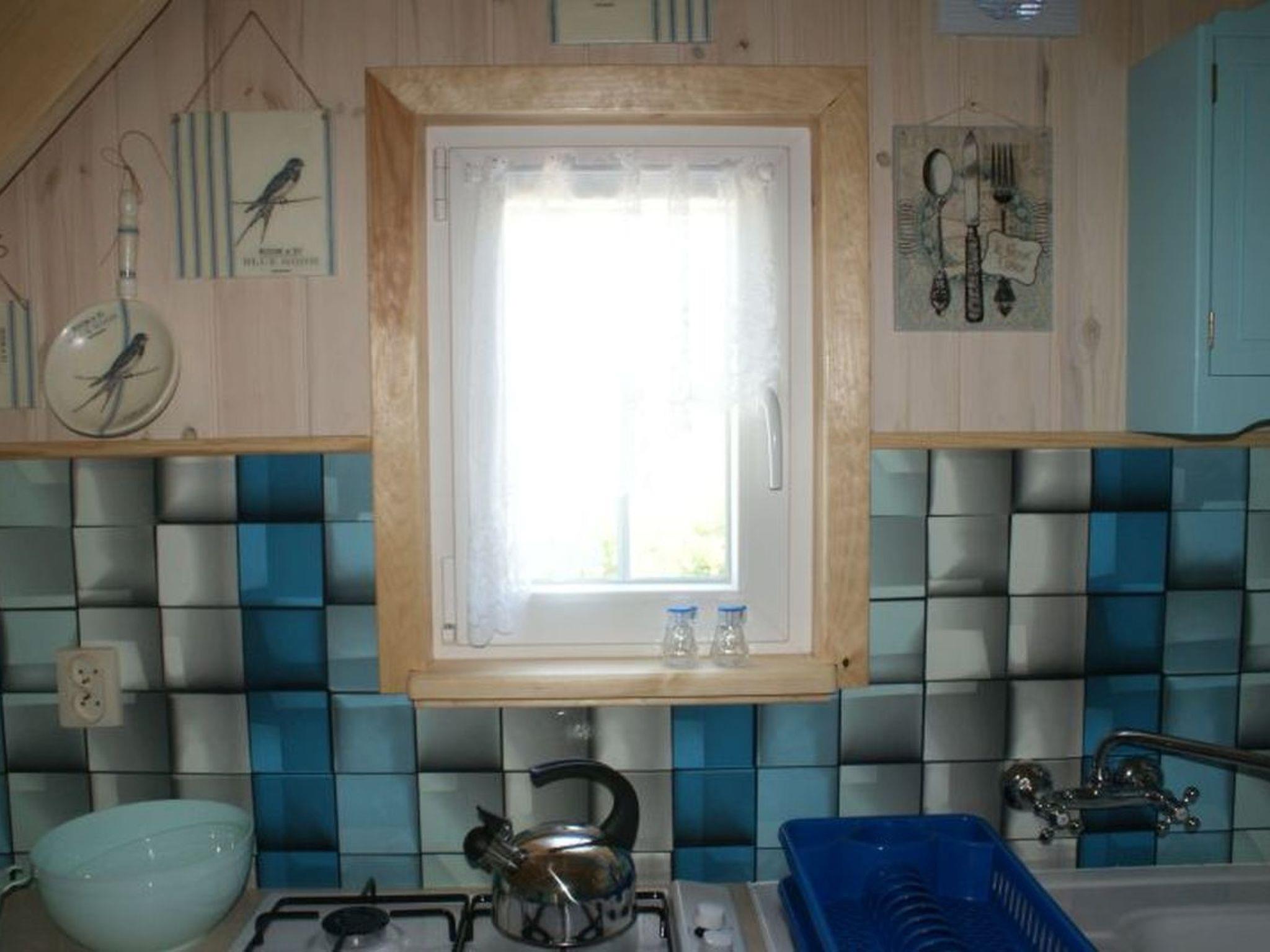 The ground floor of the cottage consists of a room and a kitchen (fridge, cooker, sink, dishes, etc.) and a bathroom. The living room is equipped with a wardrobe, a sofa (fold-out sofa), a TV, armchairs and other small furniture to ensure full comfort of rest.