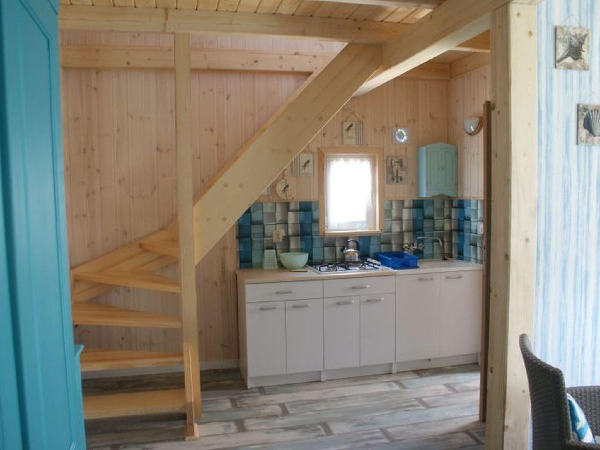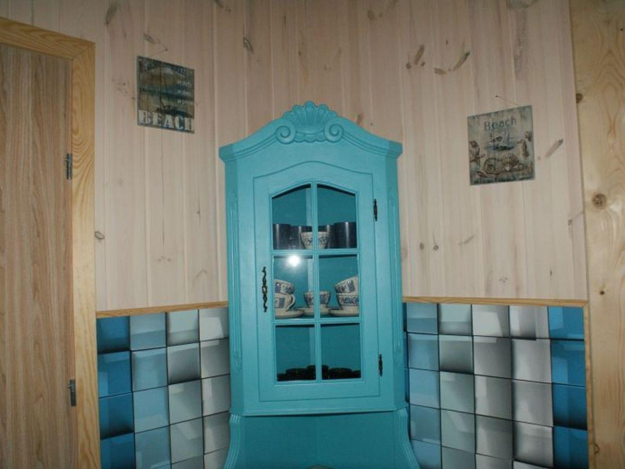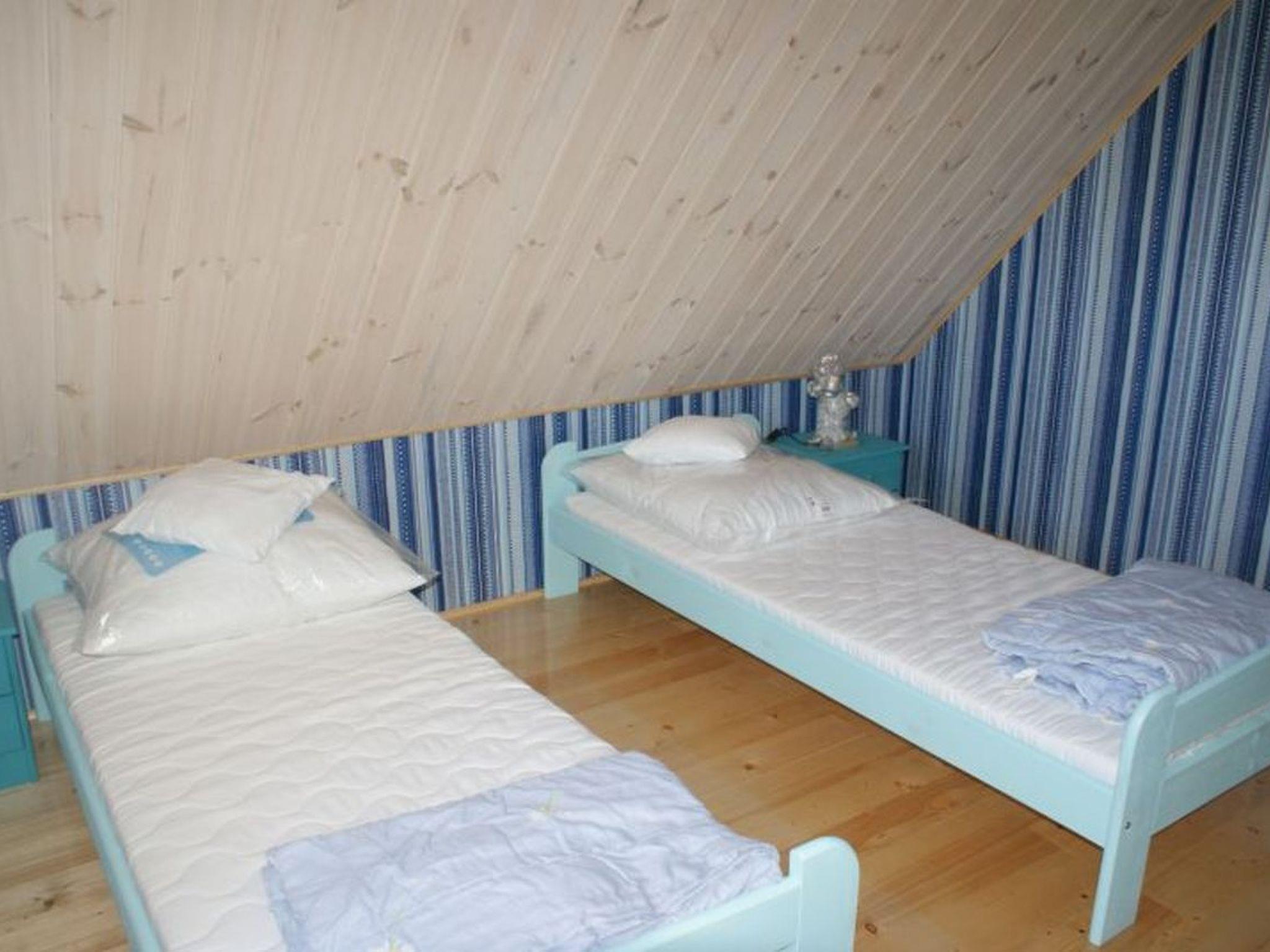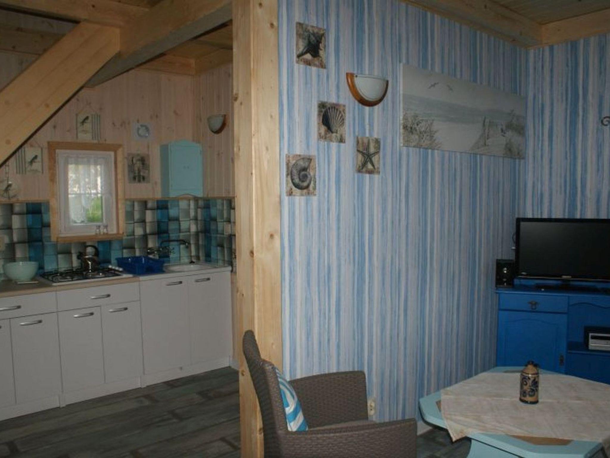 The ground floor of the cottage consists of a room and a kitchen (fridge, cooker, sink, dishes, etc.) and a bathroom. The living room is equipped with a wardrobe, a sofa (fold-out sofa), a TV, armchairs and other small furniture to ensure full comfort of rest.