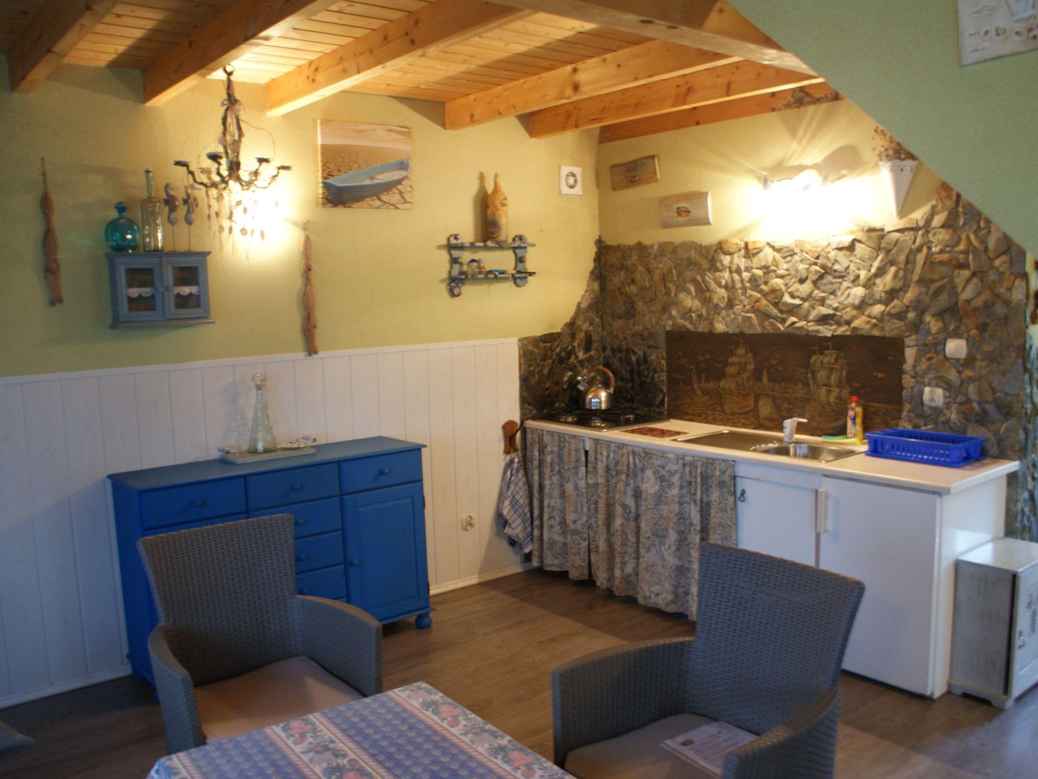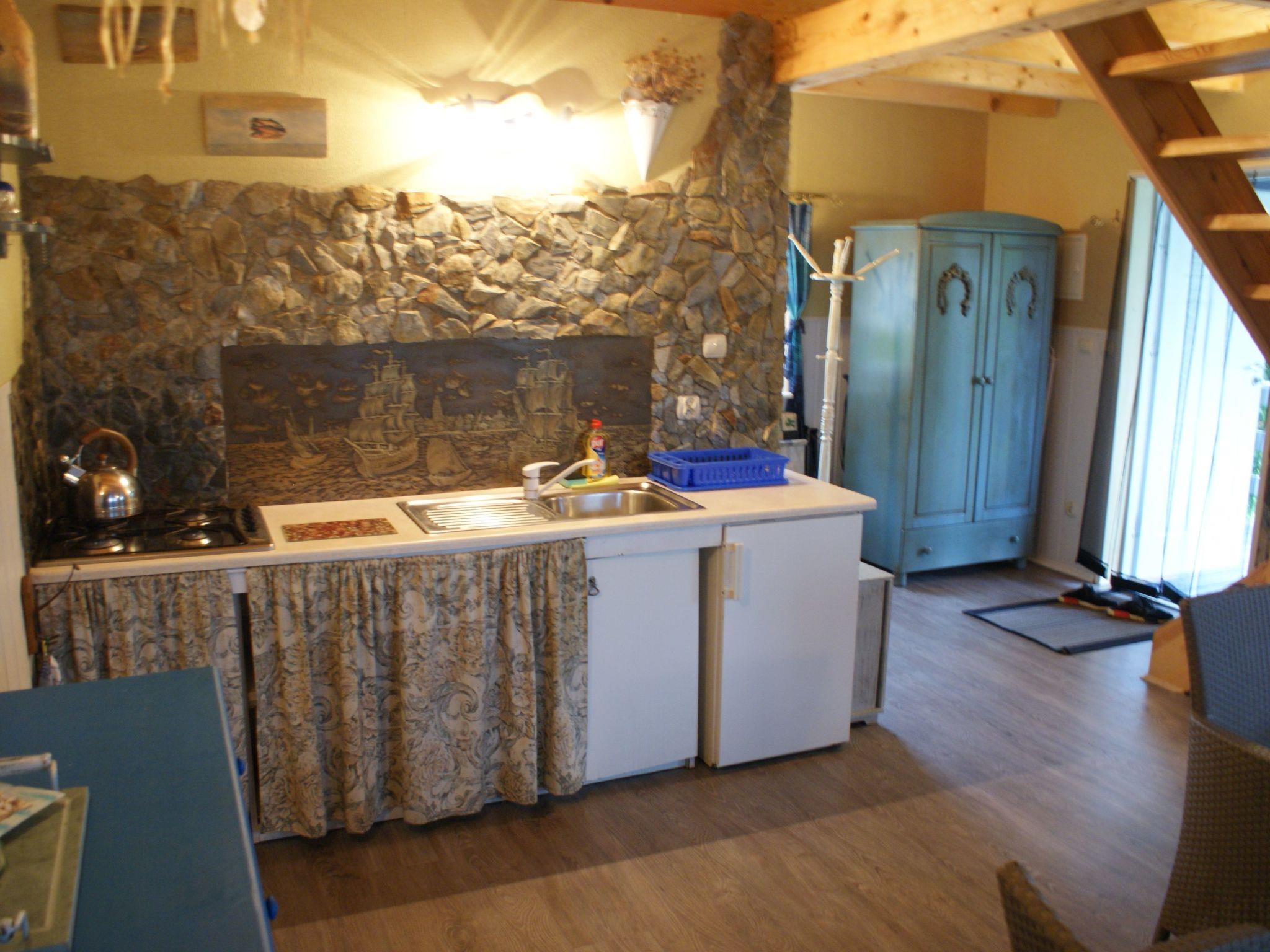The ground floor of the cottage consists of a room with a kitchen area (complete kitchenette) and a bathroom.