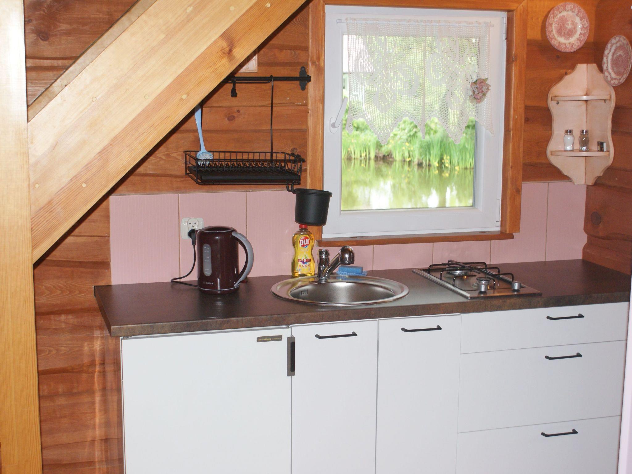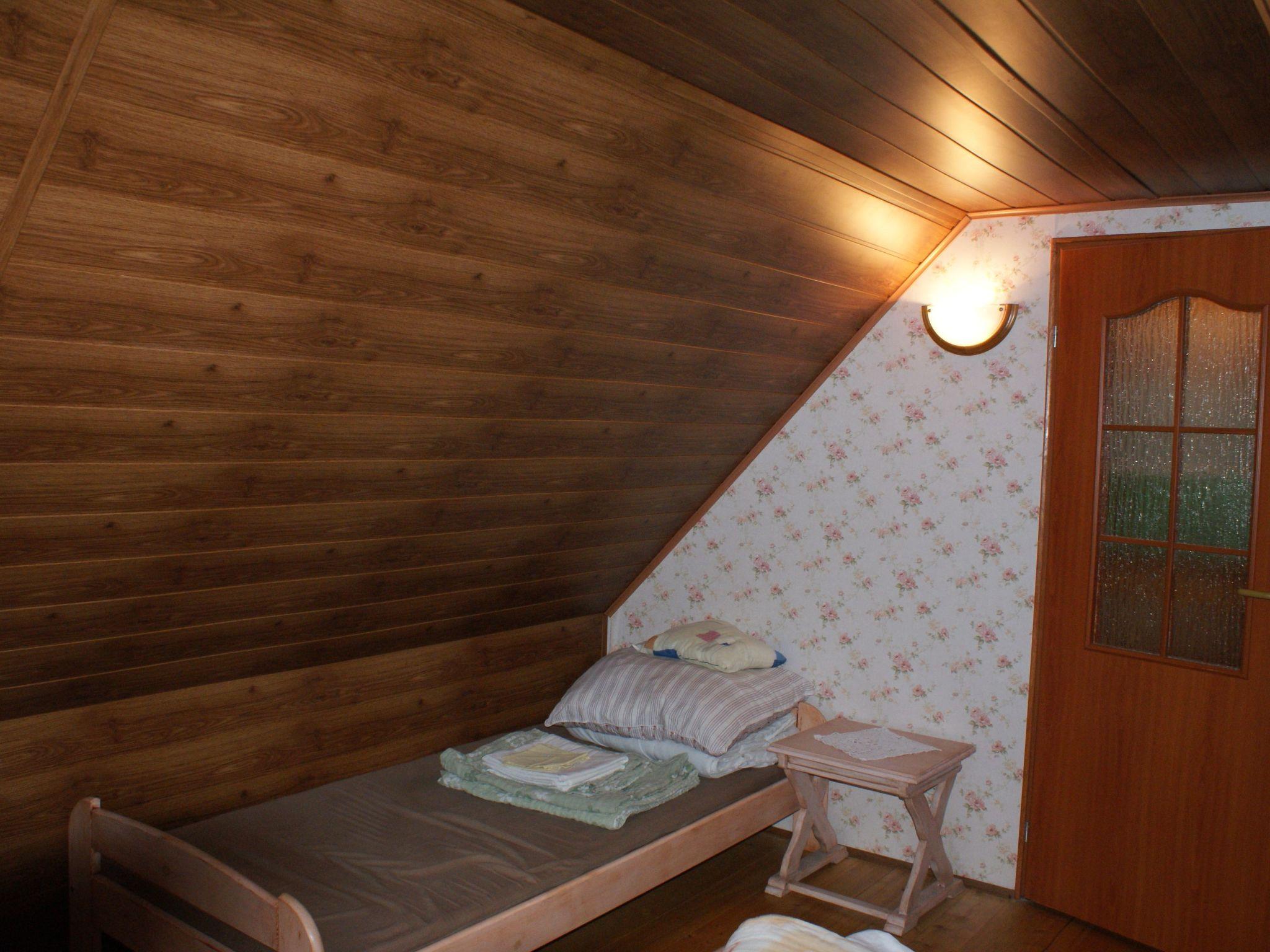 The ground floor of the cottage consists of a room and a kitchen (fridge, cooker, sink, dishes, etc.) and a bathroom. The living room is equipped with a wardrobe, sofa, TV set, armchairs and other small furniture to ensure full comfort of rest.