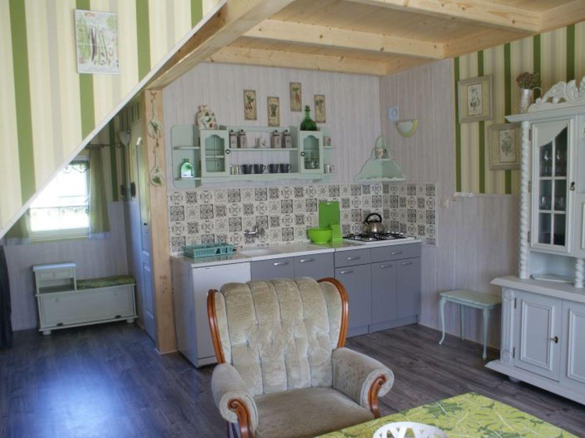 The ground floor of the cottage consists of a room with a kitchen area (complete kitchenette) and a bathroom.