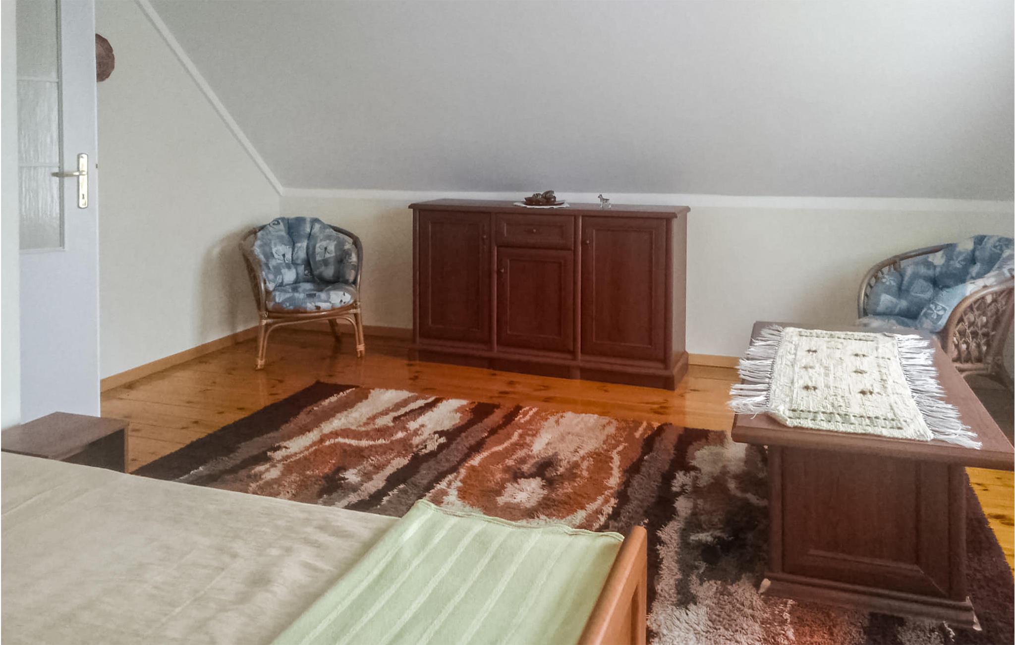 Rummeligt, familievenligt feriehus med rolig beliggenhed nær søen. Dette attraktive feriehus ligger i et skovområde øst for Szczecin. Det funktionelle interiør strækker sig over to etager og gør et venligt indtryk. Selv store familier vil finde plads, komfort og alt hvad du behøver til en afslappende ferie her. Nyd en kop kaffe om morgenen på den idylliske, overdækkede terrasse og tilbring timevis af sjov i løbet af dagen med et krydsord eller et spil backgammon. I den lukkede have finder du gode solforhold og god plads til sjov og leg. Den nærliggende sø Diminikowo inviterer dig til afslappede badeudflugter om sommeren. Lad børnene bygge sandslotte på kysten og nyd en idyllisk picnic, mens de kigger ud på vandet. Du kan også leje en båd og prøve dig frem i fiskeriet – måske fanger du aftensmaden?
