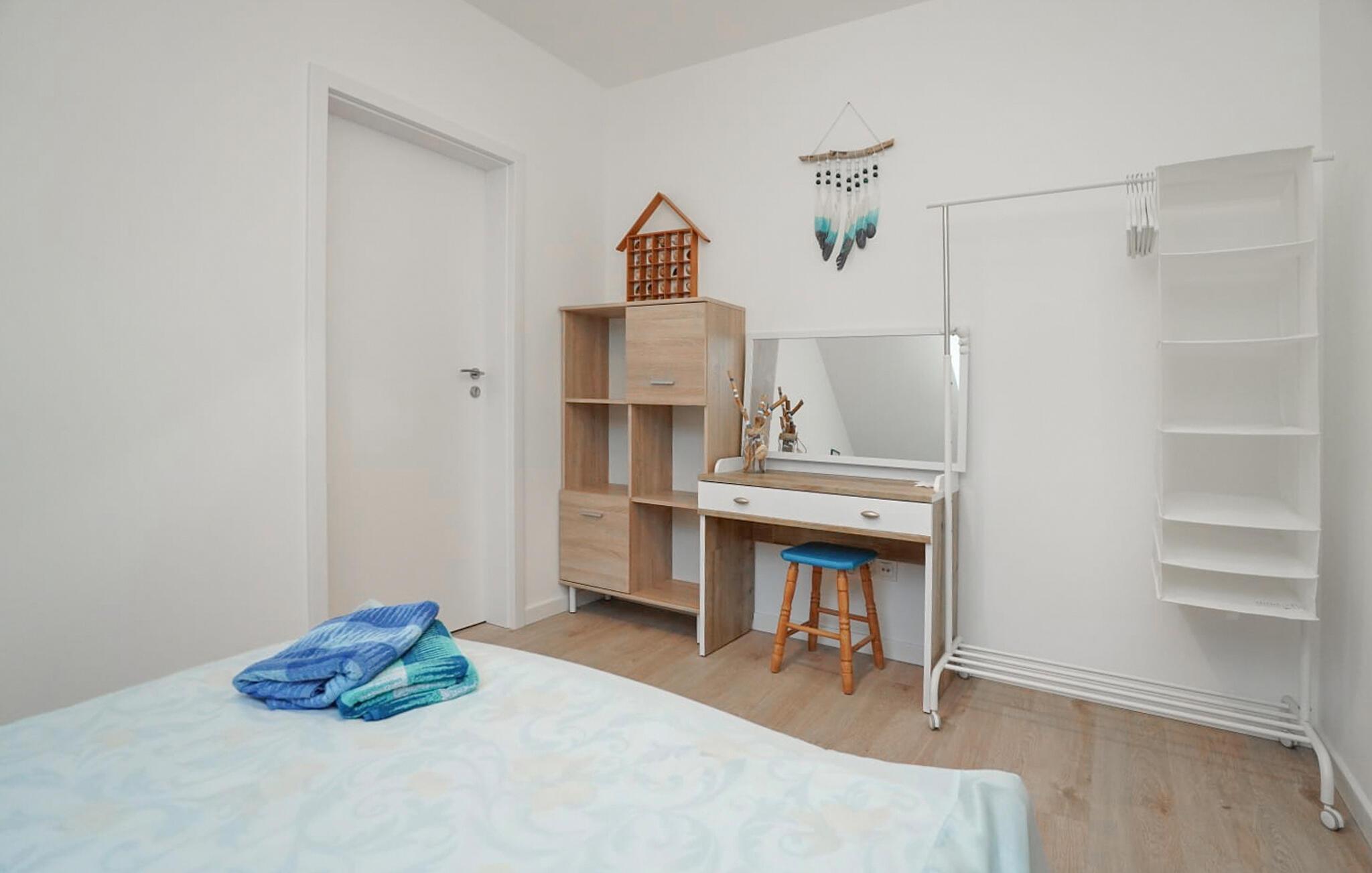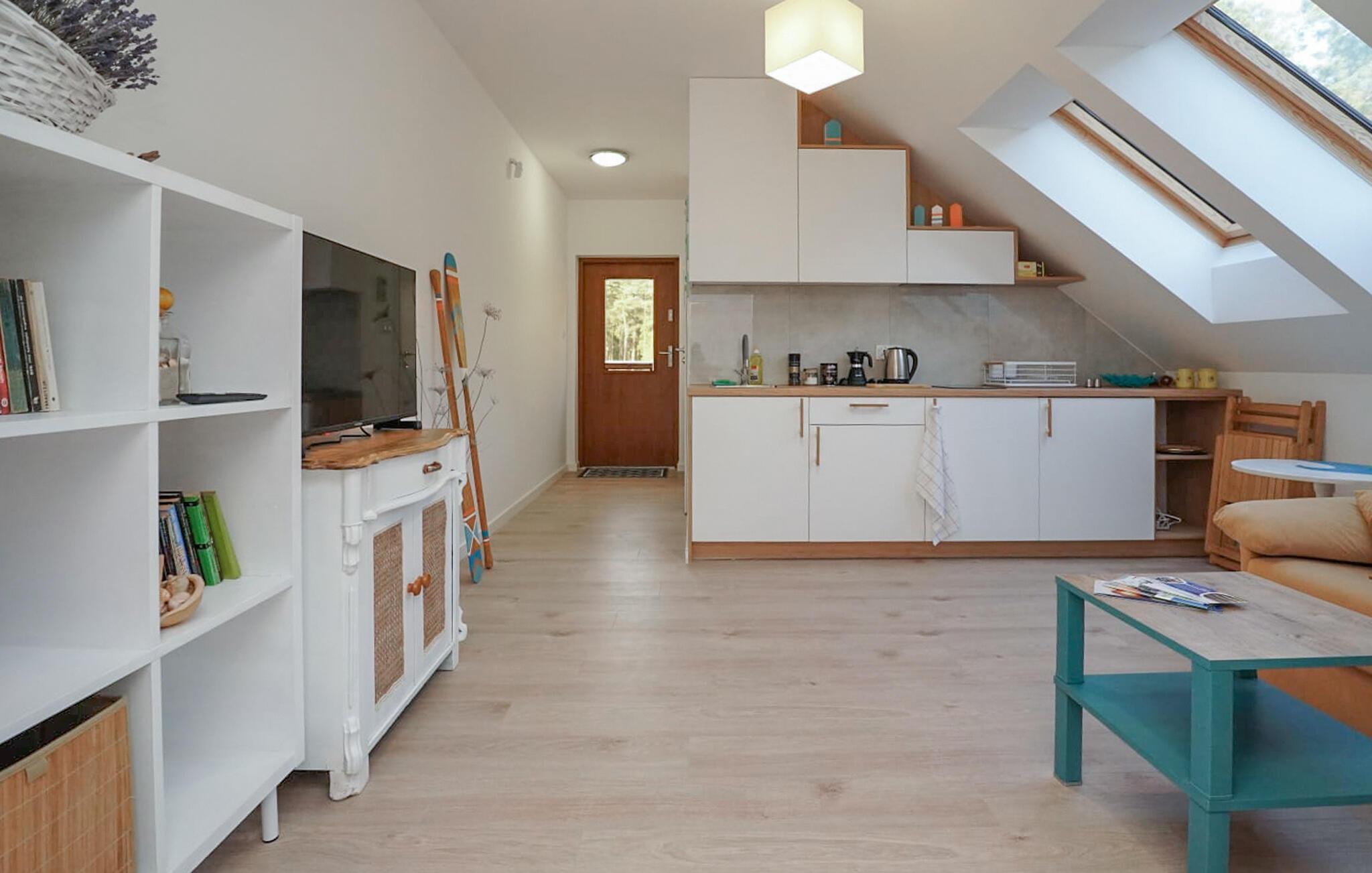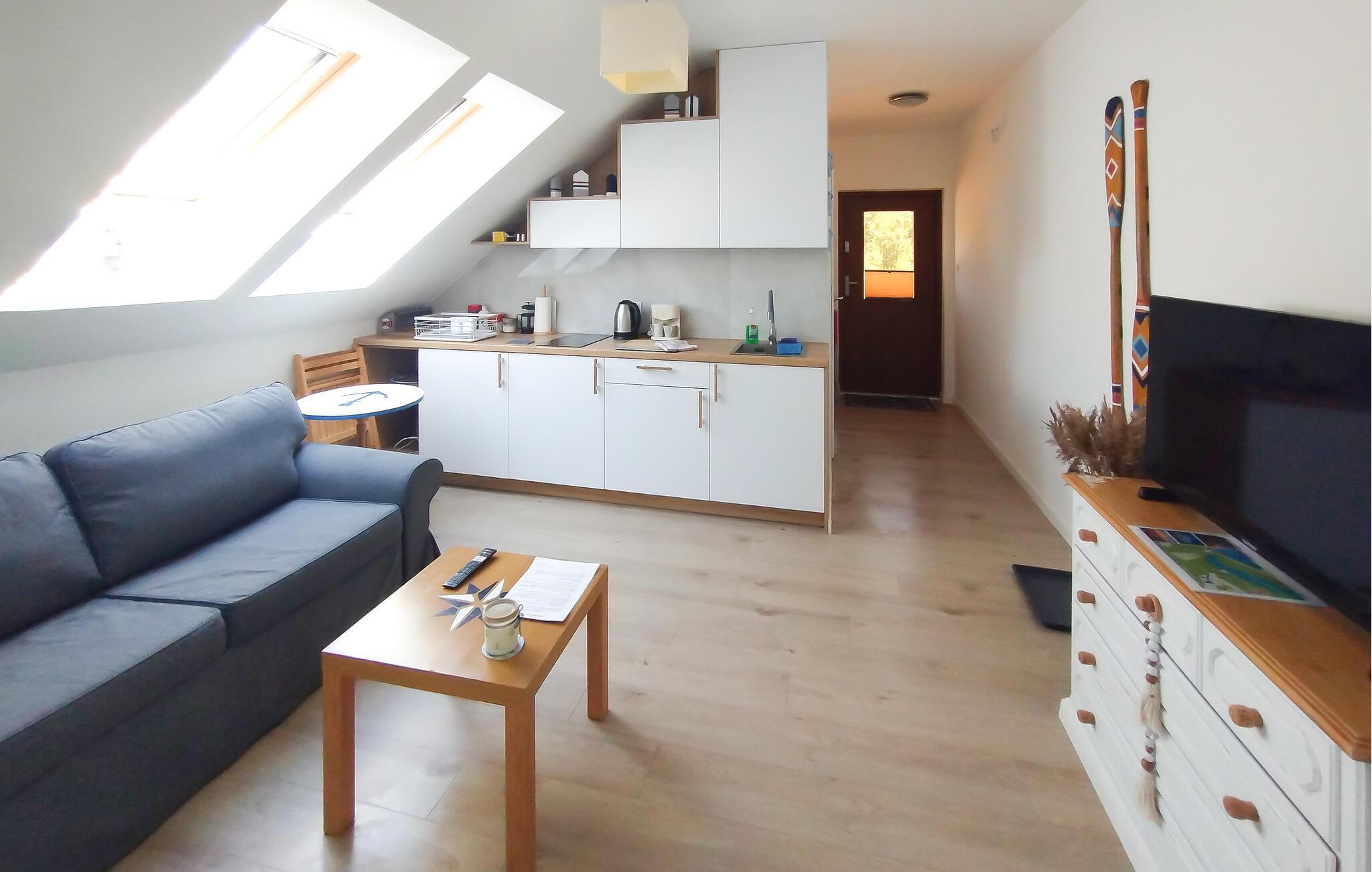 Glæd jer til jeres ferie i den indbydende ferielejlighed tæt på stranden. Denne attraktive lejlighed tilbyder jer ikke kun de ideelle rammer for en viInderlig tid sammen, men også en fremragende beliggenhed for at opdage denne fascinerende kystby. Start jeres dag med morgenmad på jeres terrasse og nyd de første solstråler. Det hyggelige køkken-alrum er ideelt til at koble af efter en begivenhedsrig dag. Føl jer godt tilpas i sofaen sammen og slut dagen med afslapning. Gå en tur til stranden og nyd havet og solen. Prøv også de forskellige vandsportsaktiviteter, der tilbydes her - det være sig sejlads, windsurfing eller kajaksejlads. Selve den charmerende havneby tiltrækker besøgende med sine maritime attraktioner. Gå en tur langs molen og se fiskerbådene eller tag en bådtur for at opleve østersøkysten fra et nyt perspektiv. Udforsk Wolin National Park, kun en kort køretur væk, og nyd de spektakulære klipper, frodige skove og mangfoldige dyreliv.