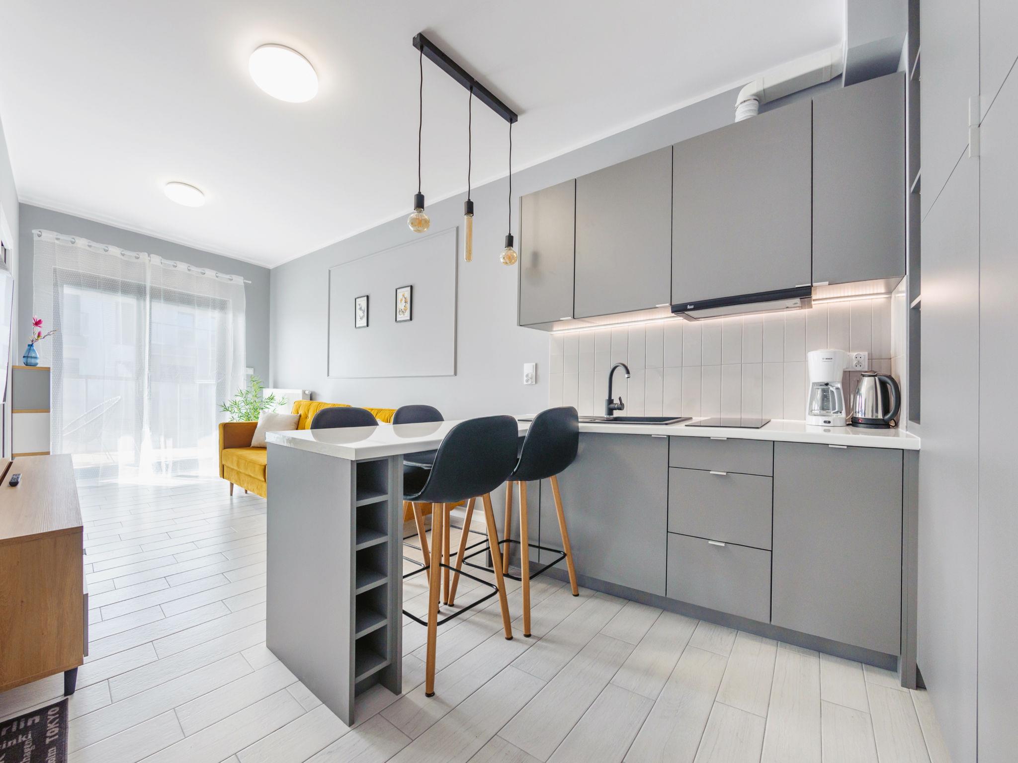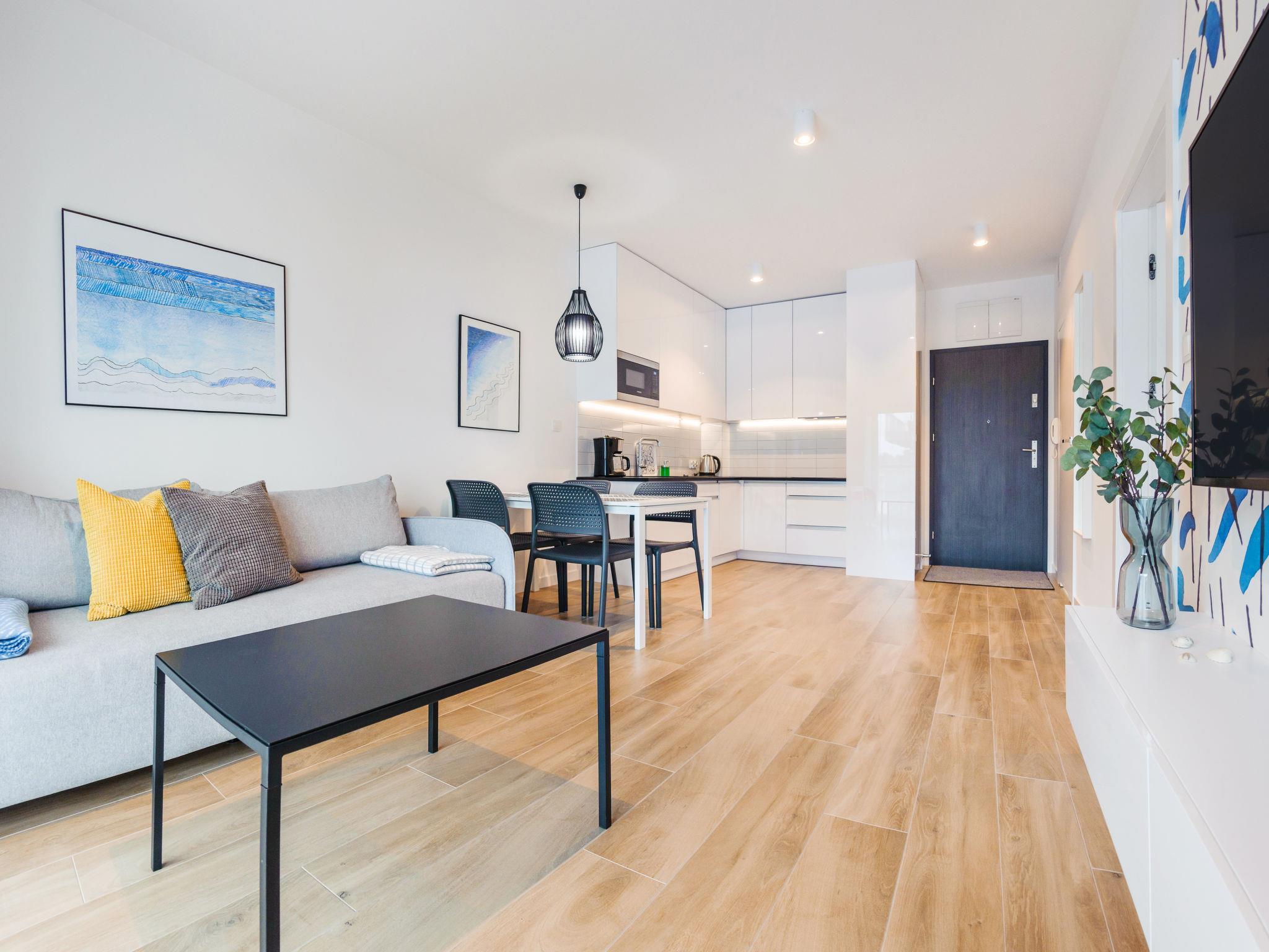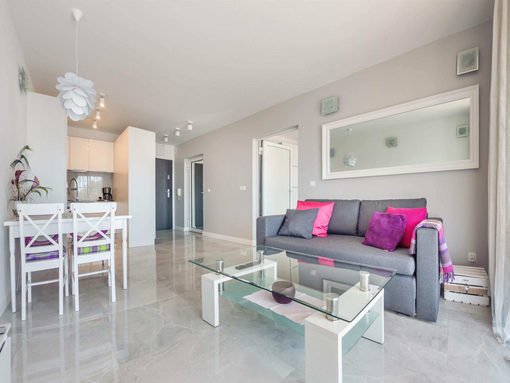 Modern, cosy apartment block "Gardenia". In a quiet, sunny position, 100 m from the sea, 100 m from the beach. For shared use: children's playground. In the house: WiFi, lift, central heating system. Parking (extra) at the house. Grocery 500 m, restaurant 700 m, bus stop 27 km, sandy beach 100 m. Nearby attractions: Promenada nadmorska 300 m, Nadmorski Park Miniatur 3.1 km, Baltycki Park Dinozaurów 7 km. Well-known lakes can easily be reached: Jezioro Martwa Dziwna 3.5 km. Please note: the photograph shows a typical example. Additional accommodations can be booked.