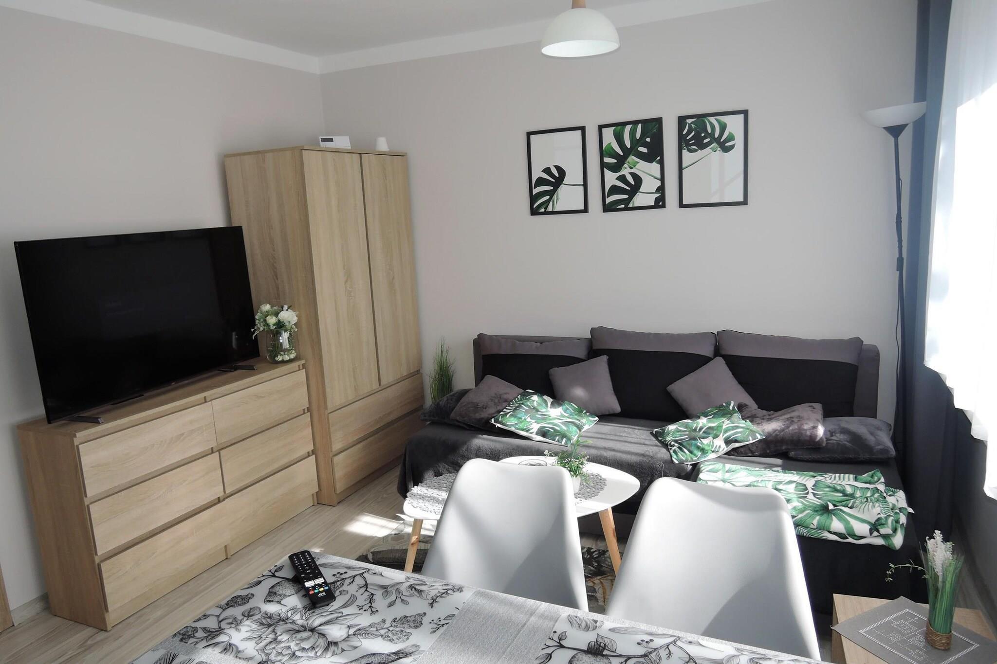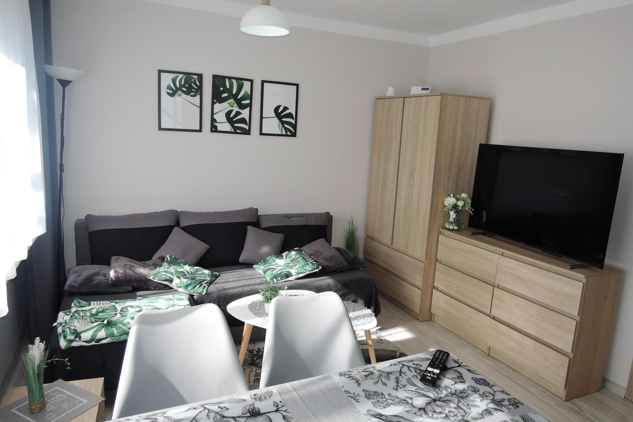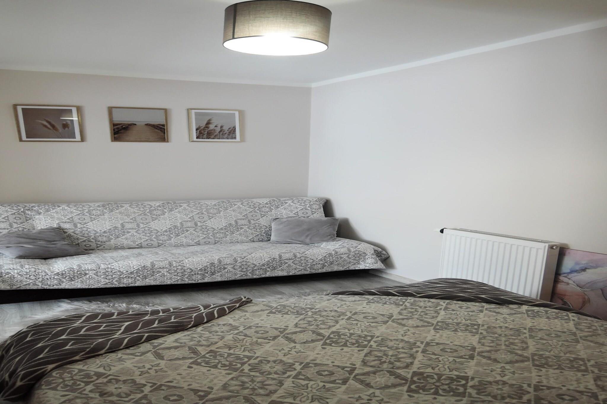 En lejlighed i Dziwnów ved Aleja Sportu og kun 100 meter fra den smukke, brede strand ved Østersøen. Avenue er et unikt sted. Den indeholder næsten 100 kopier af medaljer og trofæer vundet af polske atleter under de største sportsbegivenheder og konkurrencer. Soklerne ser bedst ud om aftenen, når de er oplyst, hvilket gør dem unikke og pragtfulde. Dziwnów er en lille, charmerende kystby, smukt beliggende på et forbjerg mellem Østersøen og Dziwna-floden. En af de største attraktioner i Dziwnów er vindebroen bygget på Dziwna-strædet, som forbinder Wolin-øen med fastlandet. Broen rejser sig flere gange om dagen, ledsaget af passage af skibe. En anden attraktion er promenaden, der er næsten 3 km lang og ligger på toppen af kystklitterne. Det er et ideelt vandrested for familier med børn og ældre, der strækker sig mellem fyrreskove. Dziwnów, som en kystby, kunne ikke fungere uden havne. Alle, der besøger dette sted, bør derfor tage til lystbådehavnen, fiskerihavnen og til den sæsonbestemte marina og fortøjning af krydstogtskibe. Lystbådehavnen er bygget i form af bogstavet "G" og rummer omkring 60 fartøjer op til 12 m i længden. Yachter, der deltager i regattakonkurrencer i verdensmesterskaber eller europæiske mesterskaber, fortøjer her mange gange. 5 km fra Dziwnów ligger Baltic Dinosaur Park med en vidunderlig Safaripark, og en næsten 30 kilometer lang cykelrute løber langs Dziwna-floden. Også bemærkelsesværdig er Kamien Pomorski med sin fascinerende arkitektur fra det 14. århundrede og Trzesacz med historisk interessante kirkeruiner. Dziwnów og dens omgivelser er et helt unikt, malerisk sted, hvor alle helt sikkert vil finde noget for sig selv.