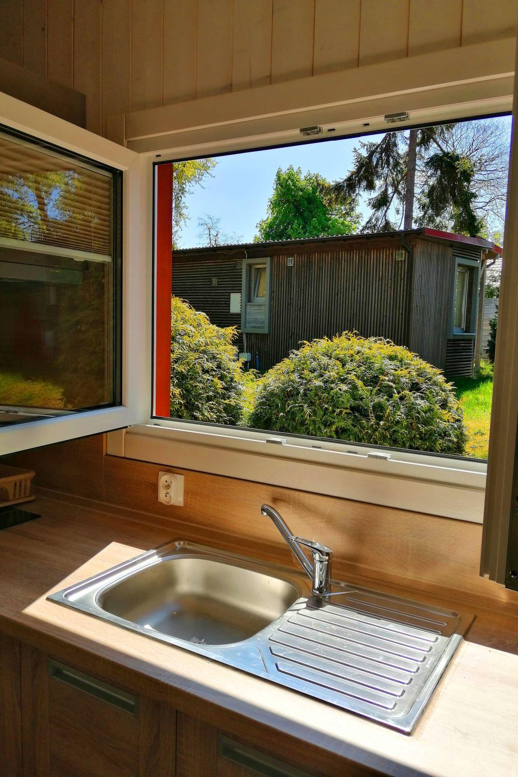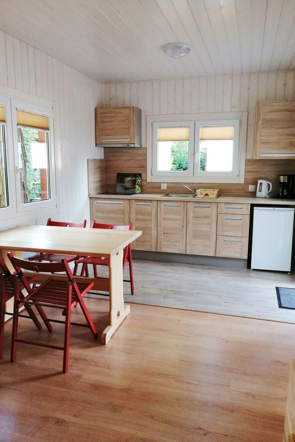 The house has two cosy bedrooms, each equipped with two single beds that can be put together, as well as a wardrobe and a bedside table. In addition, the house has an en-suite bathroom with shower and toilet, as well as a washbasin with cabinet and mirror. The kitchenette is equipped with a 2-burner electric cooker, an under-counter fridge-freezer, a sink and the crockery and utensils needed to prepare meals. Additional conveniences include cable TV with Polish programmes and electric heating in each room.
