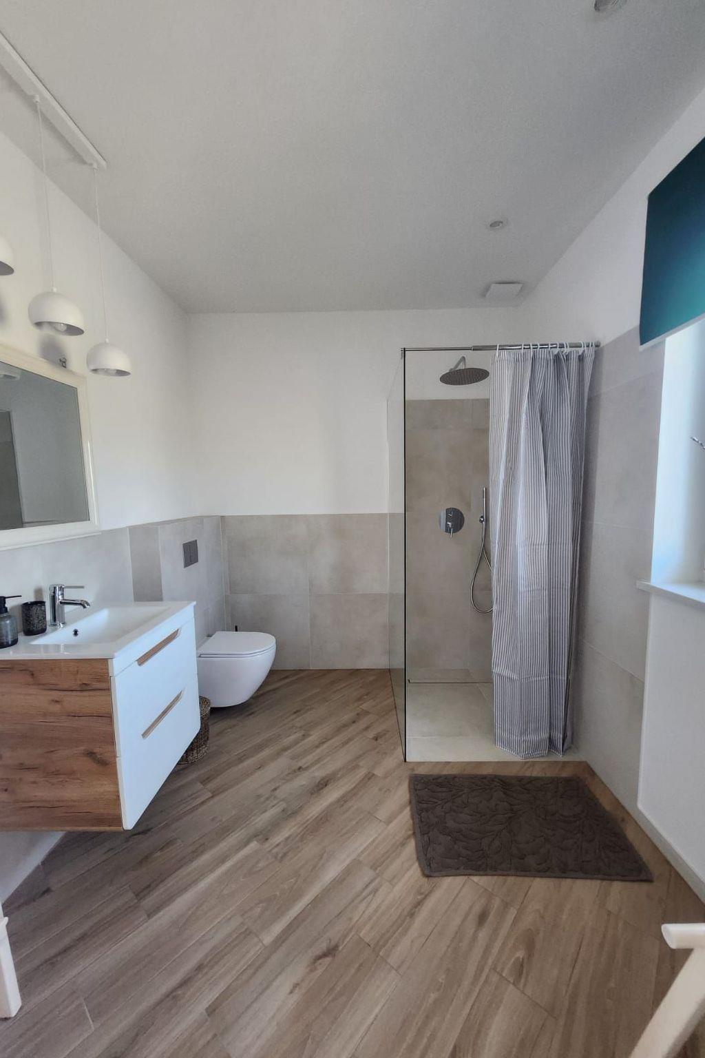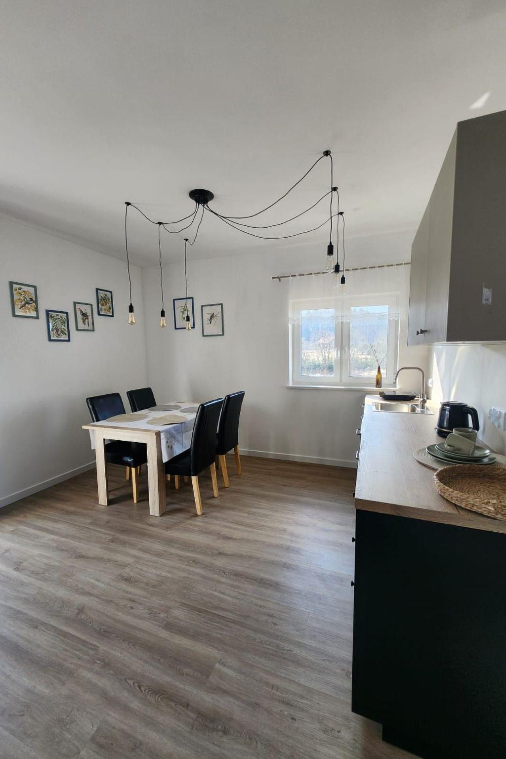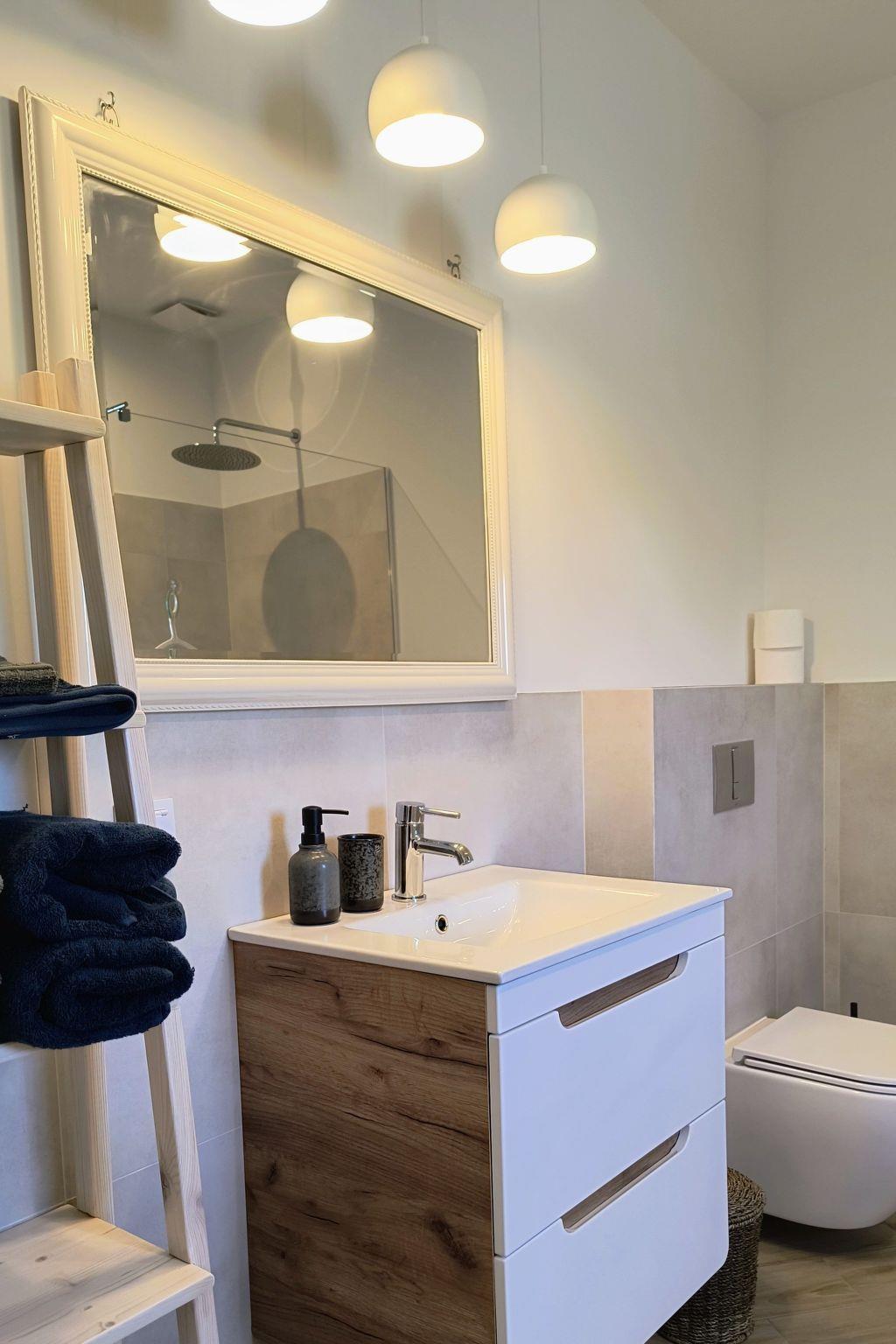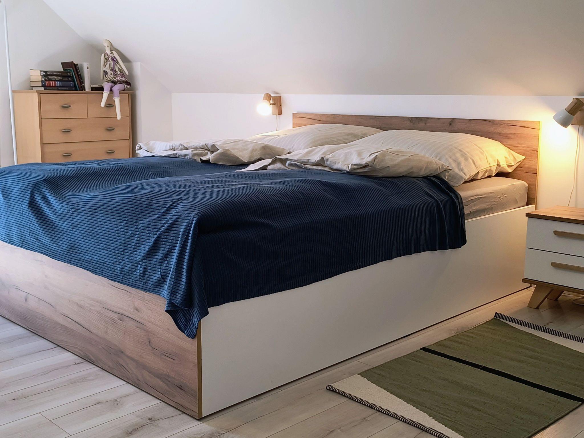 Ptasi Zakatek is a peaceful place on the border of Warmia and Mazury. Here everyone can relax. The facility is located on a 7ha plot on the edge of Tomaryny village. Space, peace and closeness to nature are our main assets. The 75m2 holiday flat occupies half of the segment. The windows and terrace overlook the forest and the floodplain. From morning to evening you can watch the visiting birds (cranes, storks, brambles, swallows, sometimes eagles) and the animals that appear on the plot (roe deer, deer, foxes, hares) On the ground floor there is a kitchenette with an eating area, a seating area around the fireplace/goat and a bathroom . The bedroom, furnished with a double bed and a sofa bed, has been arranged on the first floor (access via stairs). There are books and board games in the flat, and bicycles are available for those who wish to use them.