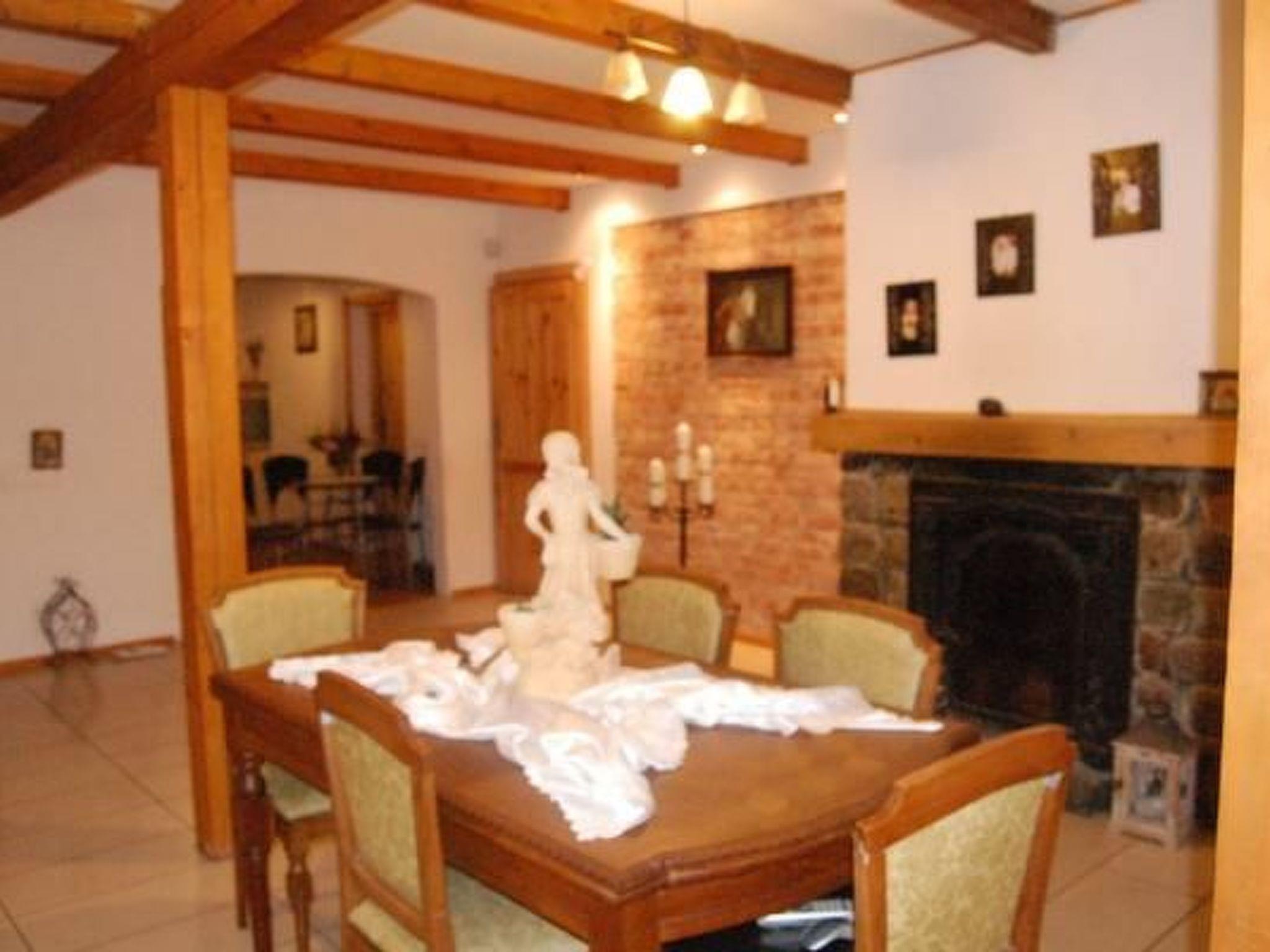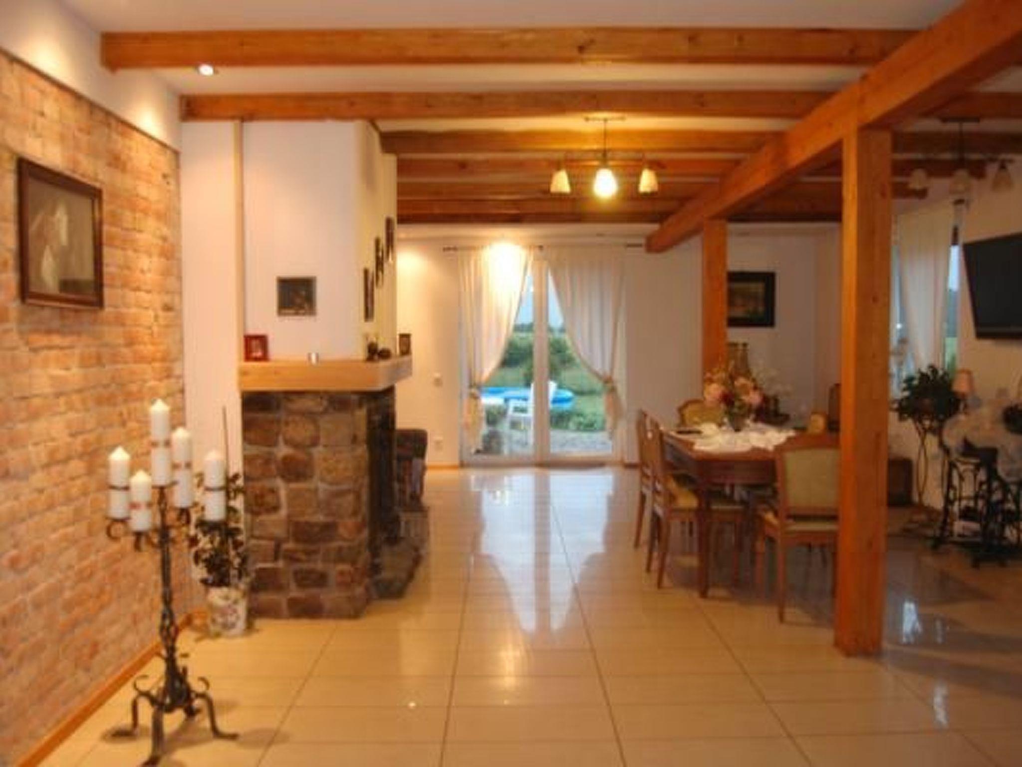 We are pleased to invite you to our house "Z dusza".The house has a wonderful location in the municipality of Gniewino. It is located in the Middle Pomerania between two lakes and the sea, a short distance from large cities such as Gdansk, Gdynia, Sopot, Wejherowo, Slupsk, Leba, Bialogóra, Debki.It is an ideal place in the countryside for those seeking peace and quiet, and at the same time with plenty of tourist attractions nearby, e.g. balloon flights, canoeing, mini zoo, mini golf, dino park, bowling, swimming pools, spa, observation tower, horse riding, cruises, sailing, fishing, open-air museums, aqua park.Bychowo is a small, quiet village near the seaside resorts, among lakes, fields and forests. This tourist region offers many attractions for families, roads and streets without traffic jams and easy access to the sights. In our facility you will spend your holidays in peace and quiet by the pool and the beautiful garden where you can enjoy the benefits of nature.The garden is equipped with garden furniture, a gazebo with barbecue, a fireplace, a sandpit for children(on request).And if you feel like it, you will be at the beach in 10 minutes by car without annoying traffic jams.In the village there is a manor house with a restaurant operating seasonally. Other restaurants and larger shops are about 4km and 6km away. The owner is always available by phone, he will help to organise a canoe or rent a boat, guide you to the most interesting sights of the region and suggest where to stock up on fresh fish for the barbecue.Comfortable house with an area of 250m2 and 1110m2 of large garden which can accommodate up to three families at the same time (4-13 people).The house is spacious and comfortable.The house has 5 bedrooms with bathrooms ( a total of 2 bathrooms on the ground floor and 2 on the ground floor) , living room with fireplace , spacious kitchen.The rooms are located on two levels.GROUND FLOOR:Bedroom 1 : for 2 people with access to the garden (terrace), with double bed with bathroomBedroom2 : for 2 people sofa bed, chest of drawers, armchair, bathroomLounge : 60m2 with access to the garden (terrace) , fireplace (wood for the fireplace for a fee), TV , sofa and relaxation armchairs , folding table with chairs , chest of drawersKitchen fully equipped: induction cooker, oven, dishwasher, microwave, food processor, coffee maker, can opener , knives, forks, dishes, plates, glasses, etc.BEDROOM 1: spacious bedroom for 3 people with en-suite bathroom, double bed and single bed, chest of drawers, table, chairs, bedside tables, access to the upper terraceBEDROOM 2: spacious bedroom for 2 adults and 2 children, on the first level there is a double bed, chest of drawers, tables and access to the upper terrace.On the second level there is a mezzanine with a double bed, a chest of drawers and an armchair. Bedroom 2 and 3 share a spacious bathroom with separate entrances from each room. There is also a garden with two terraces, a barbecue, garden furniture, a pool in the garden, a sandpit (on request) and a fireplace. There are parking spaces on the premises.The property is fenced and safe for children.We invite you to enjoy a well-deserved rest while enjoying an active holiday.We accept pets, but the guest is obliged to take the animal outside the property for physiological needs. This rule is strictly adhered to in order to take care of the plants in the garden as well as future guests.The owner lives in the other part of the house with a fenced garden .In winter we charge for the heating, wood for the fireplace and a surcharge for the bonfire.The house is best suited for 10-11 people in comfort, the maximum number of sleeping places without extra beds is 13 .During Christmas and New Year's Eve the house cannot be rented out to young people (age over 35 required).