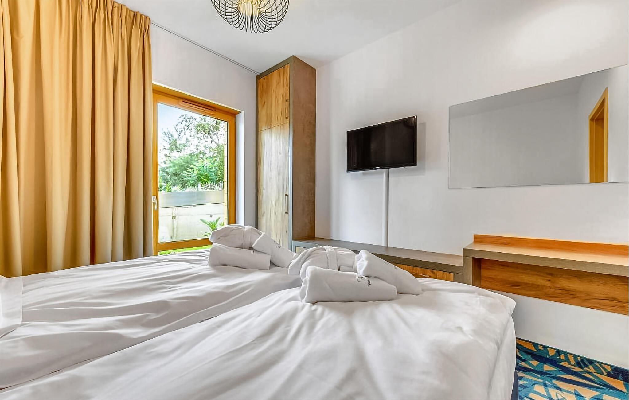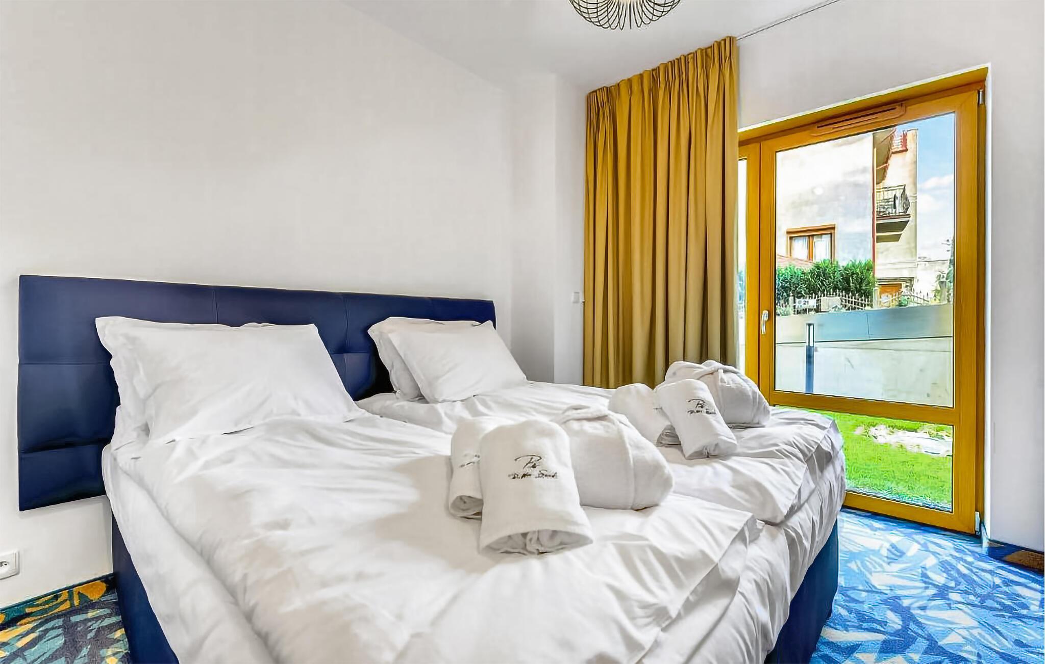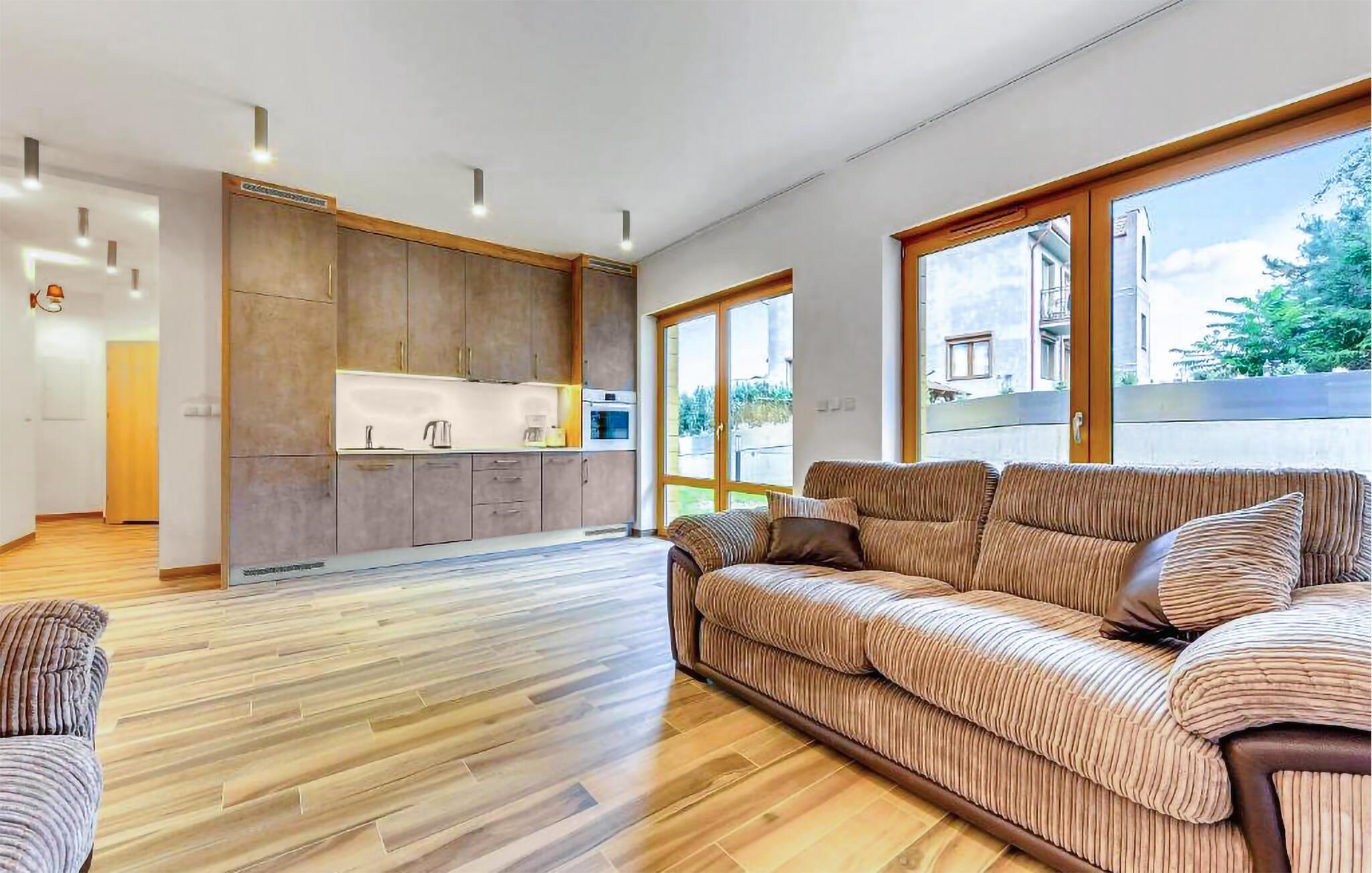 Den lange halvø Hel rager godt ud i Gdansk-bugten, og her finder I denne luftige og komfortable lejlighed, hvor I får alt, I behøver til en fremragende ferie. Tag færgen, toget eller bilen hertil fra Gdynia og glæd jer til indretning, der fremtræder lyst og lækkert med moderne faciliteter og et lækkert lysindfald gennem de store vinduespartier. Om aftenen kan I svede igennem i saunaen og smække fødderne op i sofaen med snacks og en god film på tv'et. Fra stuen er der adgang til terrassen og jeres private have, hvor I sammen kan nyde de lange, lune sommeraftener med god mad og et glas vin.