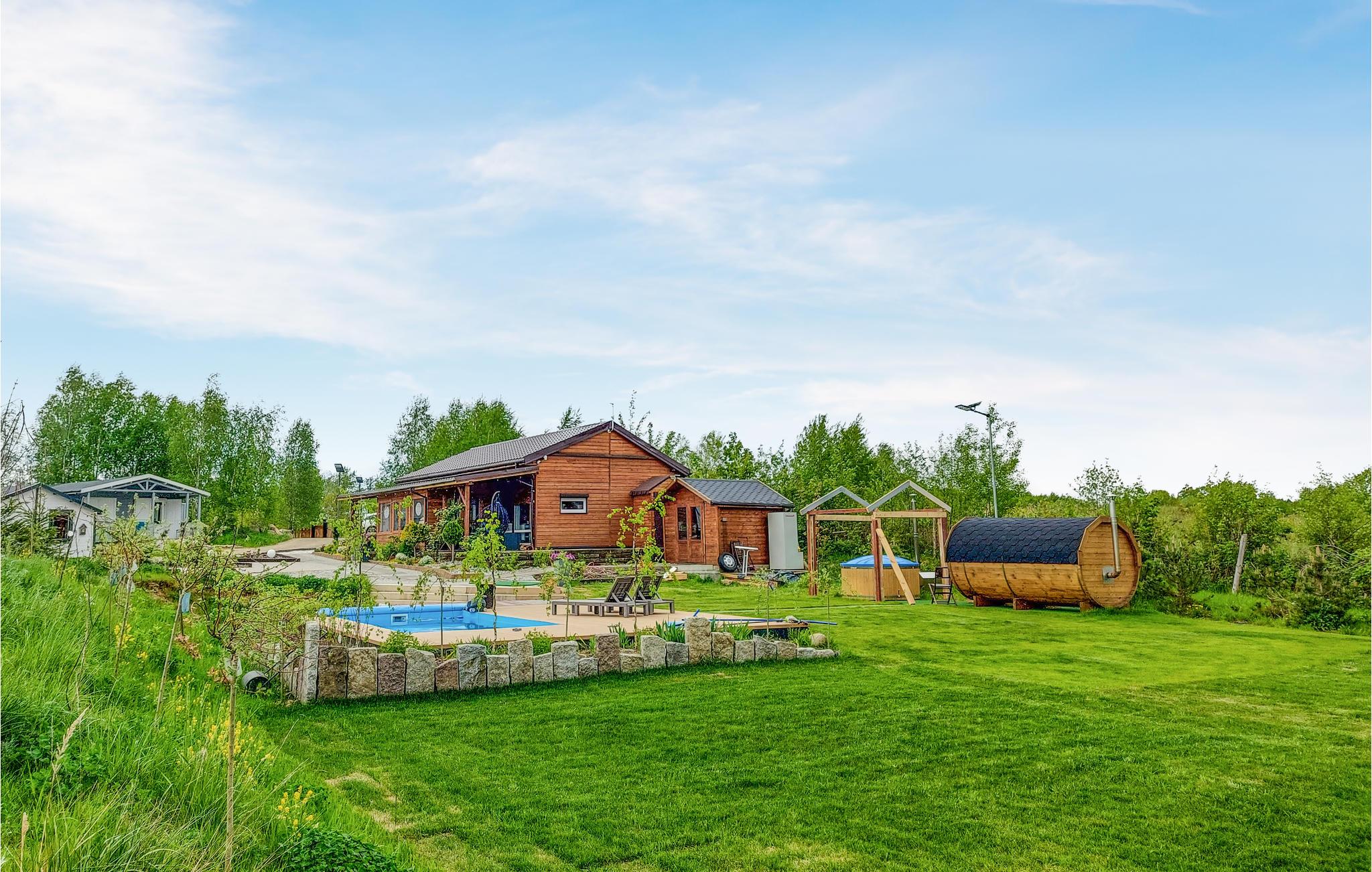 Hvis afslapning og velvære er vigtigt for jer, er dette feriehus med pool og robåd ved den maleriske Insko-sø perfekt til jer. Huset tilbyder masser af plads og plads til familier. Nyd en afslappet tid ved poolen. I kan tilberede jeres yndlingsmåltider på murstensgrillen, som I derefter kan nyde på en af ??terrasserne. Føl jer hjemme i rekreationskomplekset omgivet af grønne områder ved Inskie-søen, væk fra andre faciliteter, der tilbyder ægte fred og ro. Det hele er placeret på en kæmpe grund.