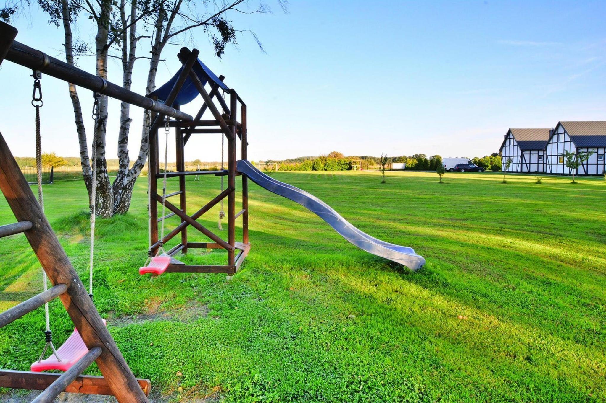 Et rekreativt kompleks i udkanten af den attraktive badeby Jaroslawiec. Resortet ligger cirka 15 minutters gang fra stranden. Du kan også bekvemt komme dertil på cykel (fås i centret). Byens centrum ligger kun få skridt væk. Et komfortabelt to-etagers hus med overdækket terrasse og havemøbler. Der er grillfaciliteter til rådighed. I stueetagen er der en stue med pejs, et bord og en sovesofa. Dette værelse er forbundet med køkkenet. Der er også et badeværelse med bruser i stueetagen. Der er 2 separate soveværelser ovenpå. Trådløst internet er tilgængeligt. Centret har havepavillon, volleyballbane og cykeludlejning. Der er hængekøjer mellem træerne. De yngste vil nyde legepladsen. Der er også et opholdsrum med en videospilkonsol. Der er sikker parkering. Prisen for opholdet inkluderer: sengelinned, vandforbrug, ophold med hund (max 1), internet, parkering, slutrengøring, barneseng og høj stol (forudgående reservation nødvendig). Jaroslawiec er et roligt sommerferiested på den centrale kyst, tæt på Darlowo og Ustka. Vidunderligt klima og landskaber, fyrreskove, rent havvand, klippe ved havet - det er fordelene ved Jaroslawiec. Der er også mange attraktioner, der venter på feriegæster, som vil diversificere deres afslapning ved havet. Jaroslawiec tilbyder også en rig gastronomisk base. Stranden i Jaroslawiec er ideel for turister, der kan lide at solbade på uoverfyldte steder. På stranden kan du se farverige fiskerbåde og finde gyldent rav. En af Jaroslawiecs største attraktioner er det lokale Tropicana-vandland (2 km fra resortet), der tilbyder indendørs og udendørs swimmingpools, jacuzzi, saunaer samt komplette wellness- og SPA-faciliteter. Et interessant monument i Jaroslawiec er fyrtårnet. Altanen, fra en højde på 33 meter, har udsigt over havet og to store kystsøer.
