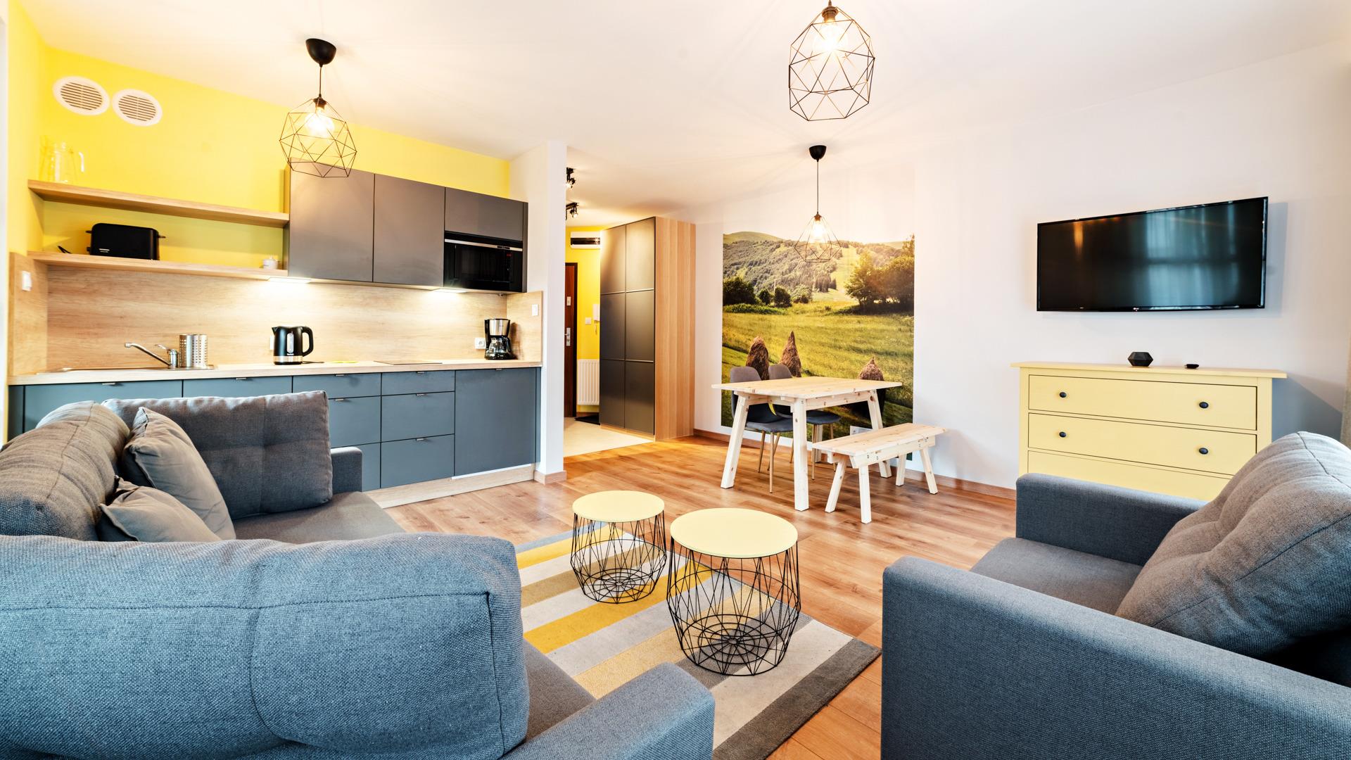 Hunde sind in ausgewählten Apartments willkommen. Der Aufpreis für die Unterbringung eines Haustieres beträgt 100 PLN (einmalige Gebühr). Gäste, die mit einem Hund übernachten möchten, werden gebeten, sich vorab telefonisch an die Mitarbeiter des örtlichen Büros in Karpacz zu wenden (die Telefonnummer finden Sie auf unserer Website im Reiter KONTAKT). Die Einrichtung bietet einen Internetzugang.