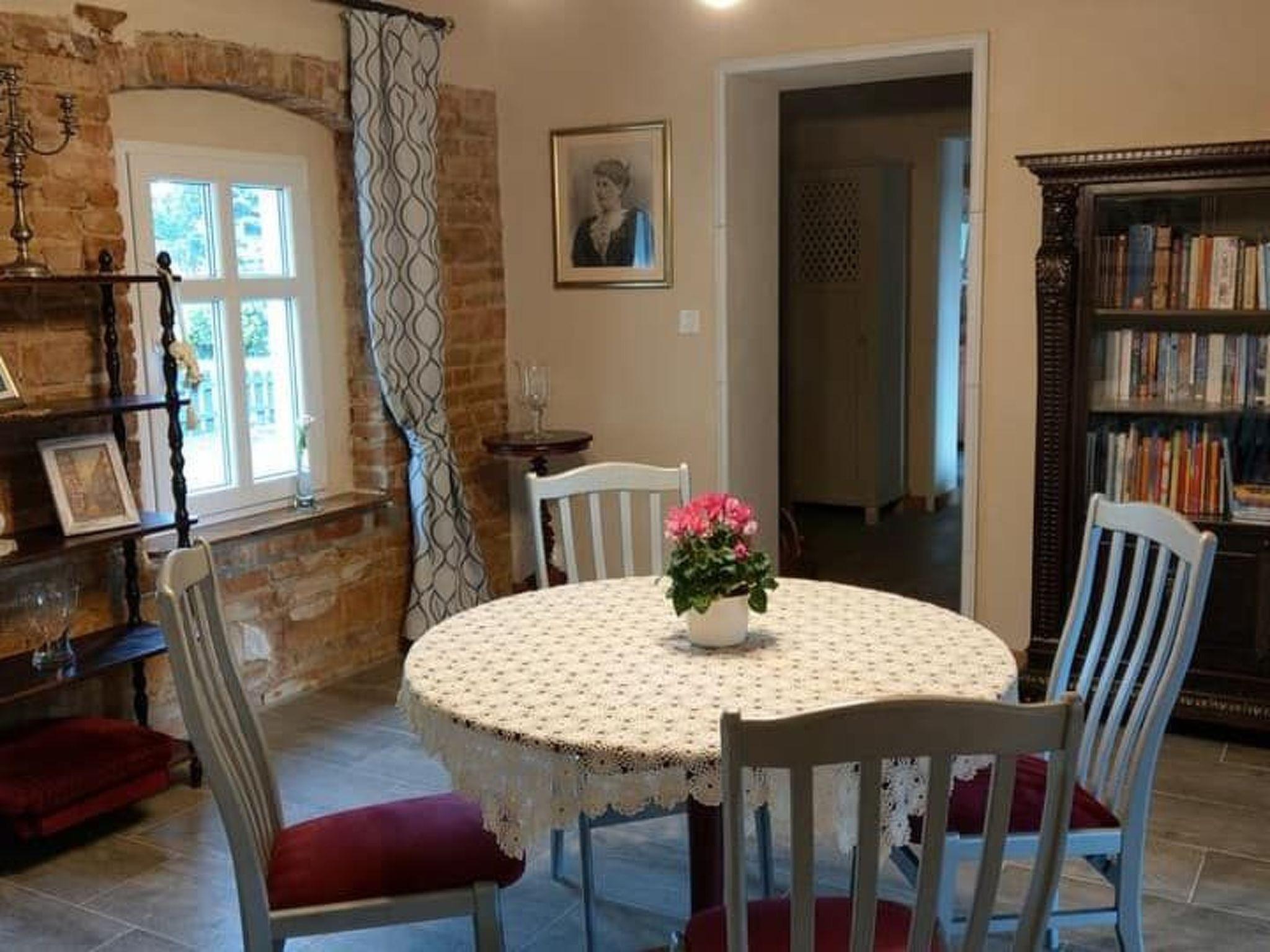 Choose Przystanek Bajka in Dabrówka Koscielna You won't spend a fortune to reach us, but you will end up in a magical place in the heart of Puszcza Zielonka where you will really relax You will feel the comfort of a large, stylish house just for you at prices from a year ago . Taste the local cheese and beer. You will eat the most delicious doughnuts in our galaxy, discover the mysterious backwoods, monastery larches, meet fallow deer and hares by bike or on walks. You will bathe in a forest lake, sunbathe in the rays of the Wielkopolska sun. You will visit Poznan, Gniezno, wooden churches on the trail around Zielonka Forest, Mieszko I's castle on Lednica, a 19th-century village on Lednickie Lake, an ice island on the water, an arboretum in the middle of the forest, a look at the tree tops from the viewing tower on Dziewicza Góra. You can also go golfing in Trzaskowo. And all this is right next to the Strboretum sanctuary with its miraculous painting. With the kids you can go to the Valley Ranch to feed the animals and have a delicious lunch. And if you're a thrill-seeker, you can shoot on the shooting range and go for a spin on the mechanical horses on the off-road track. If the weather's nice, you can play tag or boules, have a barbecue, light a bonfire in the evening or, if the weather's not so good, hole up indoors, play board games or cards, read fairy tales and light up the fireplace. You can also indulge in a bit of sweet naughtiness - what more could you want?