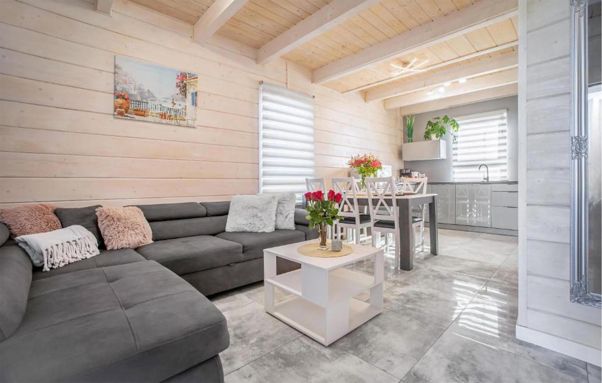 Kun en kort gåtur fra den maleriske Koprowo-sø og tæt på Østersøkysten tilbyder dette feriehus det ideelle tilflugtssted for jeres familie. Lad jer fortrylle af den idylliske beliggenhed og den uberørte natur. Start dagen med en lækker morgenmad ved spisebordet, der ligger ved siden af det moderne, åbne køkken. På sofaen er der masser af plads til afslapning for hele familien.