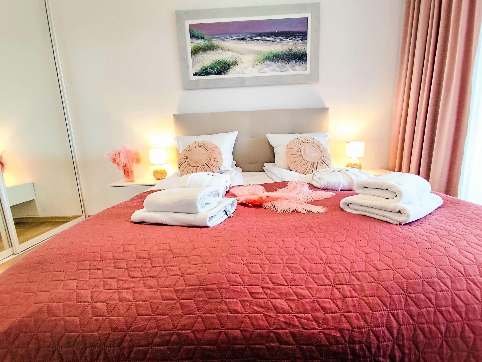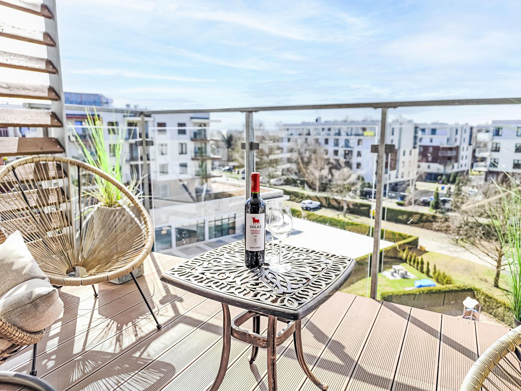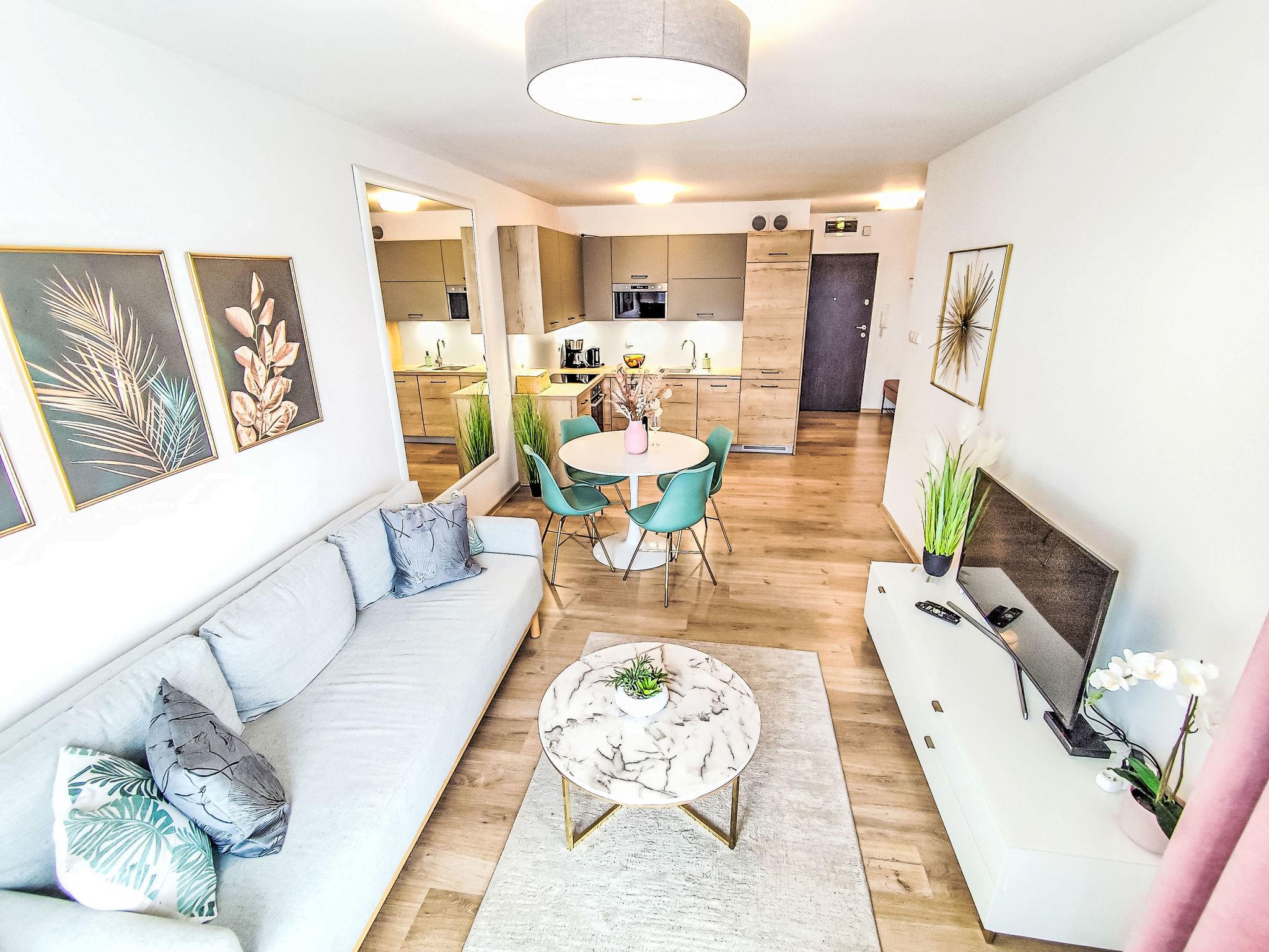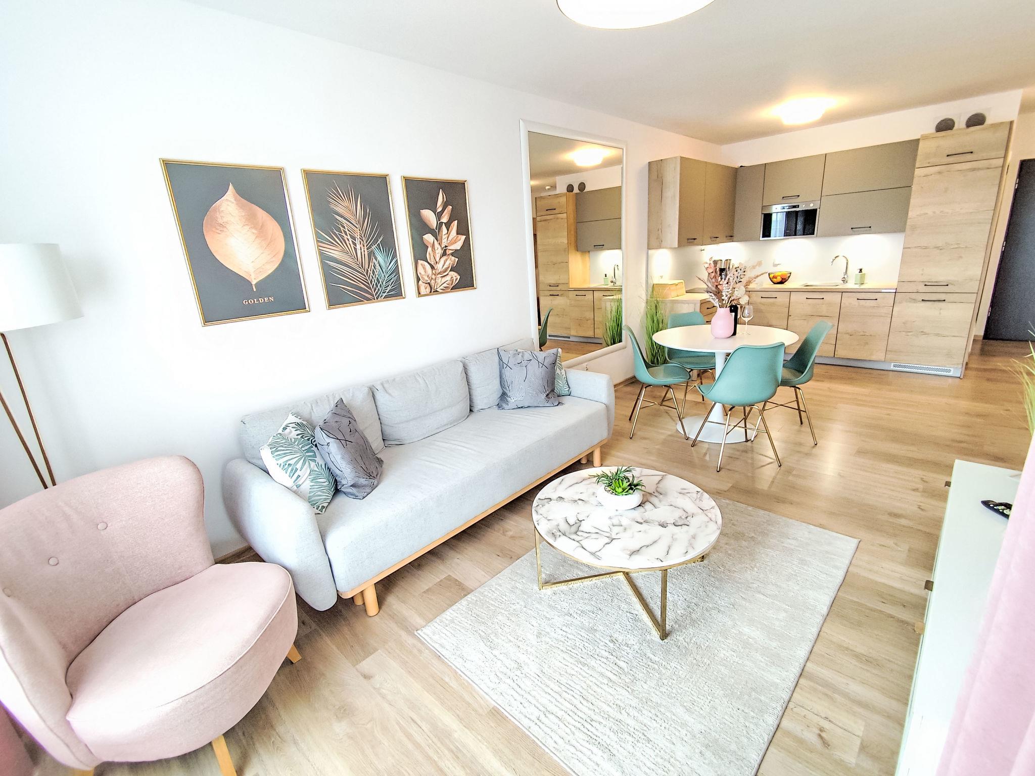 Modern, comfortable apartment block "Szum Morza", built in 2017. On the outskirts, in a quiet, sunny position, 350 m from the sea, in the countryside. For shared use: indoor pool heated (6 x 17 m, pool opening hours: 09:00-21:00). Shower/WC in the pool area, children's pool, hot tub, children's playground. In the house: sauna, fitness room, playroom, lift, central heating system, burglar alarm system. Parking at the house on the premises, public parking on the road. Shop 1.3 km, grocery 850 m, supermarket, restaurant 300 m, bus stop 1.1 km, railway station 2.5 km, sandy beach 350 m. Sports harbour 3 km. Nearby attractions: Oceanarium 3 km, Molo 3 km, Park Dziki Zachód Zieleniewo 7 km. Guarded residence.