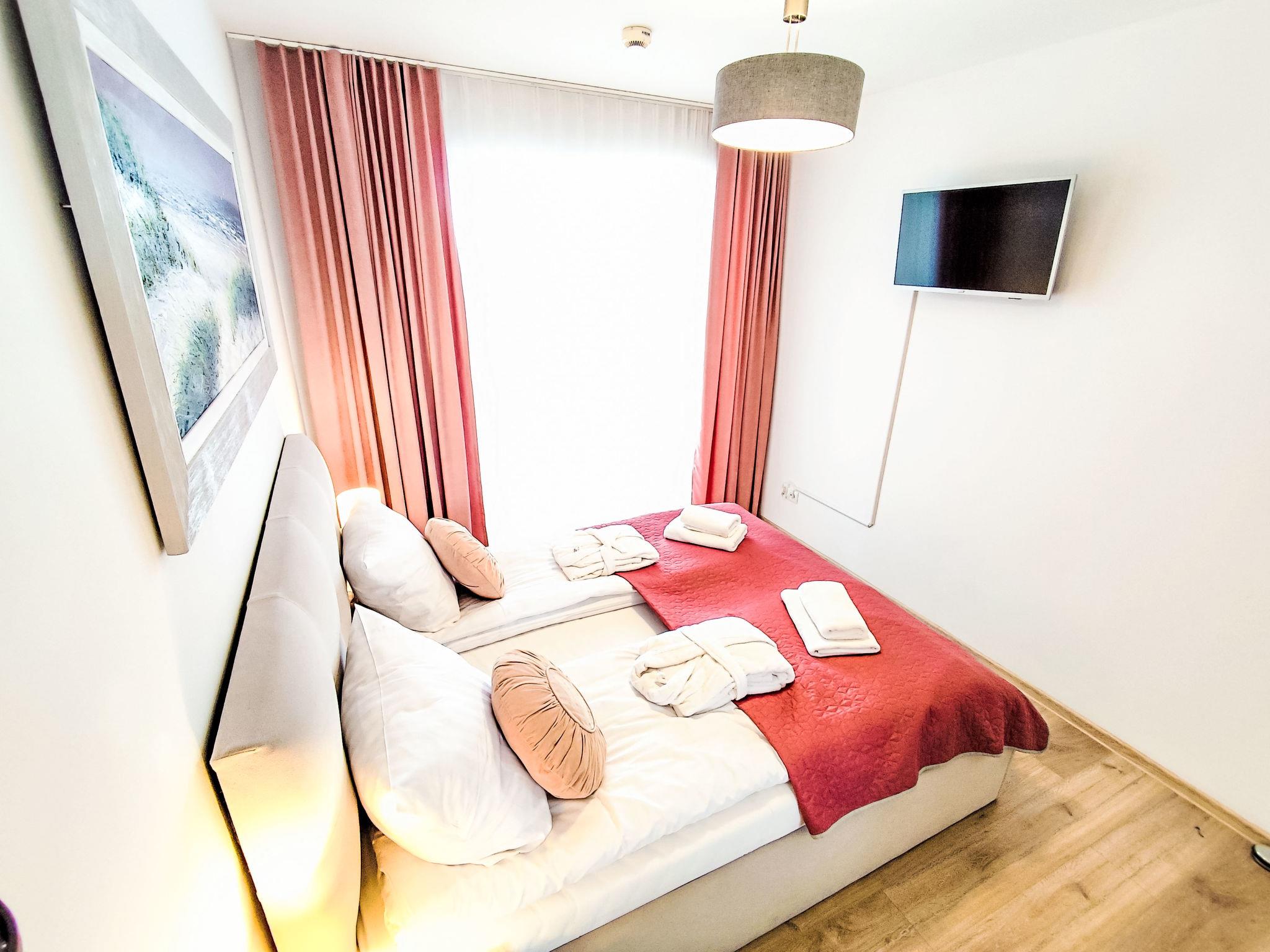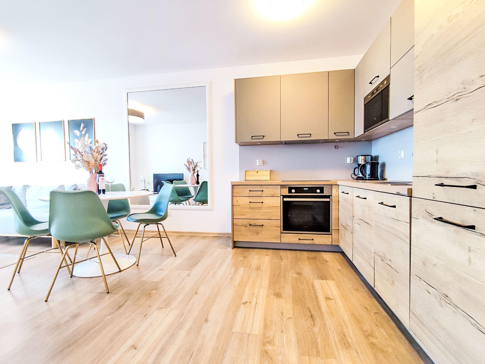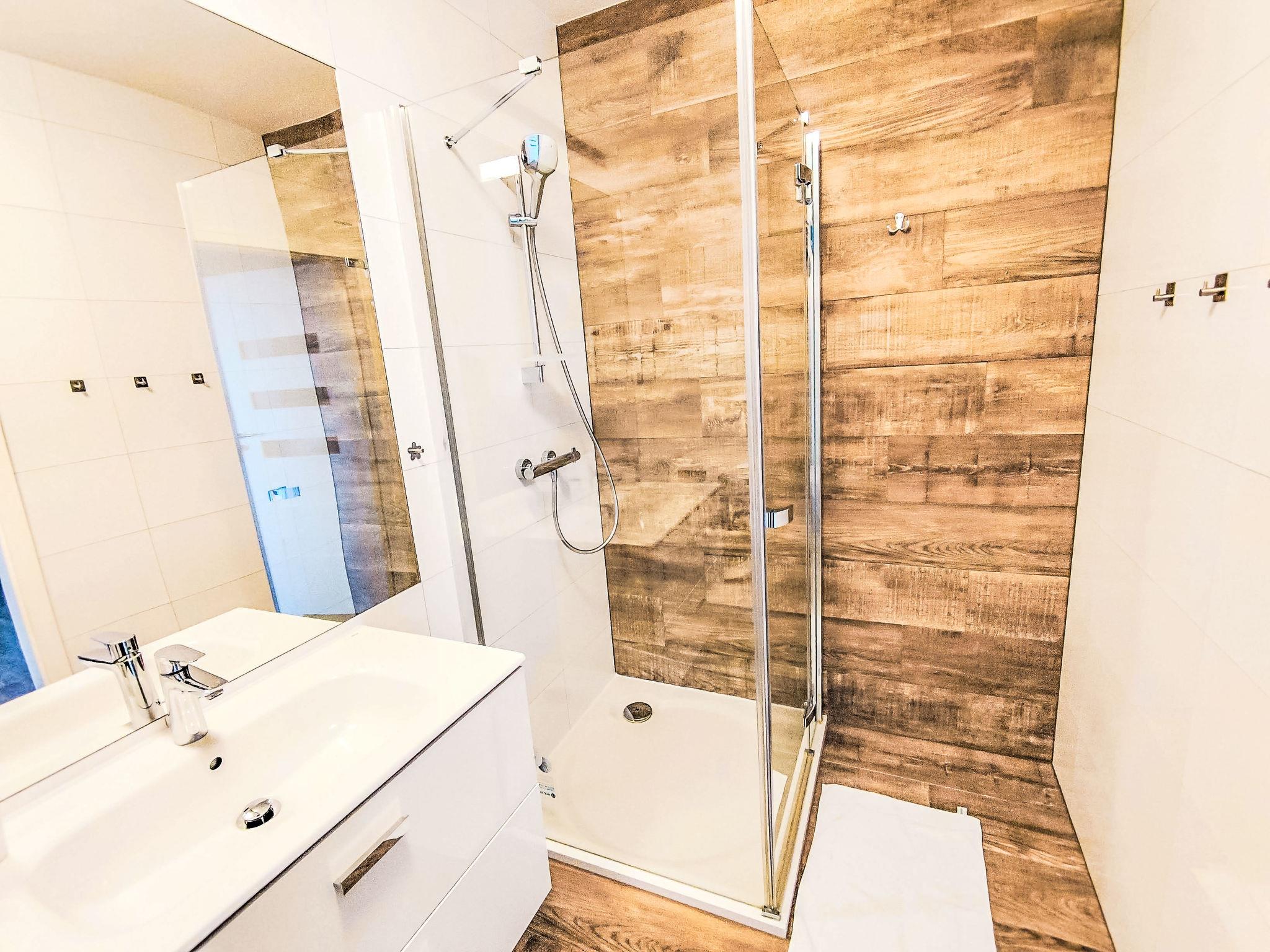"B 406", 2-room apartment 55 m2. Living/dining room with 1 sofabed, satellite TV and radio. Exit to the balcony. 1 room with 1 double bed. Open kitchen (dishwasher, 4 ceramic glass hob hotplates, microwave, freezer) with dining table. Shower/WC. Balcony. Balcony furniture, deck chairs. Facilities: washing machine, iron, hair dryer. Internet (WiFi). Garage. Please note: maximum 1 pet/ dog allowed. Smoke alarm.