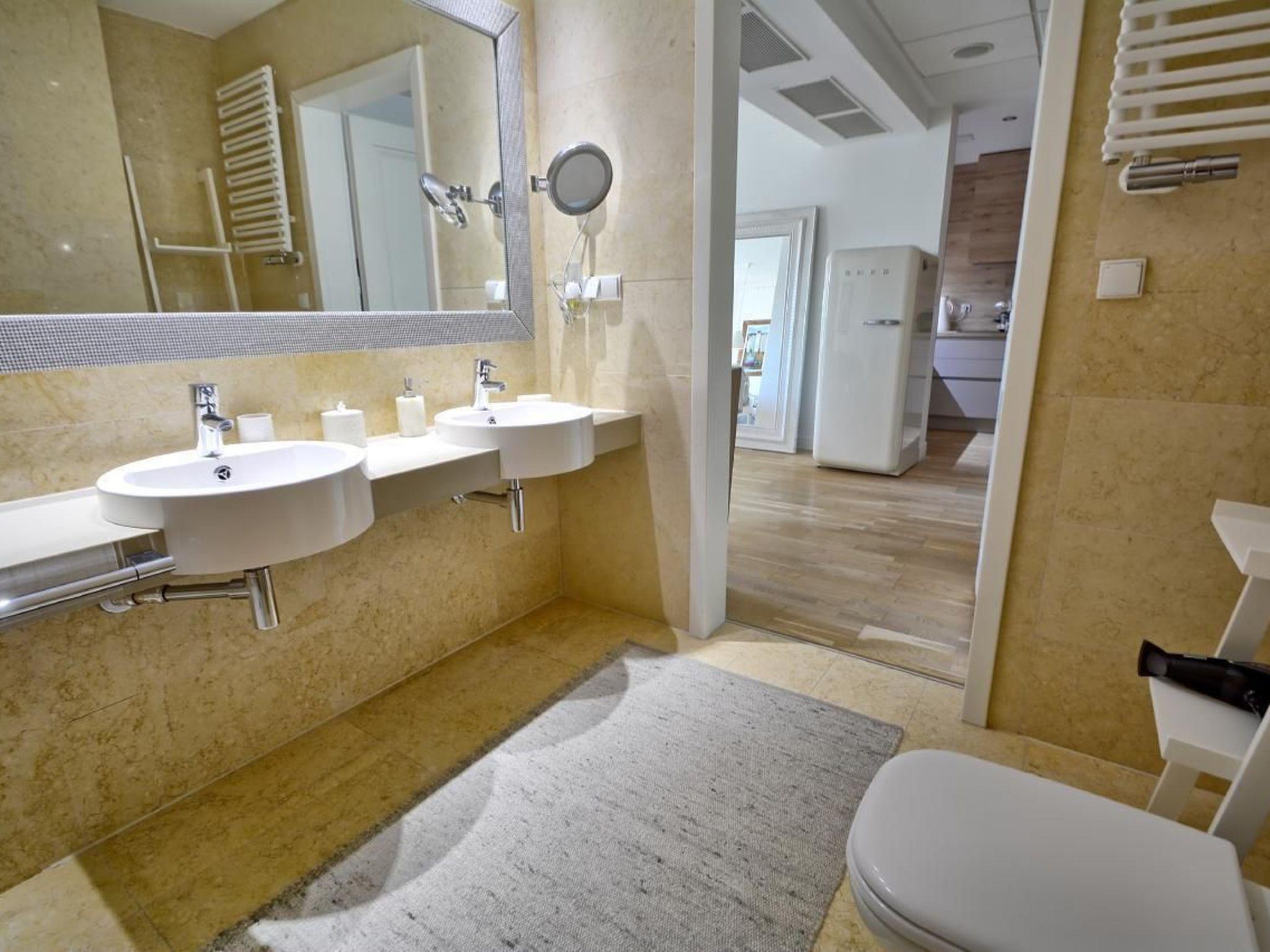 - Bathroom, in which there is a large shower cubicle without thresholds, 2 washbasins, large mirror, WC, hairdryer, cotton towels;