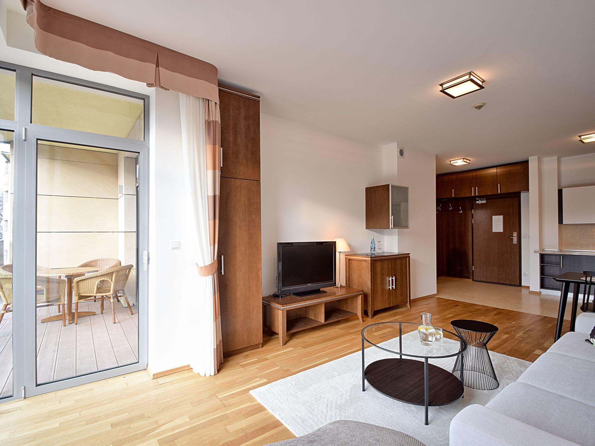 Our cosy, private, air-conditioned flat is located in the DIUNE Hotel***** & Resort complex. The main advantage of this facility is its location. The complex is located in the spa part of the city, in a zone closed to car traffic, directly in the Seaside Park