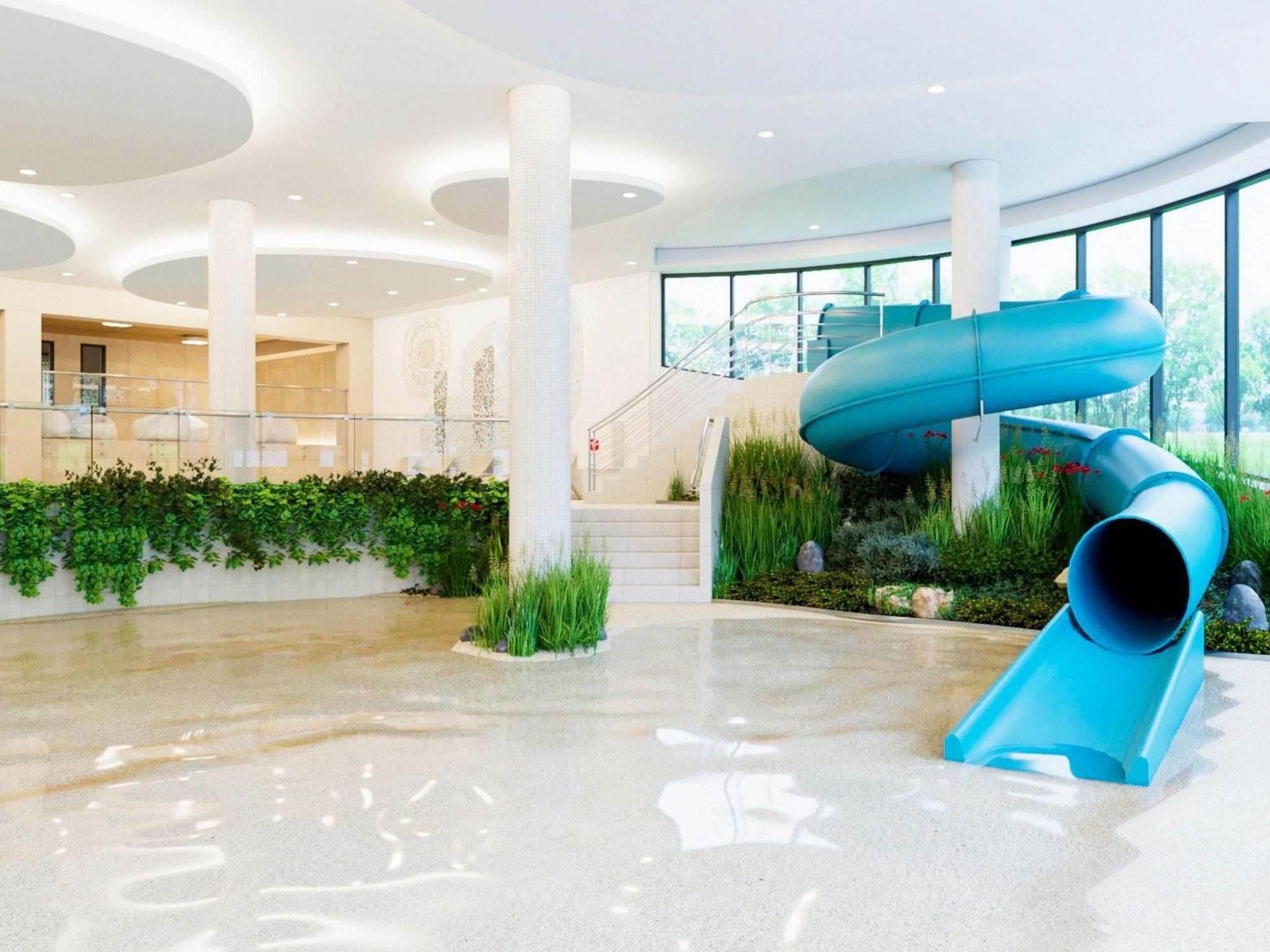 The Polanki Aqua complex offers a wide range of outdoor activities: from the swimming pool area with a separate sports pool, to the relaxation area with jacuzzi and water massages, to the water playground for children. There is also a fitness area, a playroom, a playground and an outdoor relaxation area designed for active relaxation and spontaneous play, all while respecting the peace and quiet of other guests.