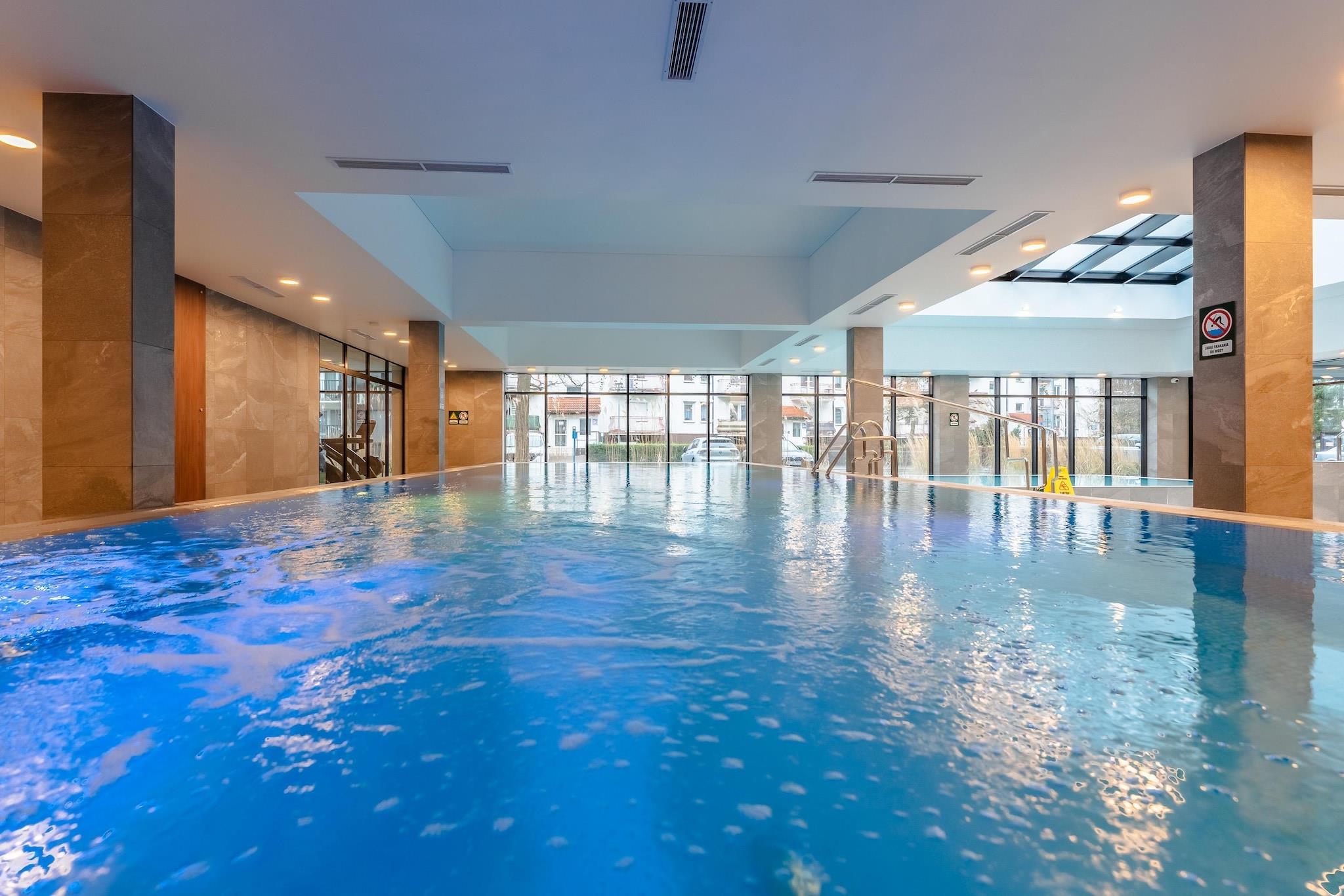 Et moderne lejlighedskompleks med et SPA-center, beliggende i udkanten af resortet, i et roligt miljø i en naturpark. Ca. 750 m til havet, hvor der også er en cykelsti. Der er en restaurant på stedet og en butik med basisprodukter i nærheden. Cirka 5 km til centrum af Kolobrzeg. Luksuriøs ferielejlighed på femte sal (der er elevator). Det består af en stue (dobbelt fold-ud sofa, bord med stole, TV), et soveværelse med en komfortabel dobbeltseng, et køkken og et badeværelse med bruser. Lejligheden har altan. Der er aircondition med varme- og kølefunktioner. Trådløst internet er tilgængeligt. Gæster i lejligheden kan bruge hotelkompleksets infrastruktur gratis uden nogen begrænsninger: indendørs swimmingpools, boblebade, saunaer, fitnesscenter, legerum til børn. Parkering er tilgængelig på stedet (mod et ekstra gebyr). Der er også en restaurant i bygningen, der serverer fremragende måltider. Prisen for opholdet inkluderer: sengelinned, håndklæder, el- og vandforbrug, slutrengøring, aircondition, internet, brug af swimmingpool, sauna, spabad, fitnessrum og legerum. Lejligheden er beliggende i den østlige udkant af Kolobrzeg, på et sted, hvor stranden ikke er overfyldt selv i sommersæsonen. Du kan komme dertil via en bekvem vandre- og cykelsti. Kurstedet Kolobrzegs største attraktion er uden tvivl den brede sandstrand ved havet. Derudover er der mange vandreruter i badeparken, langs strandpromenaden, på den historiske mole og i den gamle bydel. I centrum af feriestedet er det værd at besøge det lokale fyrtårn, oceanariet, havnen og katedralen. Den internationale cykelrute R-10 løber gennem resortet, som giver dig mulighed for nemt og behageligt at udforske de nærliggende byer på cykel: Grzybowo, Dzwirzyno, Sianozety, Ustronie Morskie.
