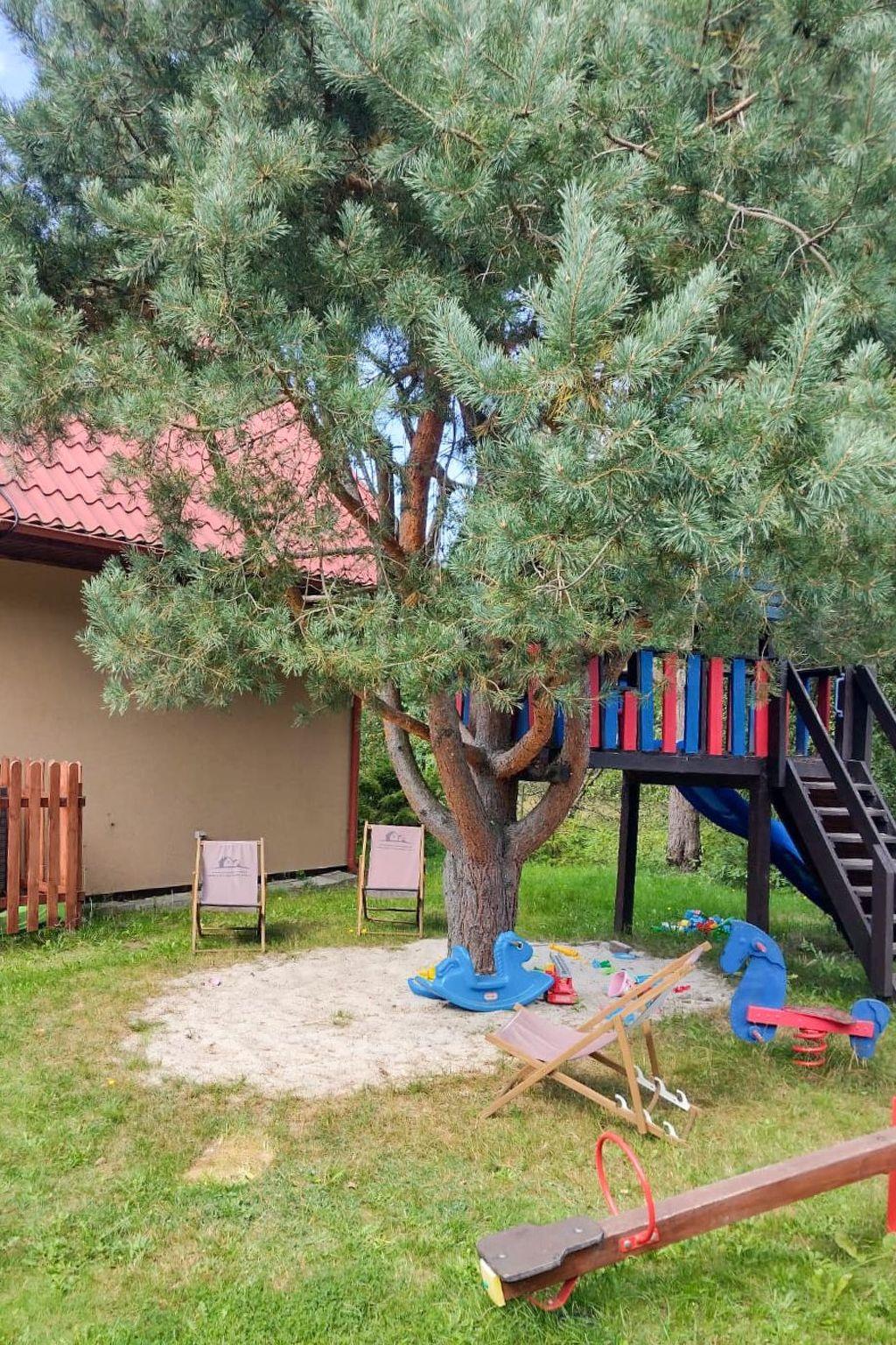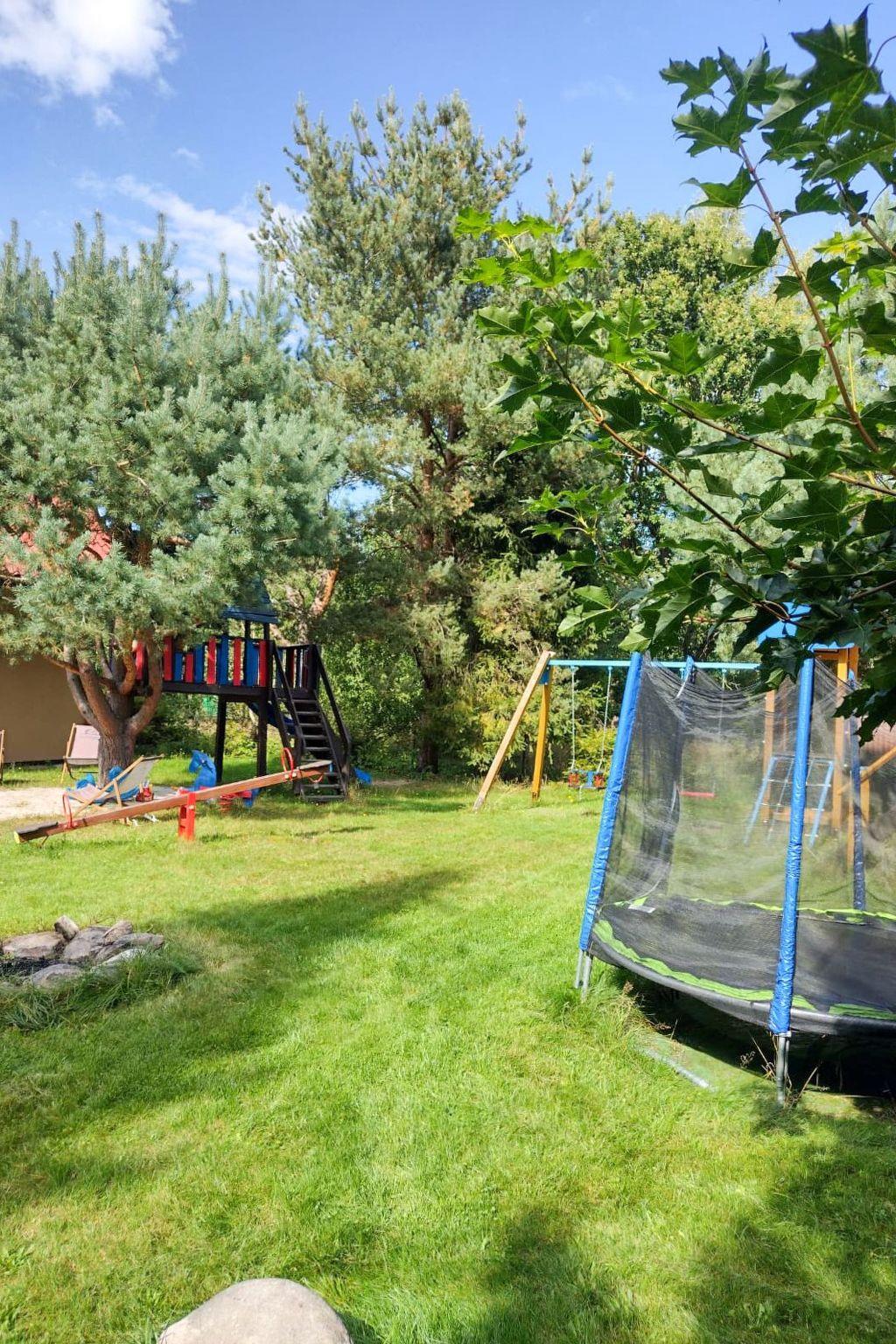 There is a lot of greenery, in front of the terrace there is a concrete barbecue and a hammock, and behind the house there is a playground for the little ones - a trampoline, swings, a sandpit and a tree house and a place for a bonfire.