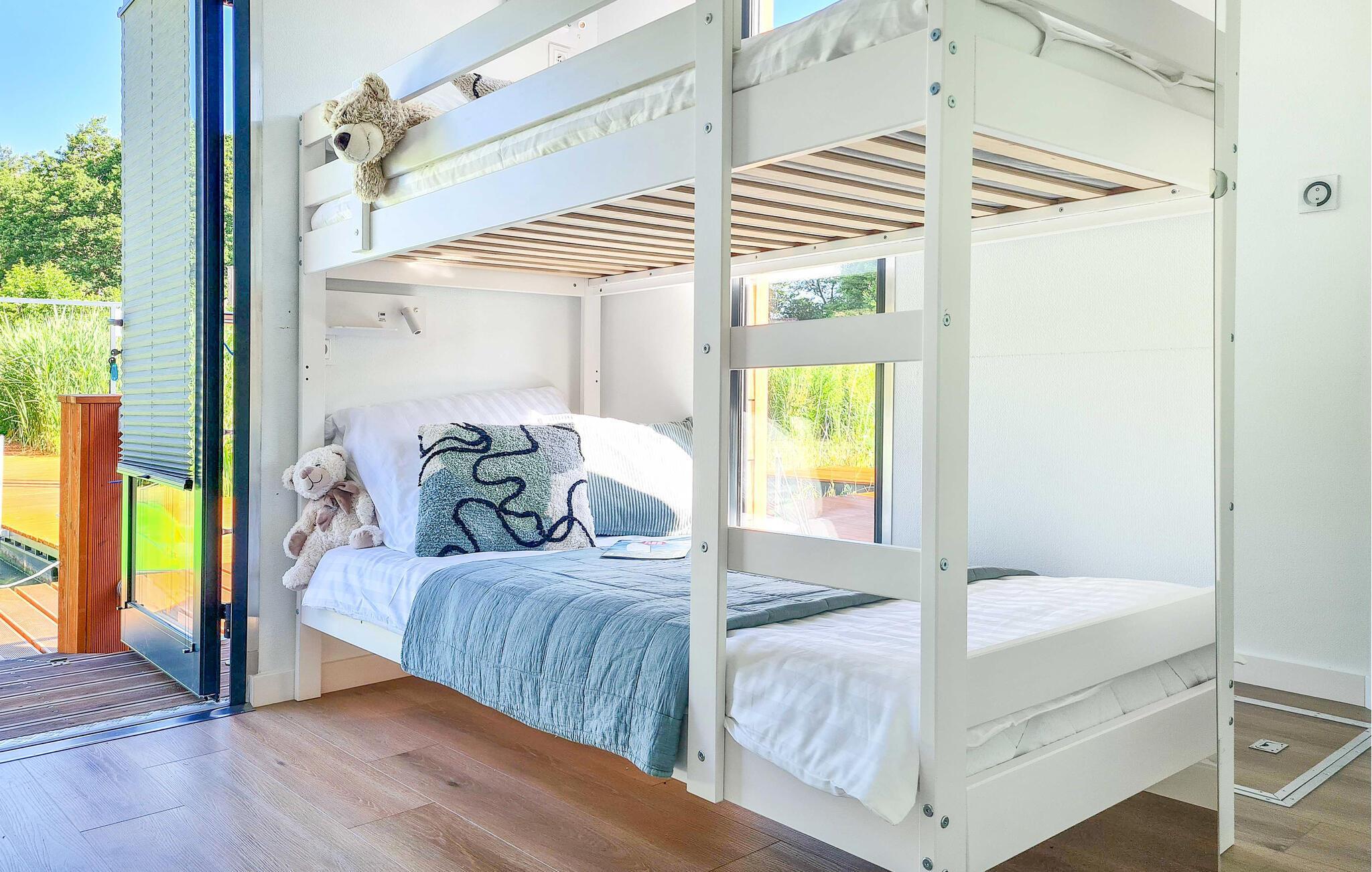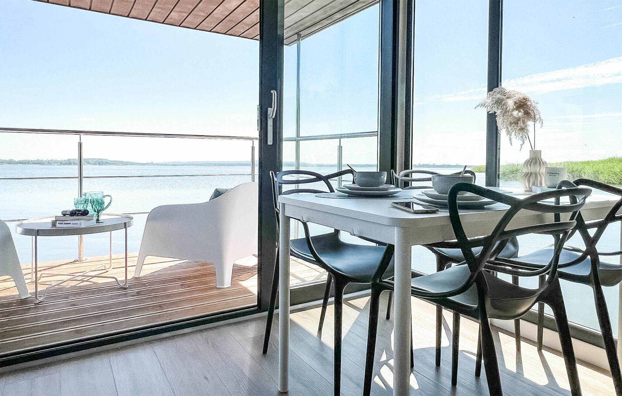 Denne flot designede båd er børnevenlig og særligt velegnet for jer, der søger en ekstraordinær bolig på jeres ferie. Beliggenheden er helt fremragende lige ved søbredden, og husbåden indbyder til mange afslappende timer med friske dyp og klassisk feriehygge. Båden fremstår yderst elegant med store vinduespartier, der giver et vidunderligt lysindfald og en dejlig udsigt fra stuen over vandet. Start dagen ud med en lækker morgenmad på terrassen, inden I går på opdagelse på den store fælles grund, hvor der er mange aktiviteter for hele familien.