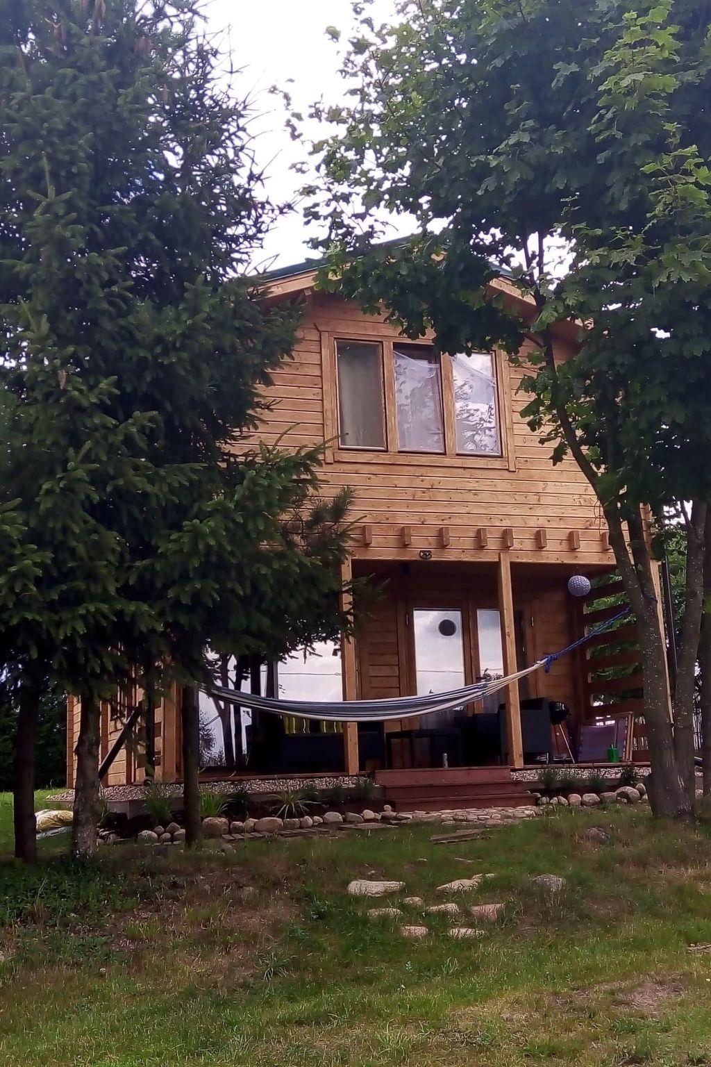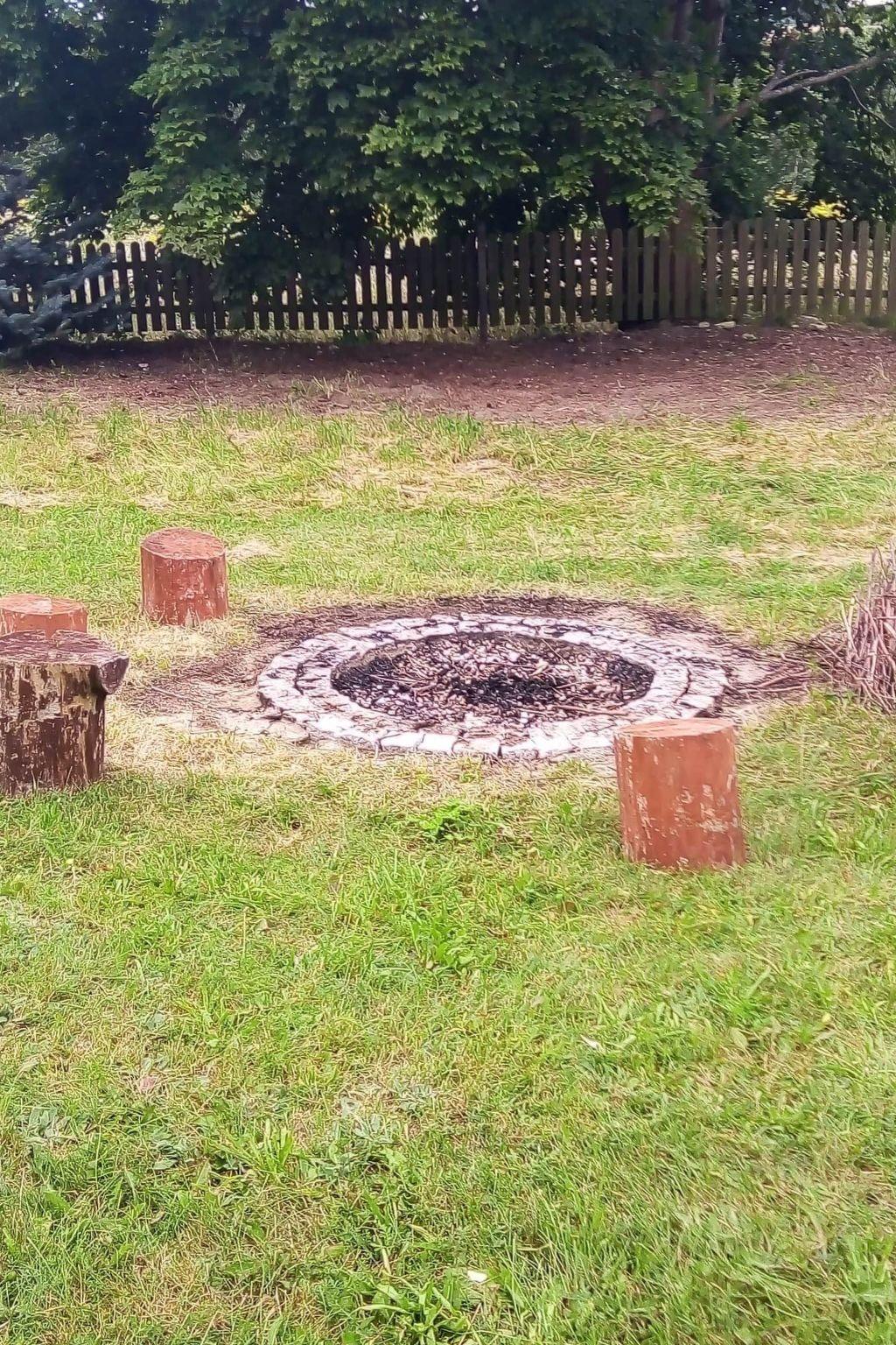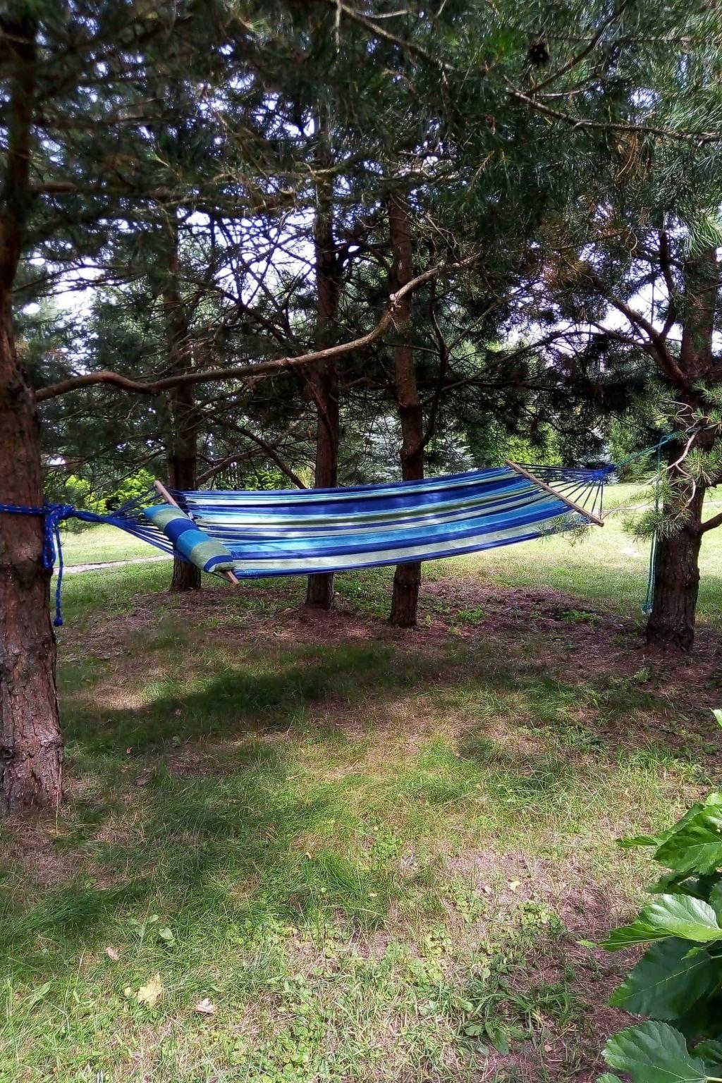 There is a large land area of 3000 metres, shared with the other house (the owner lives in the area). There is garden furniture, deckchairs, barbecue, 2 bicycles for adults and 1 for a child, hammock, garden rocking chair, trampoline, frame pool in summer. In the area there is a place and a net for handball or badmington, a place for a bonfire and a large supply of brushwood in the price. On cloudy days you can play darts and ping-pong, table football in the house. In addition, it is possible to hire a pedal boat or ice-boat approx. 400 m (extra fee). From the living room you have access to the terrace, which offers a view of the surroundings, a wide panorama of forests and fields. The terrace is located on the south side so it is sunny all day long. The house has its own solar panels for heating water and a second source of water heating in case of a lack of sunshine on cloudy days.