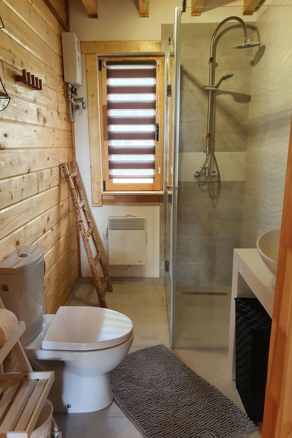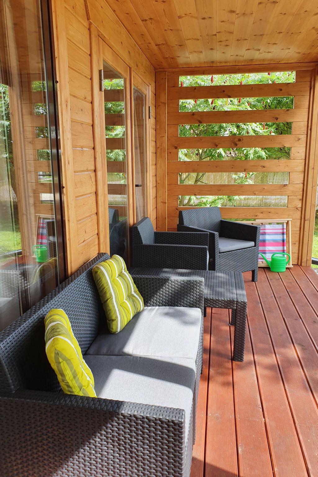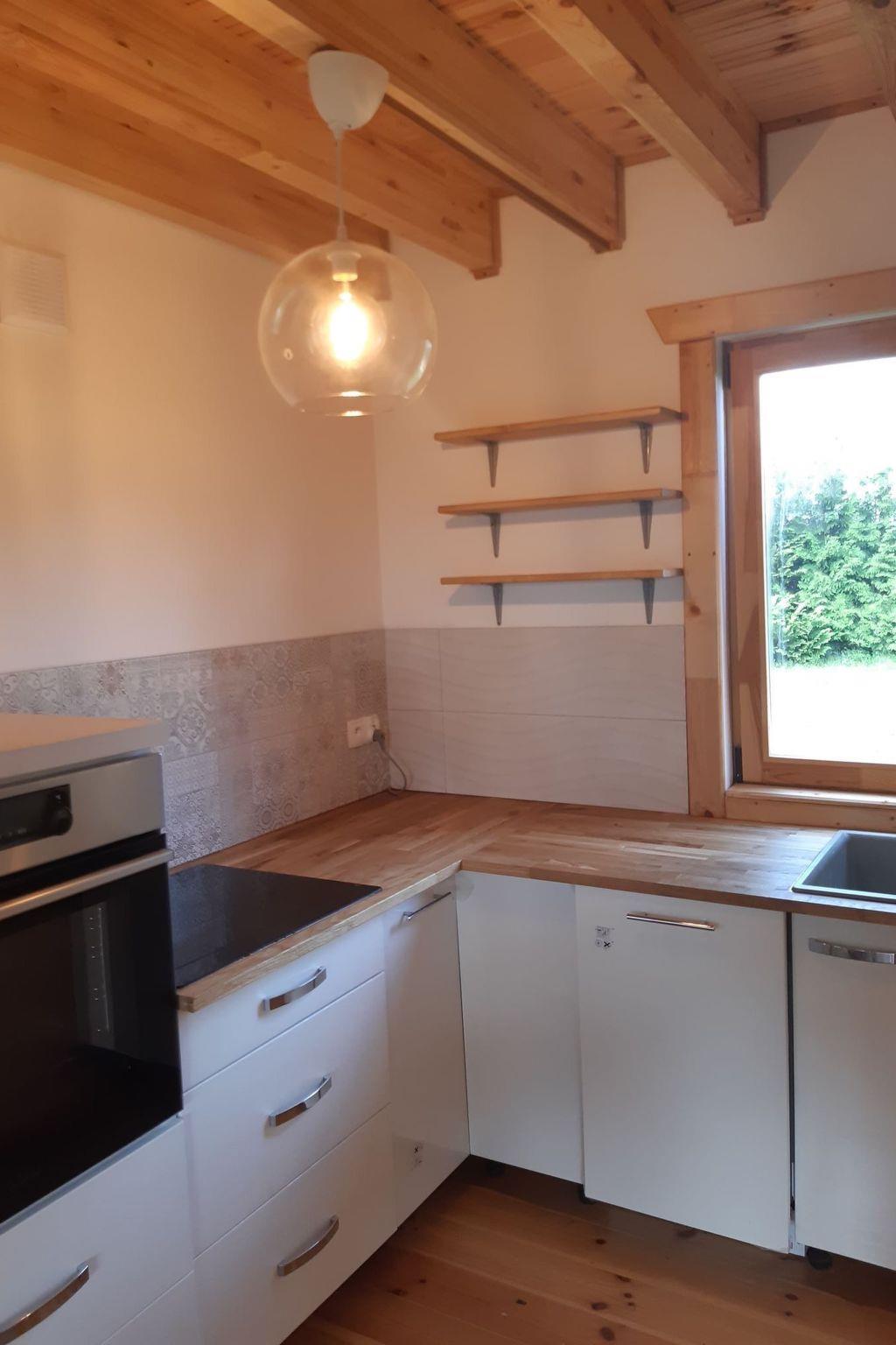 There is a large land area of 3000 metres, shared with the other house (the owner lives in the area). There is garden furniture, deckchairs, barbecue, 2 bicycles for adults and 1 for a child, hammock, garden rocking chair, trampoline, frame pool in summer. In the area there is a place and a net for handball or badmington, a place for a bonfire and a large supply of brushwood in the price. On cloudy days you can play darts and ping-pong, table football in the house. In addition, it is possible to hire a pedal boat or ice-boat approx. 400 m (extra fee). From the living room you have access to the terrace, which offers a view of the surroundings, a wide panorama of forests and fields. The terrace is located on the south side so it is sunny all day long. The house has its own solar panels for heating water and a second source of water heating in case of a lack of sunshine on cloudy days.