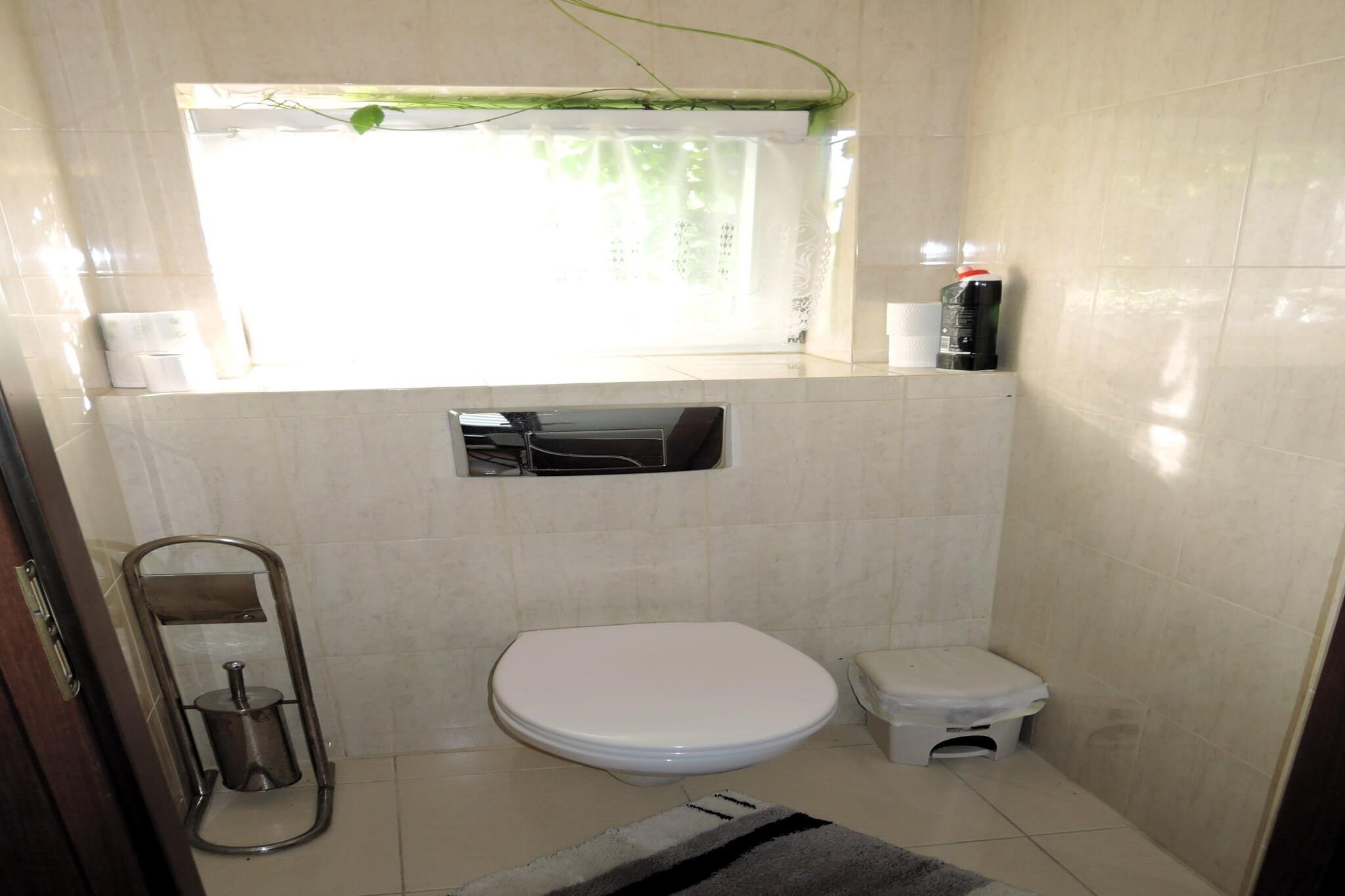 Stueetage: (åbent køkken(elkedel, cooker, komfur(Komfur med fire kogeplader, elektrisk), espressomaskine, køle-fryseskab), Stue/soveværelse(dobbeltsovesofa, Fjernsyn(Tyske TV-kanaler), spisebord), soveværelse(dobbeltseng, dobbeltsovesofa), badeværelse(bruser), toilet) terrasse, have(deles med andre gæster, indhegnet, anlagt have, 1000 m2), havemøbler, grill, parkering