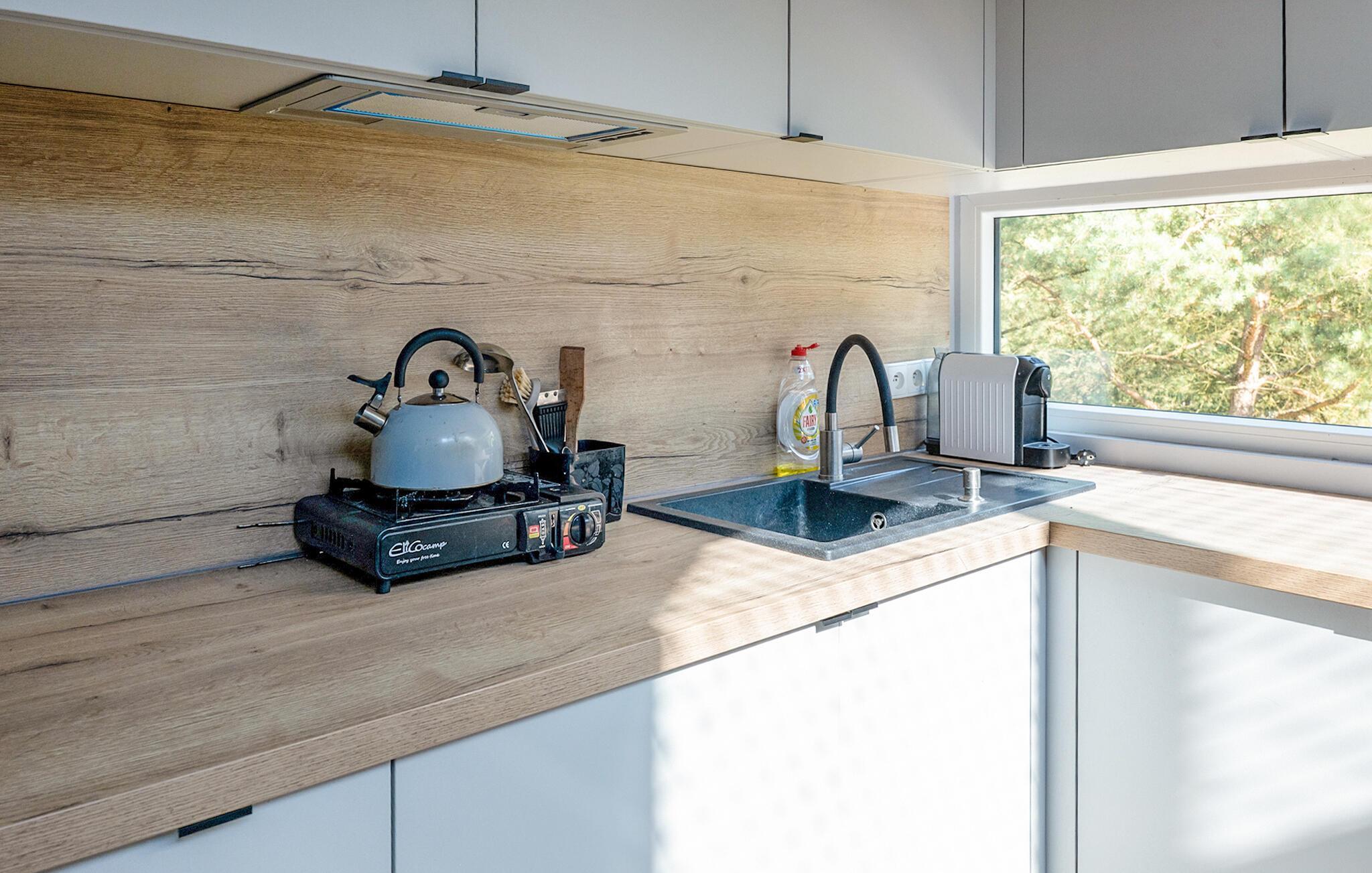 Velkommen til jeres komfortable og indbydende træhus, der venter jer få skridt fra søen og giver de ideelle rammer for en afslappende ferie tæt på naturen. Nyd en vidunderlig tid i de hyggelige og smagfuldt indrettede rum. Glæd jer til hyggelige aftener med fælles måltider, og slap af foran brændeovnen om aftenen. Flere sofaer indbyder til afslapning.
