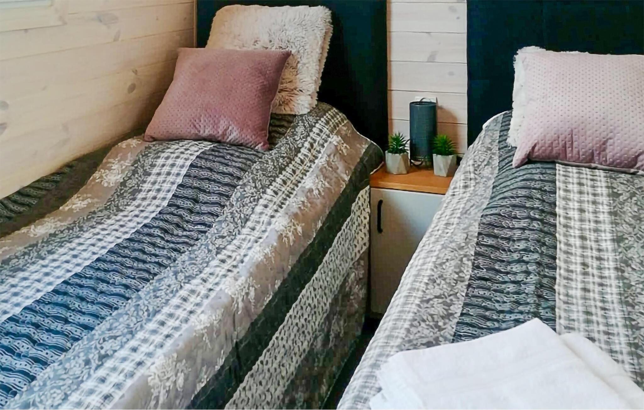 Nyd den unikke atmosfære i dette moderne tiny house med en rummelig terrasse og udsigt over Wicko Wielkie-søen. Den stilfulde indretning sikrer både komfort og hygge, og takket være den smarte rumopdeling udnyttes pladsen i den kompakte bolig optimalt. Et veludstyret tekøkken gør det nemt at tilberede lækre måltider, og den lille opholdsstue giver plads til afslappende stunder med familien.