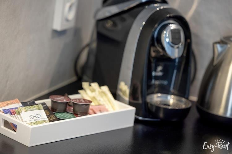 På 1. etage: (åbent køkken(kogeplade(Komfur med fire kogeplader, induktion), elkedel, kaffemaskine, ovn, opvaskemaskine , køle-fryseskab), stue / spisestue(dobbeltsovesofa, Fjernsyn(fladskærm, parabol, Internationale TV-kanaler), spisebord(4 personer)), soveværelse(dobbeltseng), badeværelse(bruser, håndvask, toilet, vaskemaskine)) Internetadgang, Parkering, balkon, varme(central), have(deles med andre gæster), havemøbler, solstole, elevator, barnestol, strygebræt, strygejern, baby crib(free)
