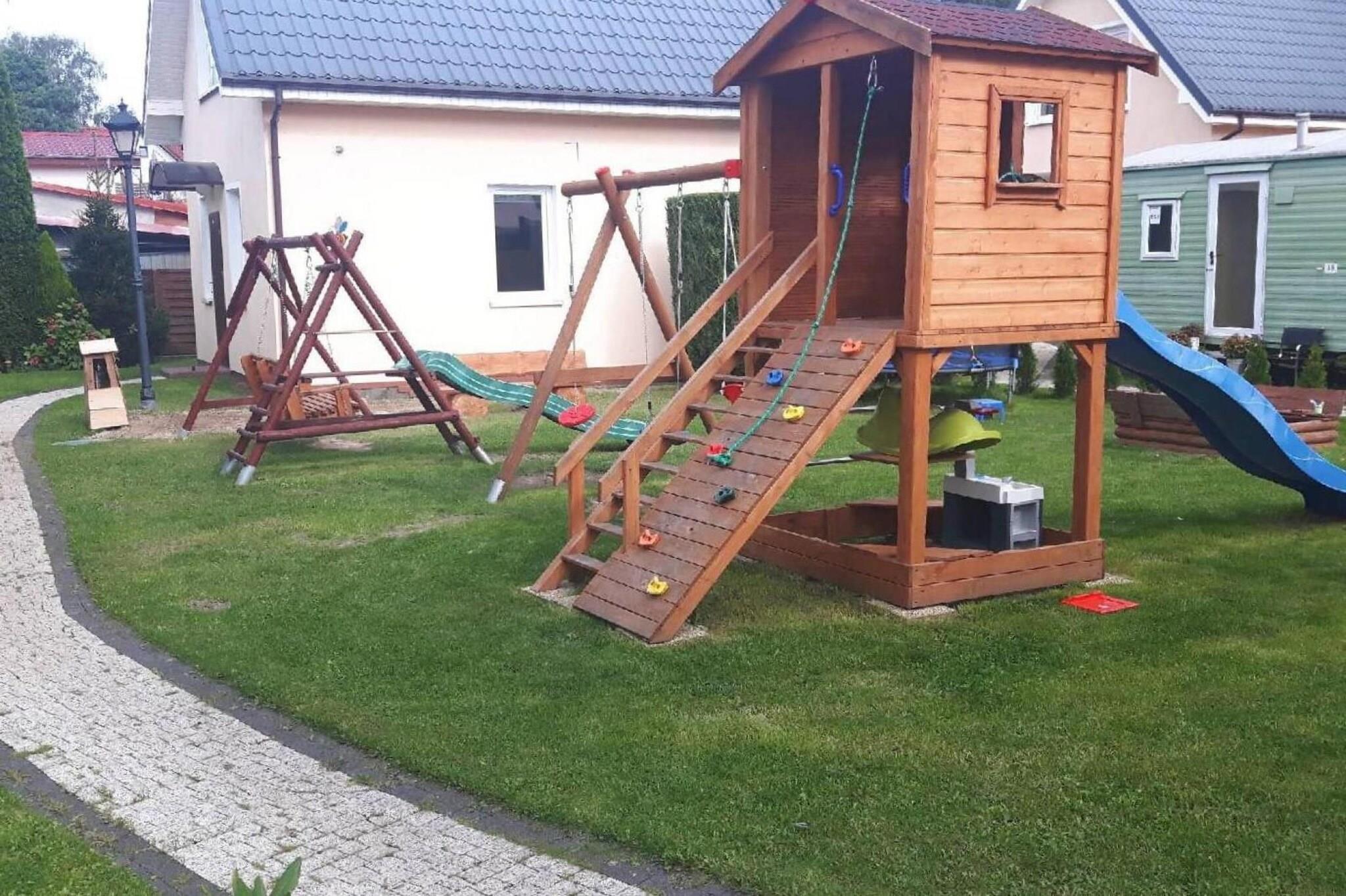 Et familieferiested beliggende i et velholdt og indhegnet område, i et roligt område, tæt på søbredden. Kun 400 m til stranden ligger feriestedets centrum kun få skridt væk. Feriecentret byder på 10 komfortable, murede, to-etagers feriehuse. Udover en overdækket terrasse har hver af dem også en lille, privat have. I stueetagen er der en rummelig stue (dobbelt klapsofa, tv og bord) forbundet med et veludstyret køkken og et badeværelse med bruser. På første sal er der 2 separate soveværelser (heraf 1 med balkon). Trådløst internet er tilgængeligt. Parkering er tilgængelig i det indhegnede område. De yngste vil helt sikkert nyde den attraktive legeplads. Prisen for opholdet inkluderer: sengelinned, håndklæder, el- og vandforbrug, internet, parkering, slutrengøring, høj stol og barneseng (forudgående reservation nødvendig). Niechorze er et feriested i det vestpommerske voivodskab. Det ligger ved Østersøens kyster og er centrum for den maleriske Rewal-kyst. Som det sømmer sig for en kystby, tilbyder Niechorze turister en ren strand og et bevogtet svømmeområde. Her er også en fiskebase, perfekt som baggrund for souvenirbilleder. Når du er tæt på stranden, skal du se symbolet på byen. Det er et højt fyrtårn, åbent for besøgende. Byens (og faktisk hele regionens) stolthed er den renoverede smalsporede jernbane, som giver dig mulighed for at tage på en charmerende tur til nærliggende feriesteder. På feriestedet er det værd at besøge Havfiskermuseet og Oceanarium. En utvivlsom fordel er den umiddelbare nærhed af søen Liwia Luza, med udsigts- og fiskeplatforme. Der er en vandre- og cykelsti rundt om reservoiret. En interessant cykelrute fører også til feriestedet Mrzezyno.