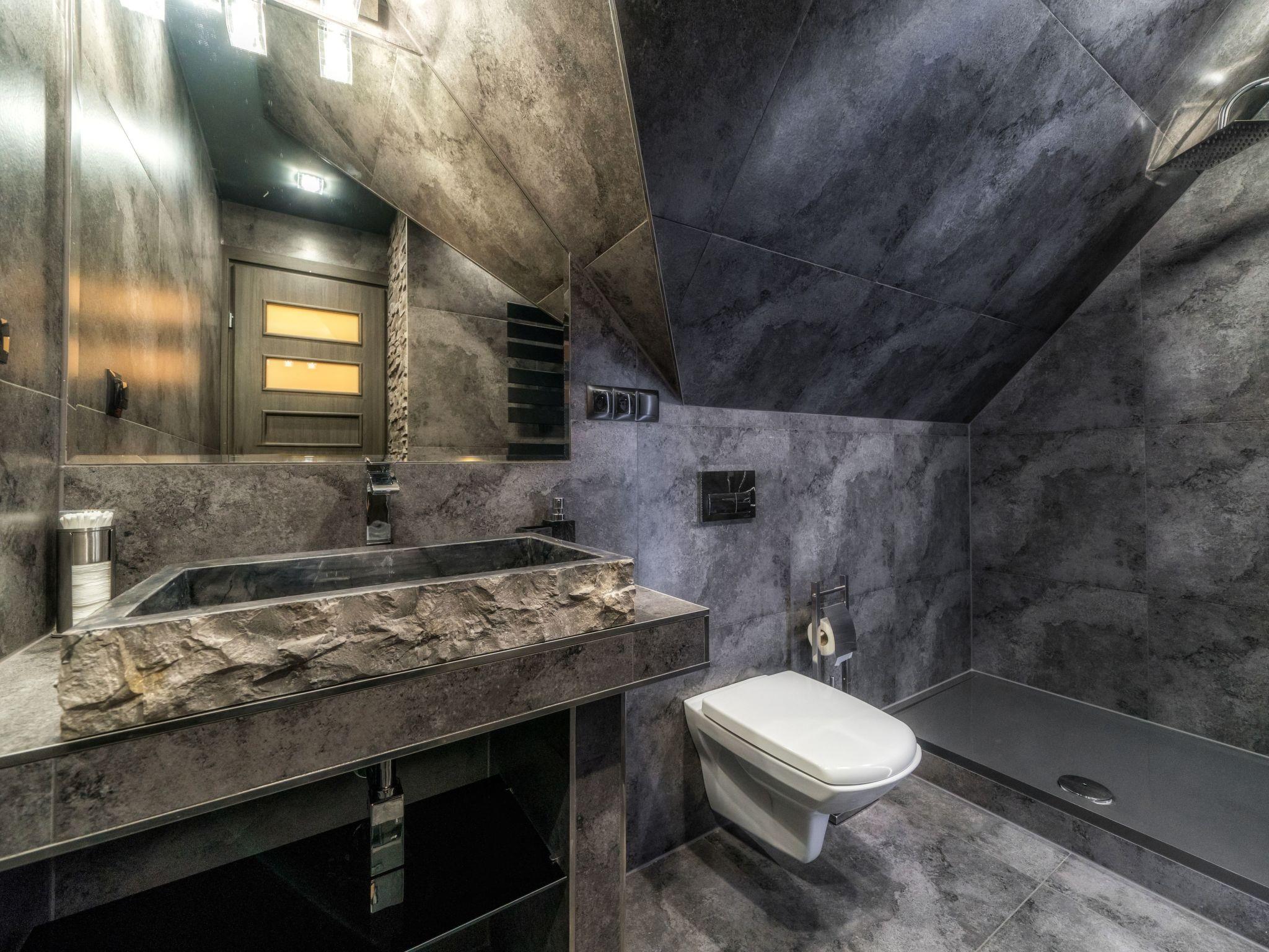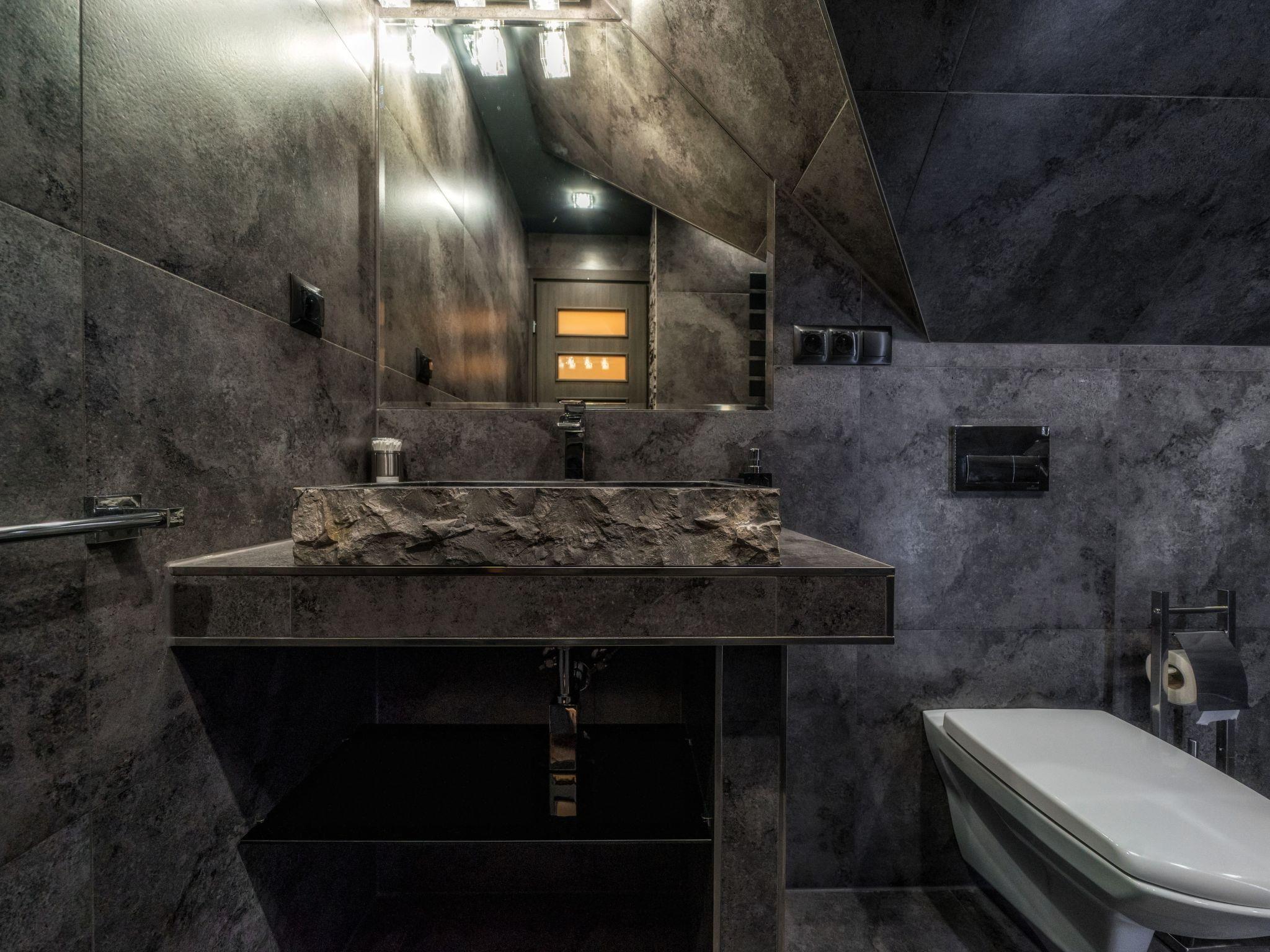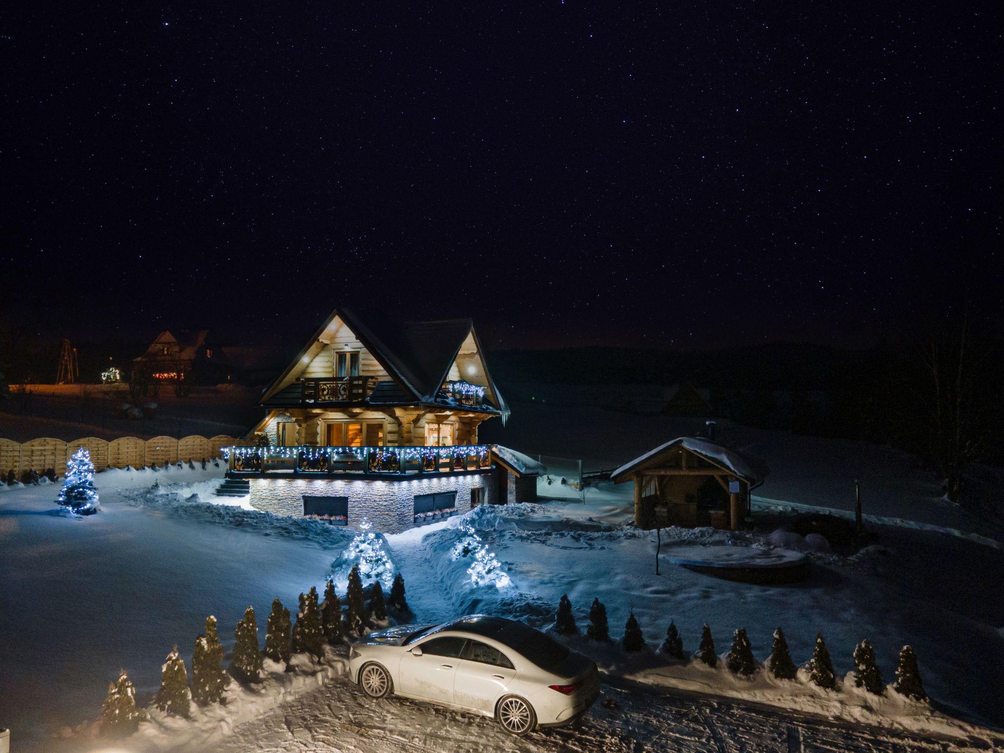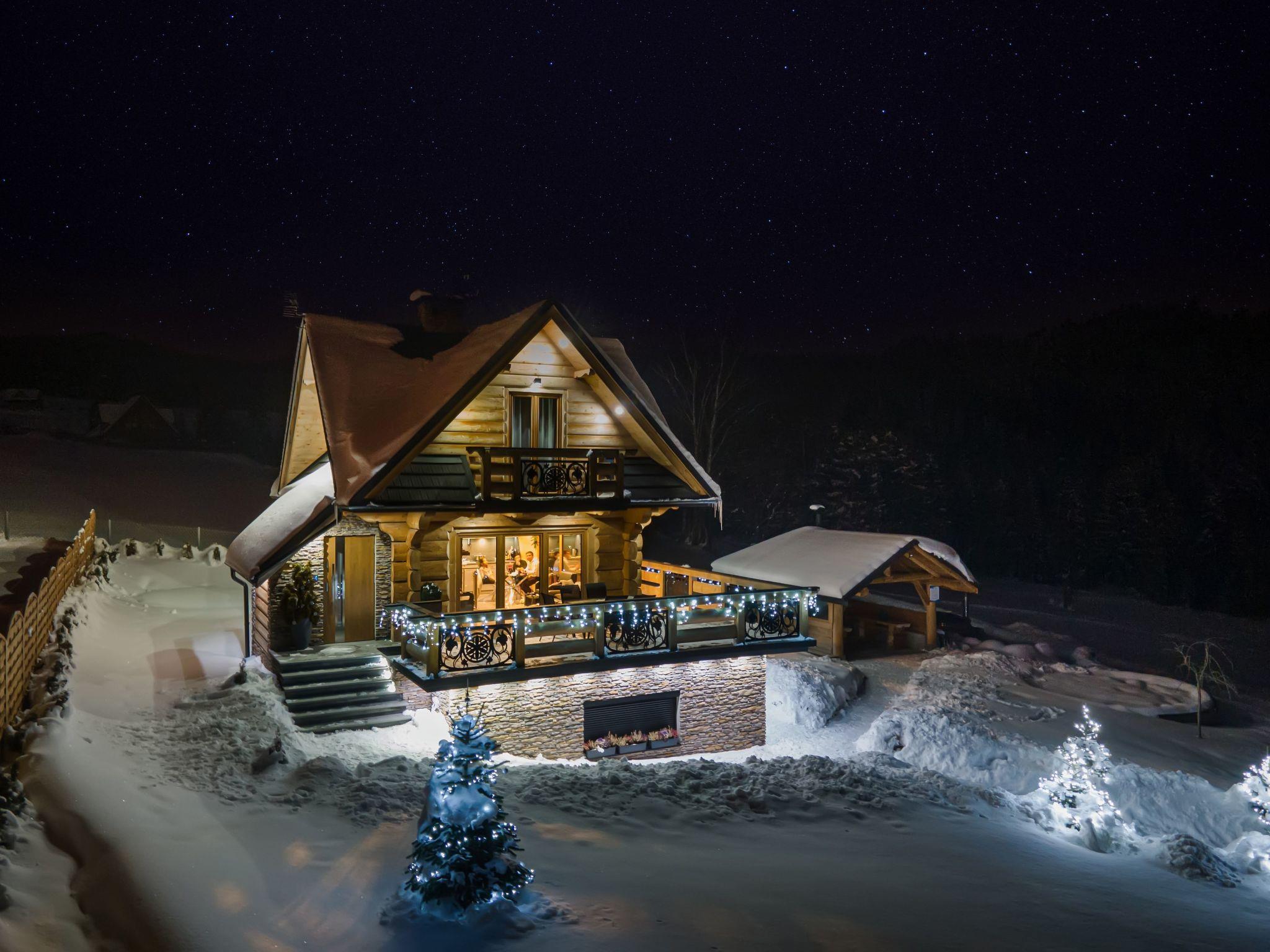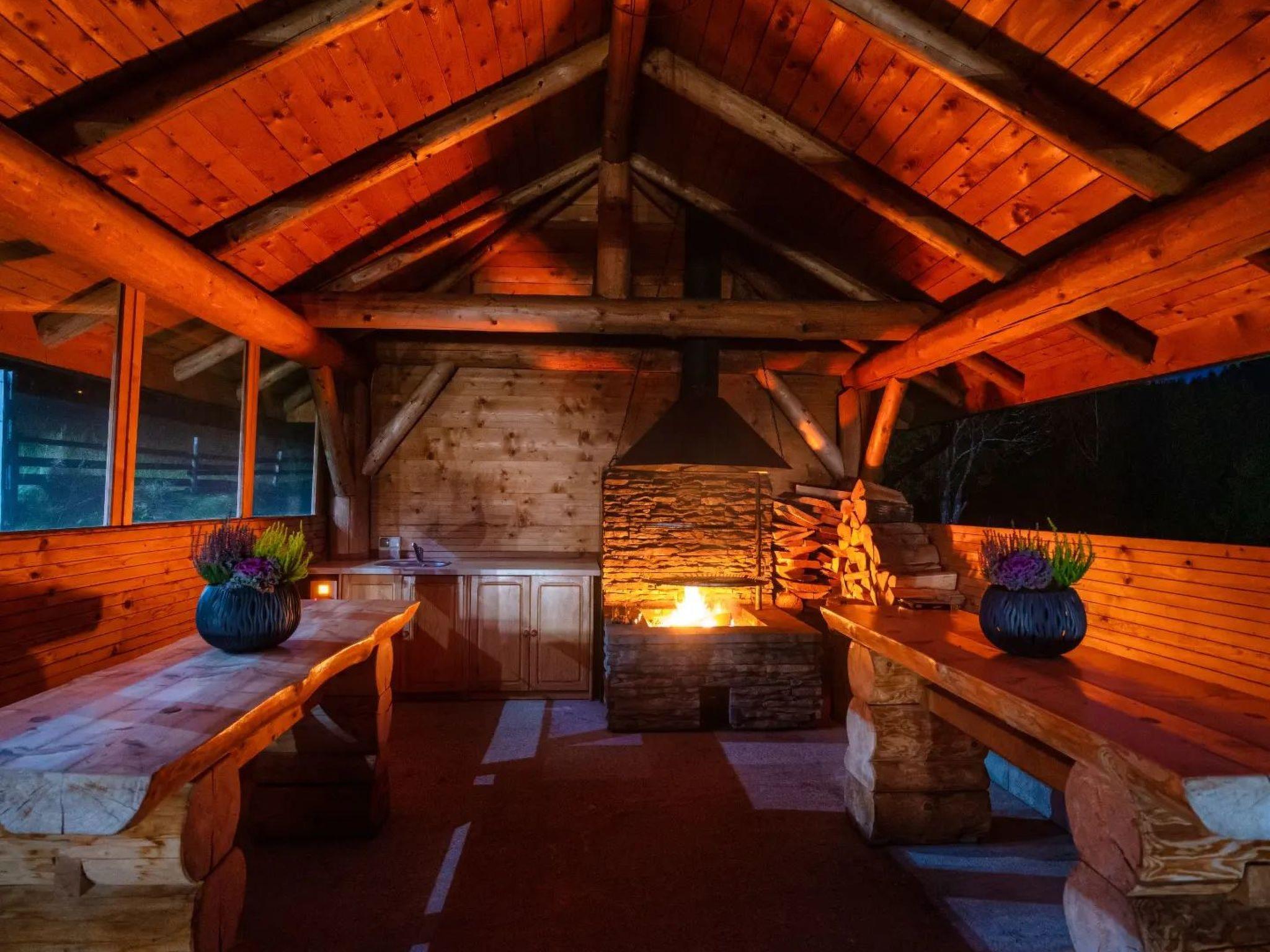 The cottage is designed in a traditional style, using natural materials of wood and stone. It has large windows that allow you to enjoy the view of the mountains. The interior of the cottage is decorated in an elegant, modern style with attention to every detail.